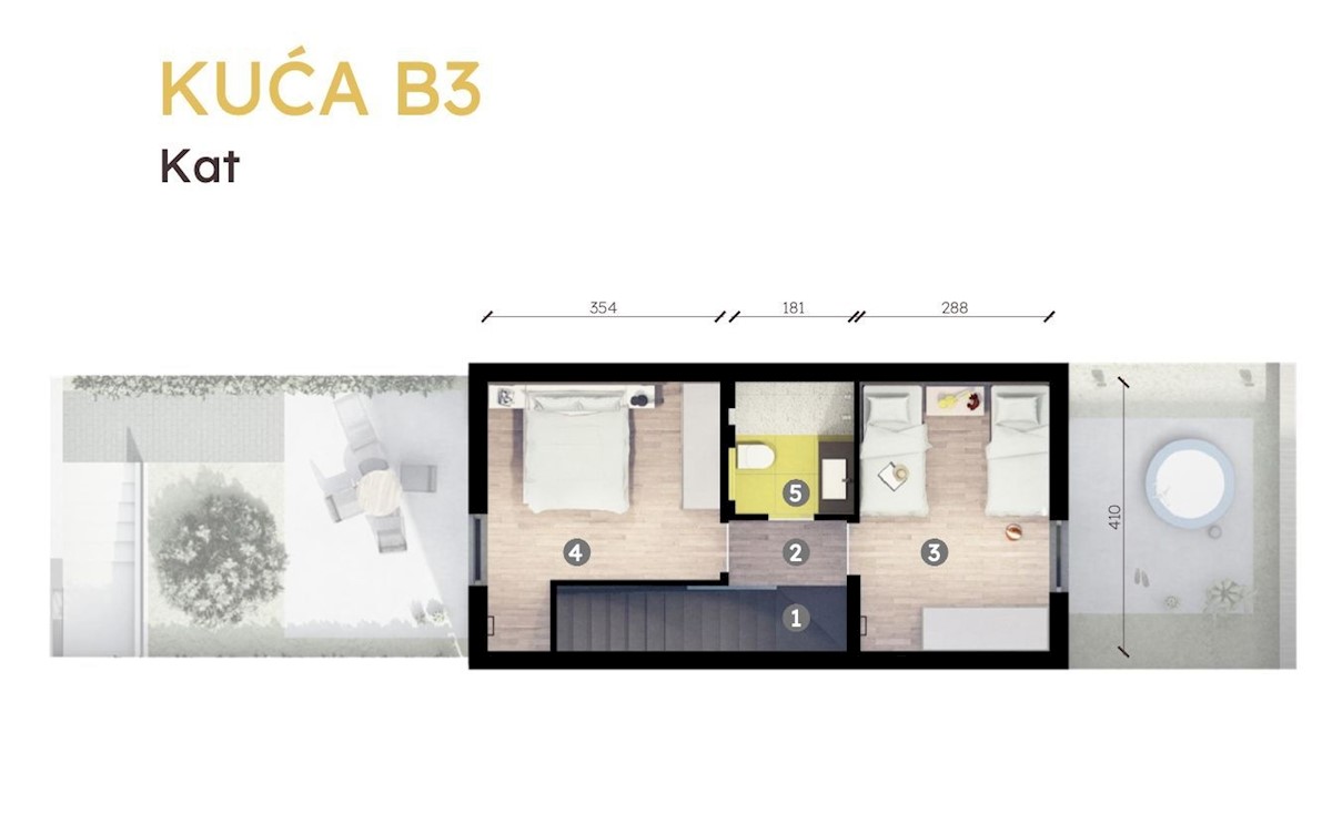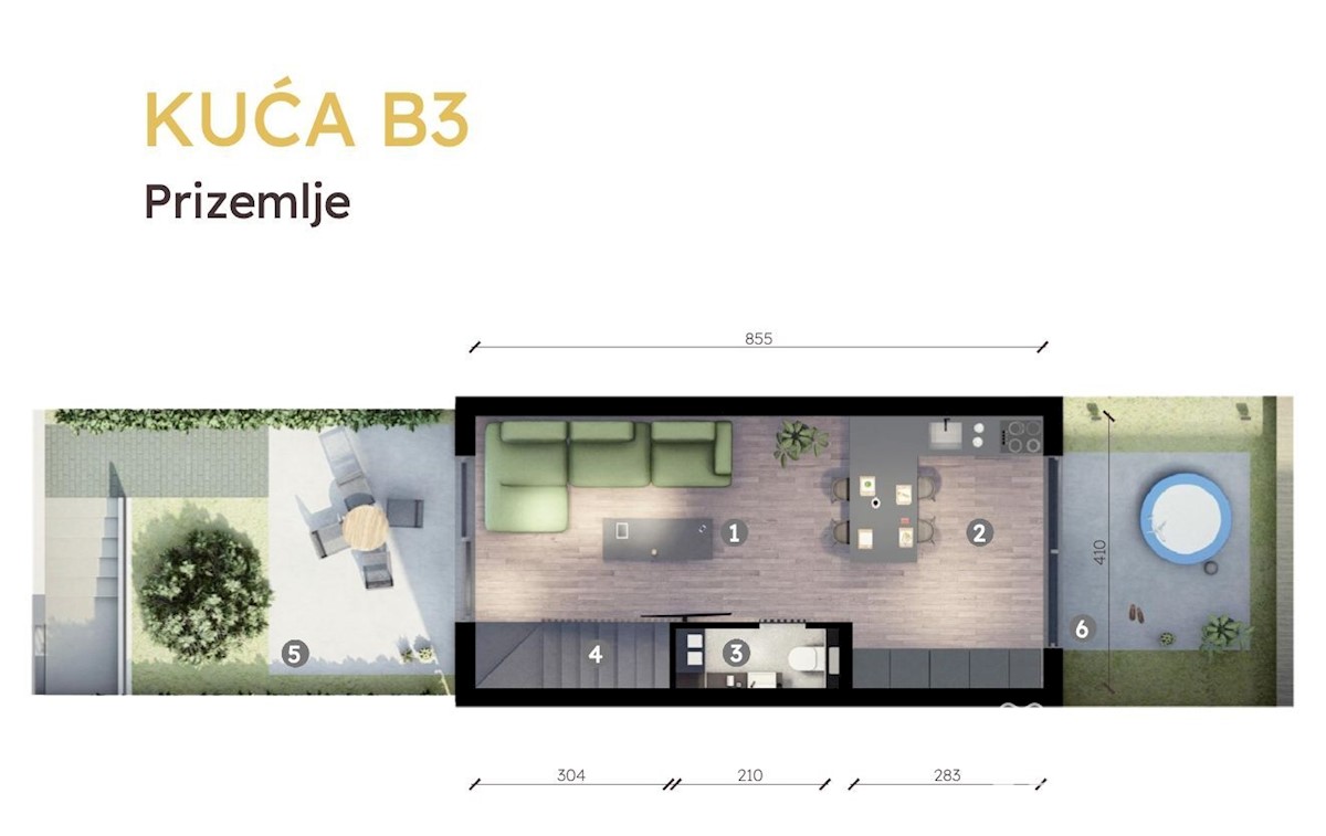 Atraktivno naselje Poreč - kuća u nizu s dvorištem 3-S (77,54 m2)
