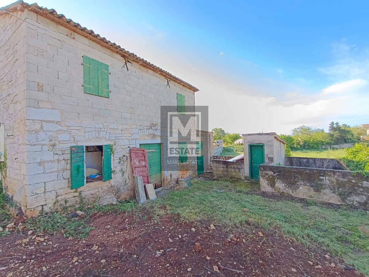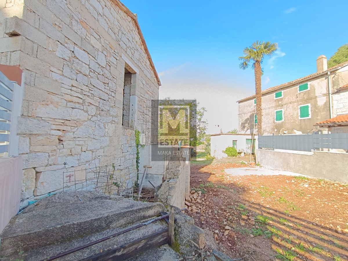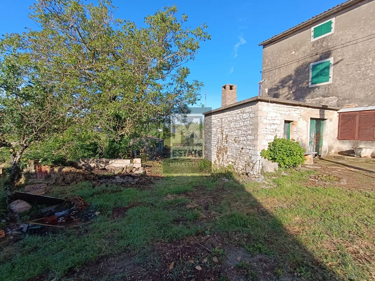 Poreč, okolica, dvije kuće sa okućnicom za adaptaciju Prodaje se prostrana dvojna kuća, prostire se na tri etaže, ukupne površine cca 150 m2, s gospodarskom zgradom tlocrtne površine 50 m2. Opisujući temeljne prostorne uvjete, ova nekretnina nudi mogućno