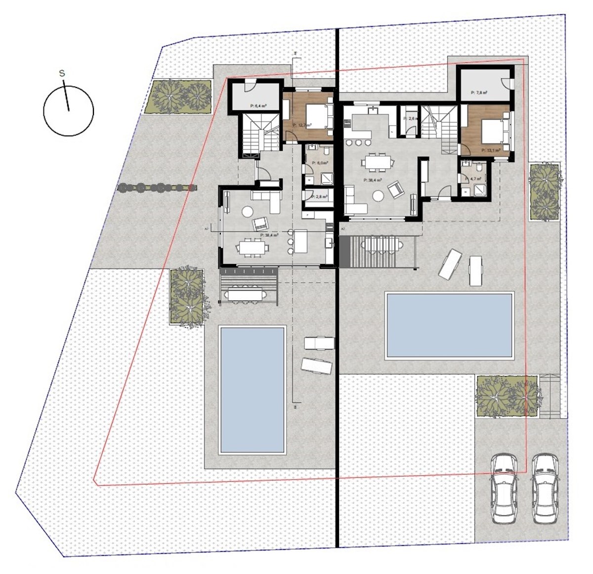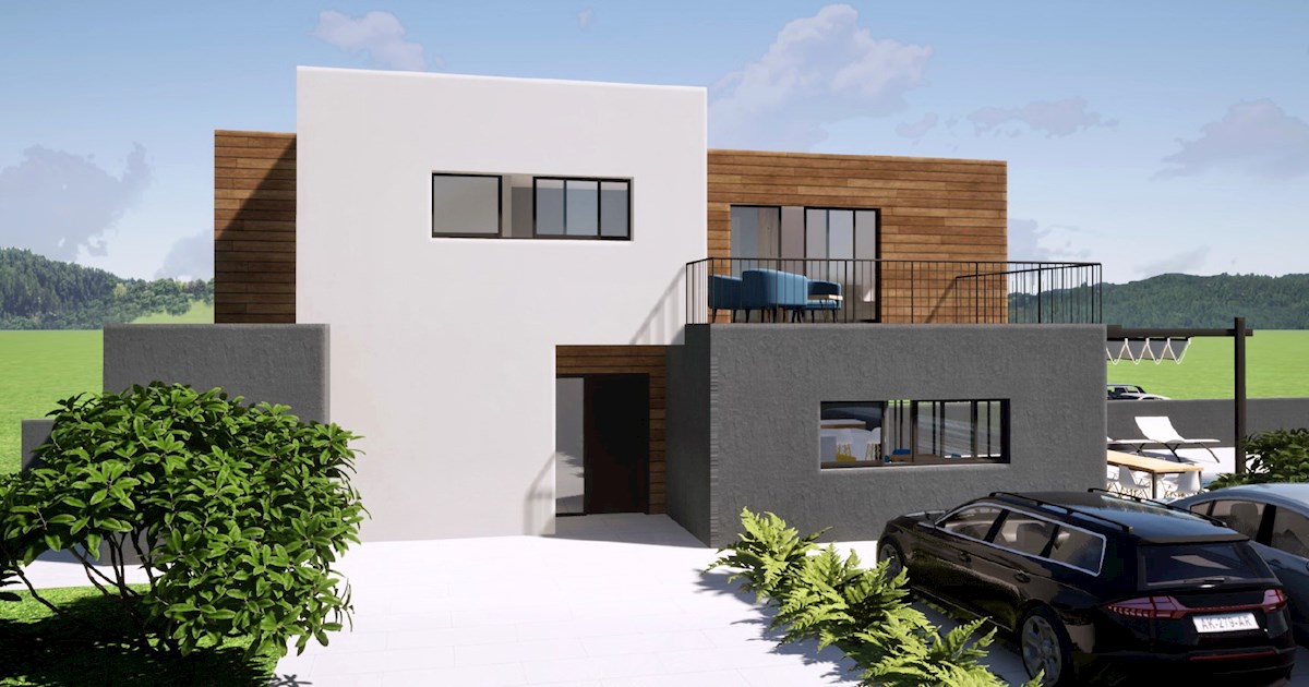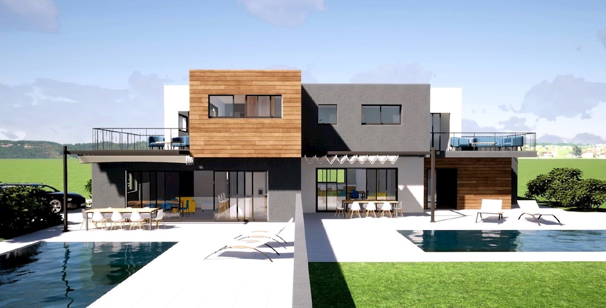 Nova moderna dvojna kuća površine 131 m2 s bazenom u okolici Poreča
