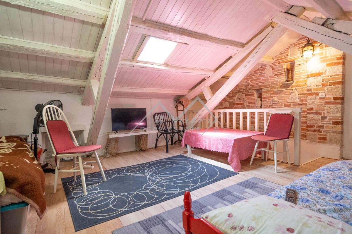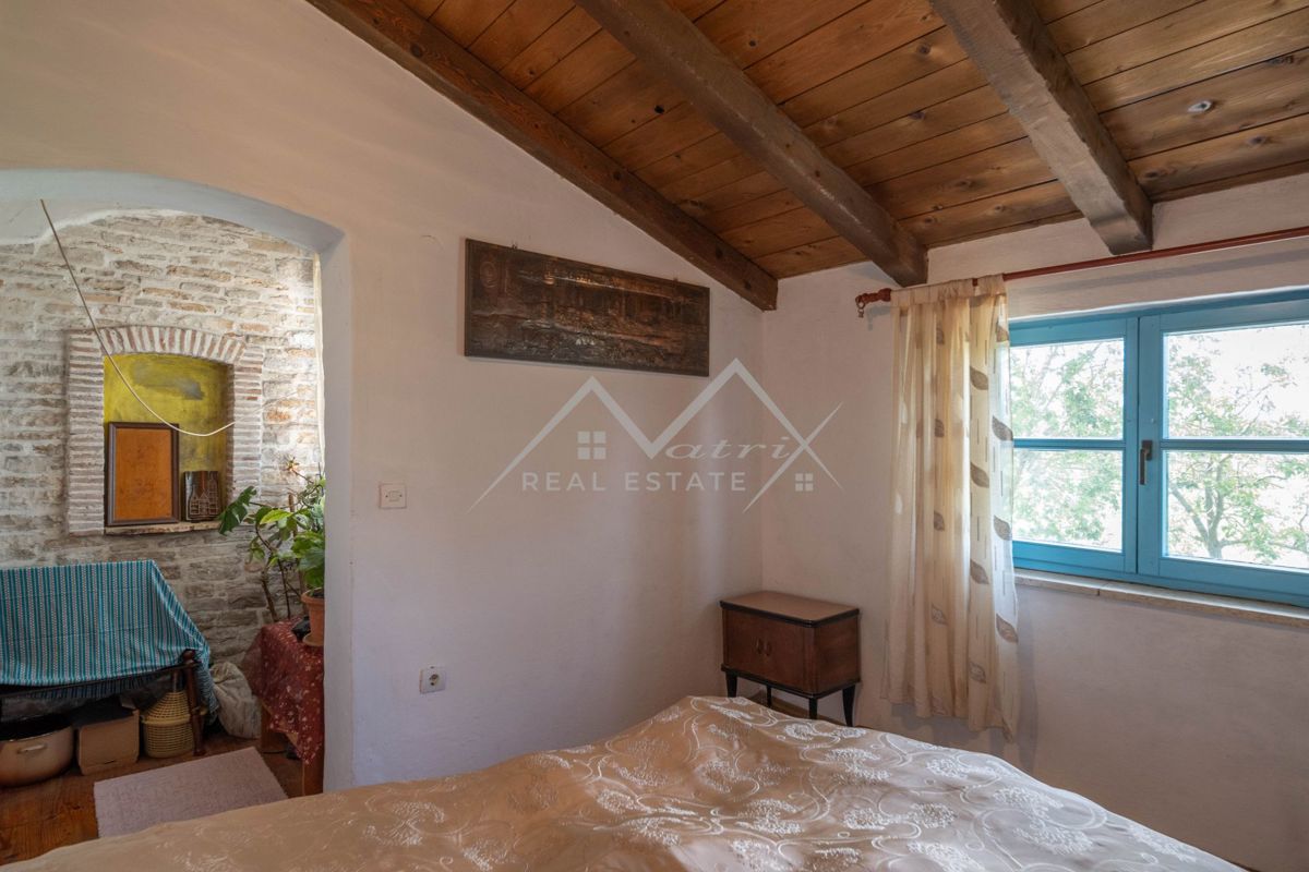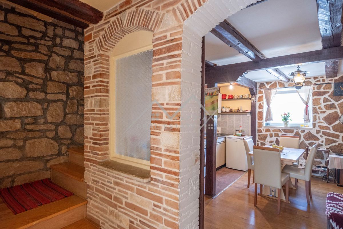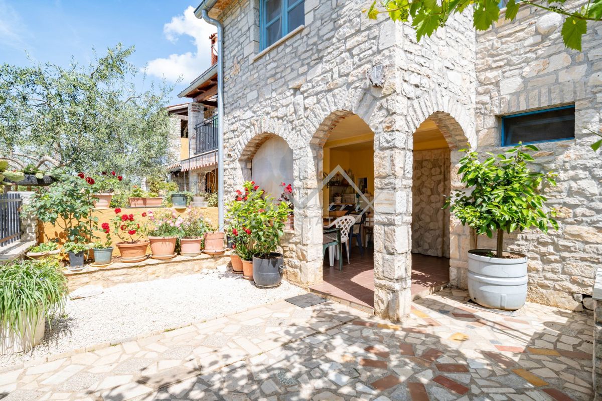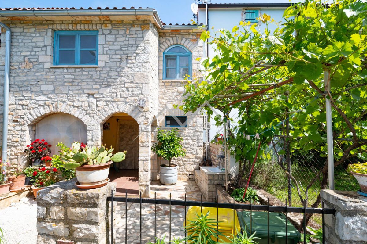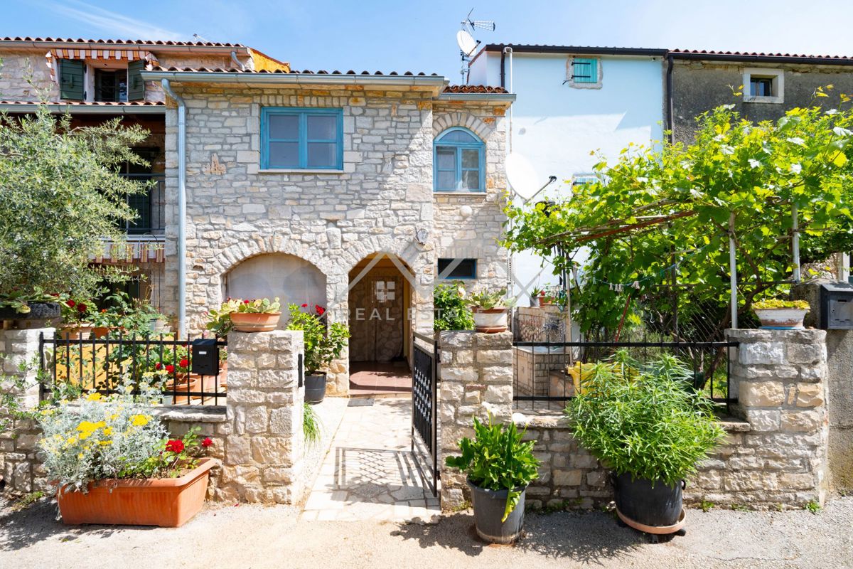 Na prodaju je šarmantna autohtona istarska kuća u nizu, izrađena od tradicionalnog kamena, smještena na mirnom i idiličnom mjestu. Pristup kući je kroz maleno, intimno dvorište koje pruža toplu dobrodošlicu. Sama kuća sastoji se od prizemlja i dva kata.