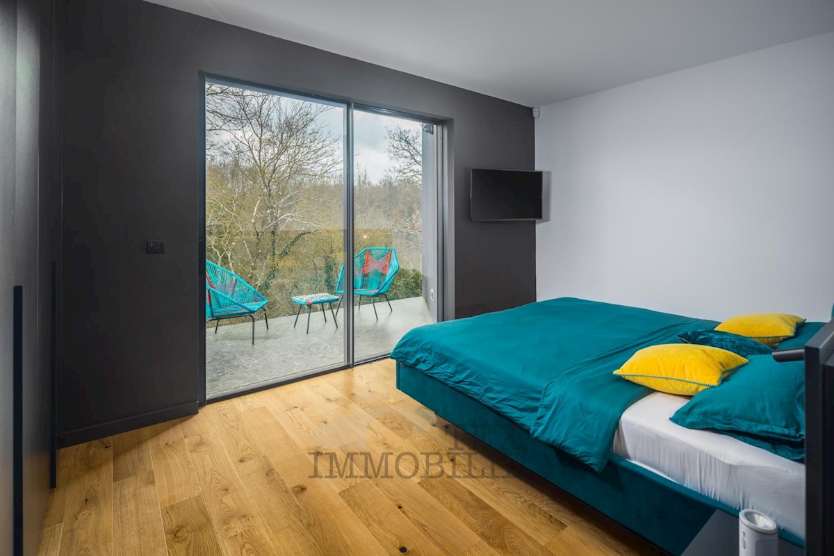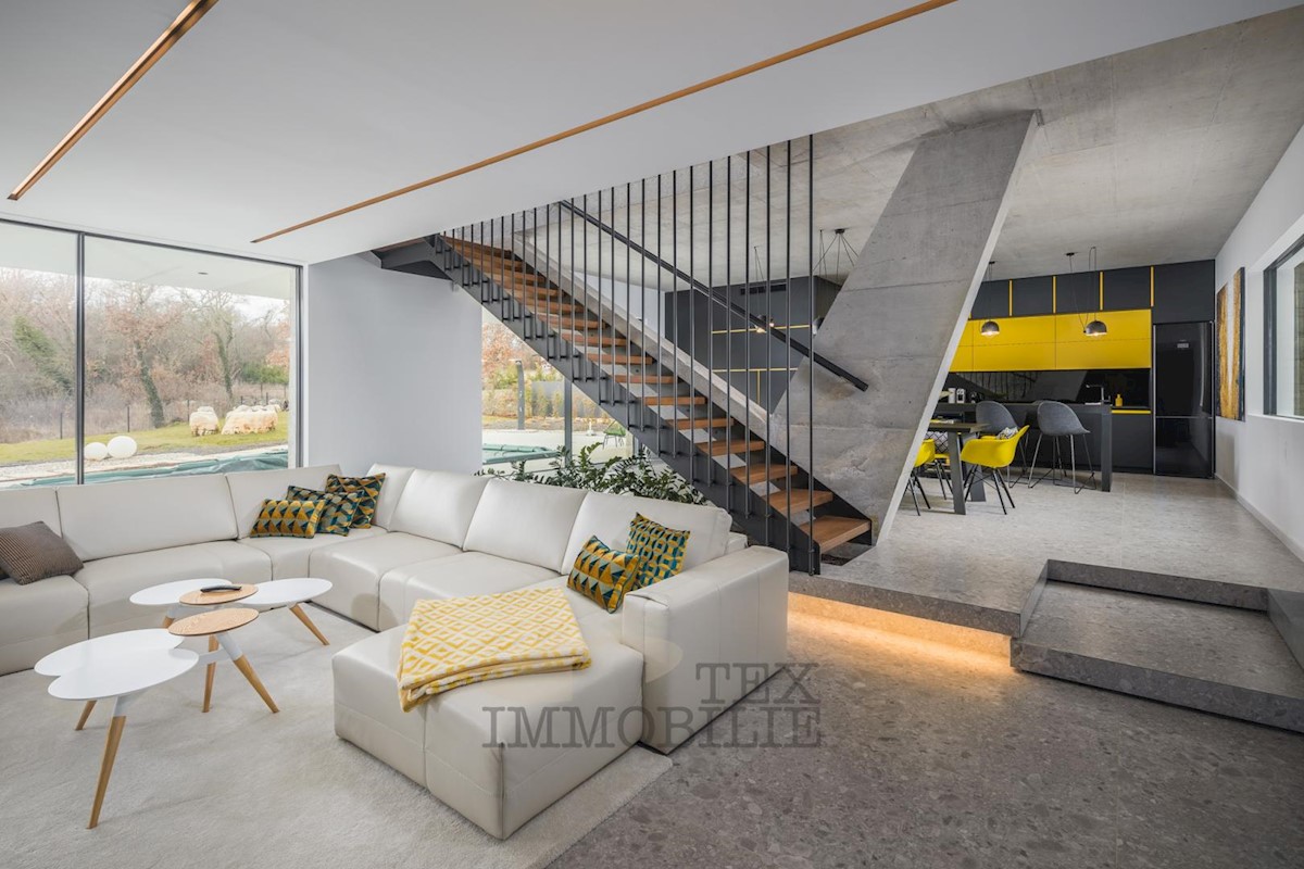 Nadomak slikovitog Poreča, na rubu mirnog sela, prodaje se jedistvena vila koja plijeni pažnju svojim modernim dizajnom i suptilnom elegancijom. Svega desetak minuta vožnje udaljena od obale, ova raskošna rezidencija pruža savršeno spoj luksuza i prirode.