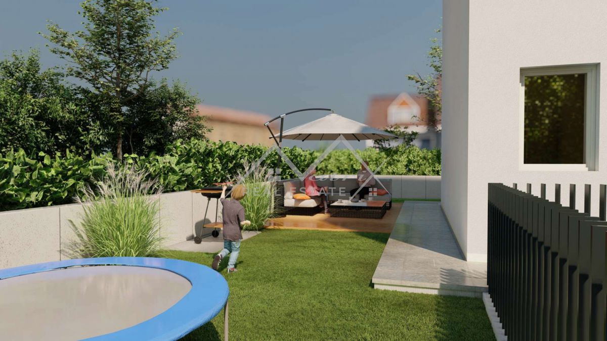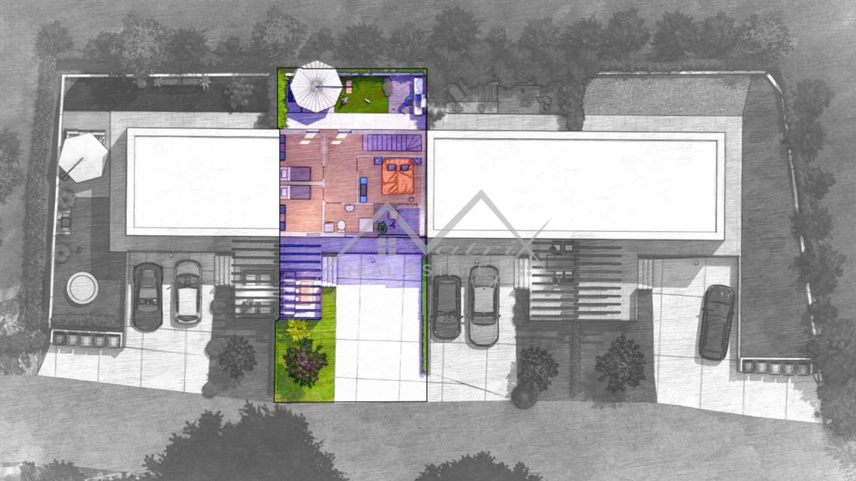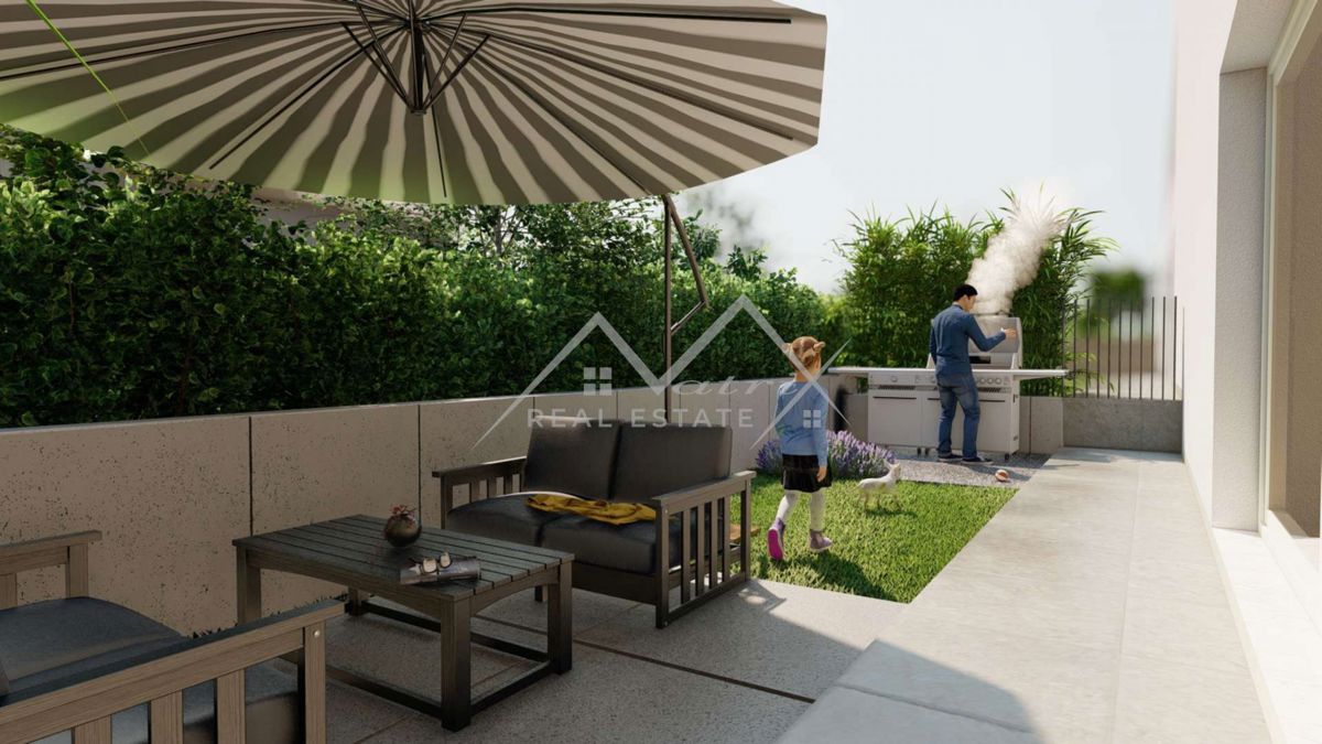 Poreč (Kukci/Kufci) - Luksuzna novogradnja na mirnoj lokaciji u predgrađu Poreča! EKSKLUZIVNO, SAMO U NAŠOJ PONUDI! Prodaje se ova prekrasna luksuzna kuća u nizu s velikom okućnicom, ukupne stambene površine 101,24 m2 raspoređenih na dvije etaže. Kuća s