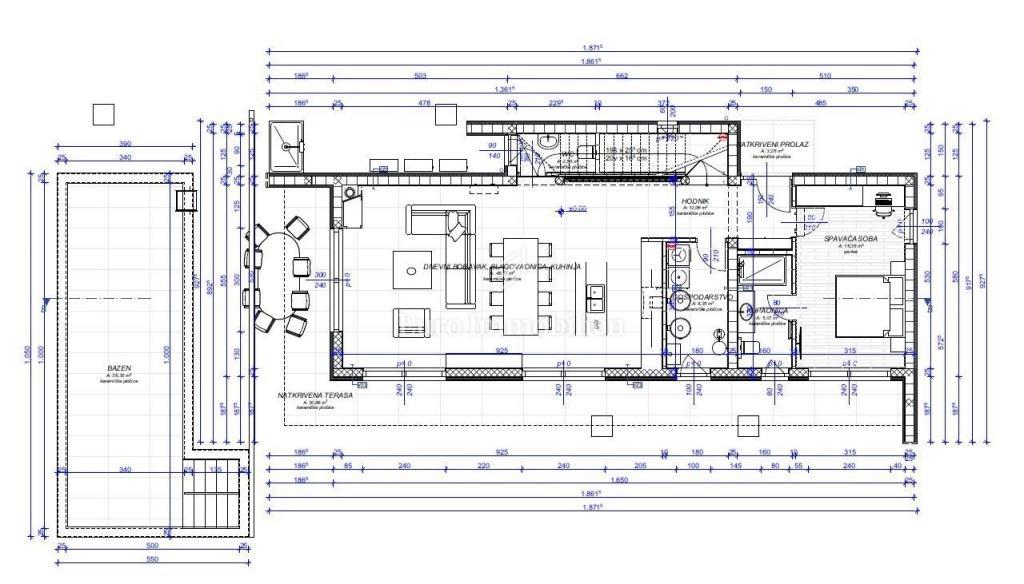 Prodaje se atraktivna villa modernog dizajna s bazenom i većom okućnicom, na mirnoj lokaciji otprilike 10 minuta vožnje do mora i centra grada Poreča. Gradi se na zemljištu od 1.080 m2. Unutar ograđenog dvorišta villa će imati bazen veličine 36,30 m2 i lj