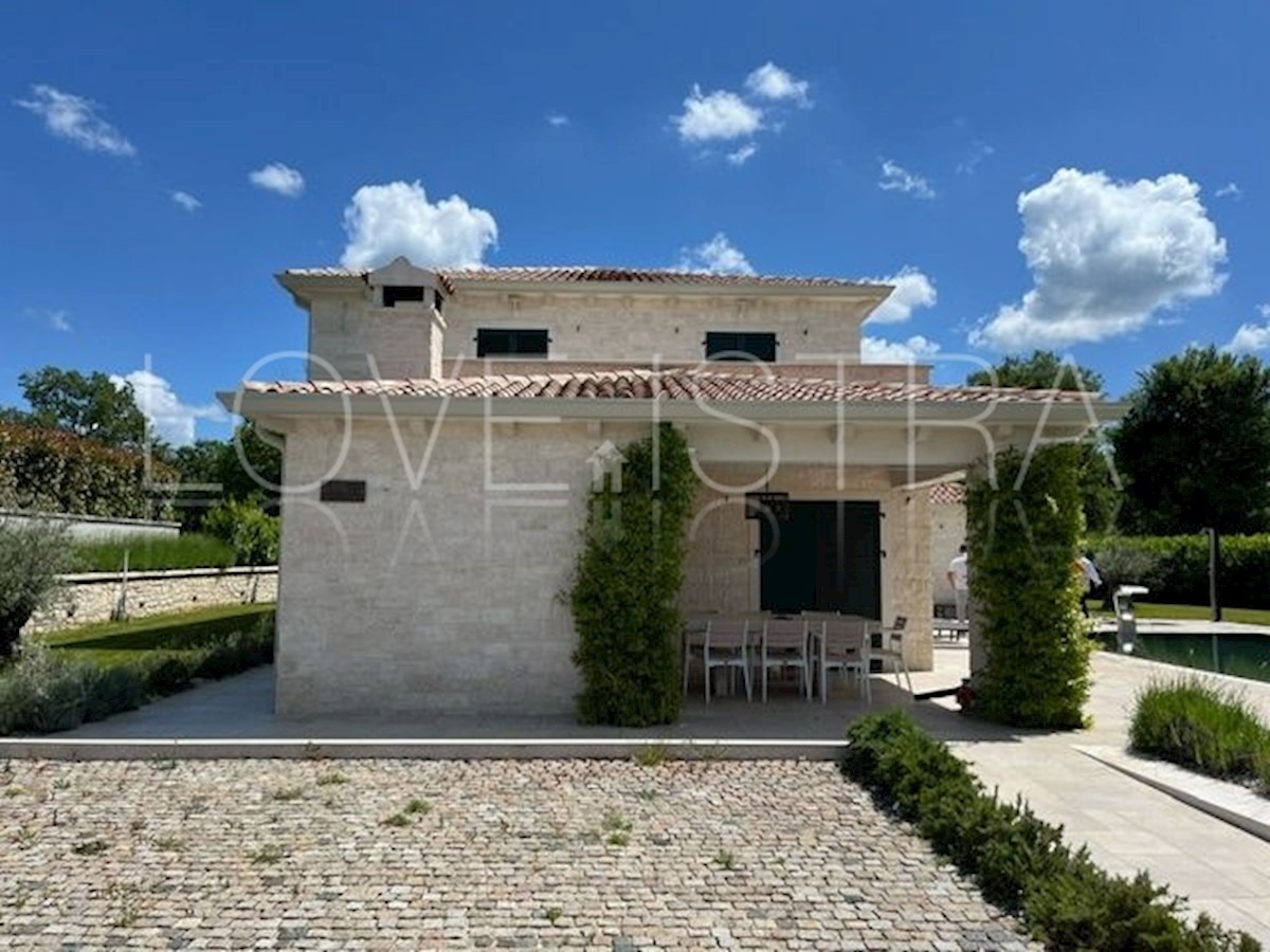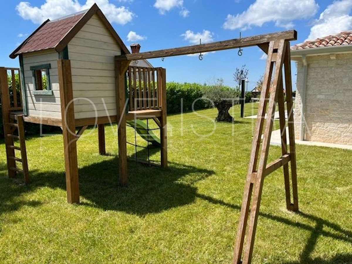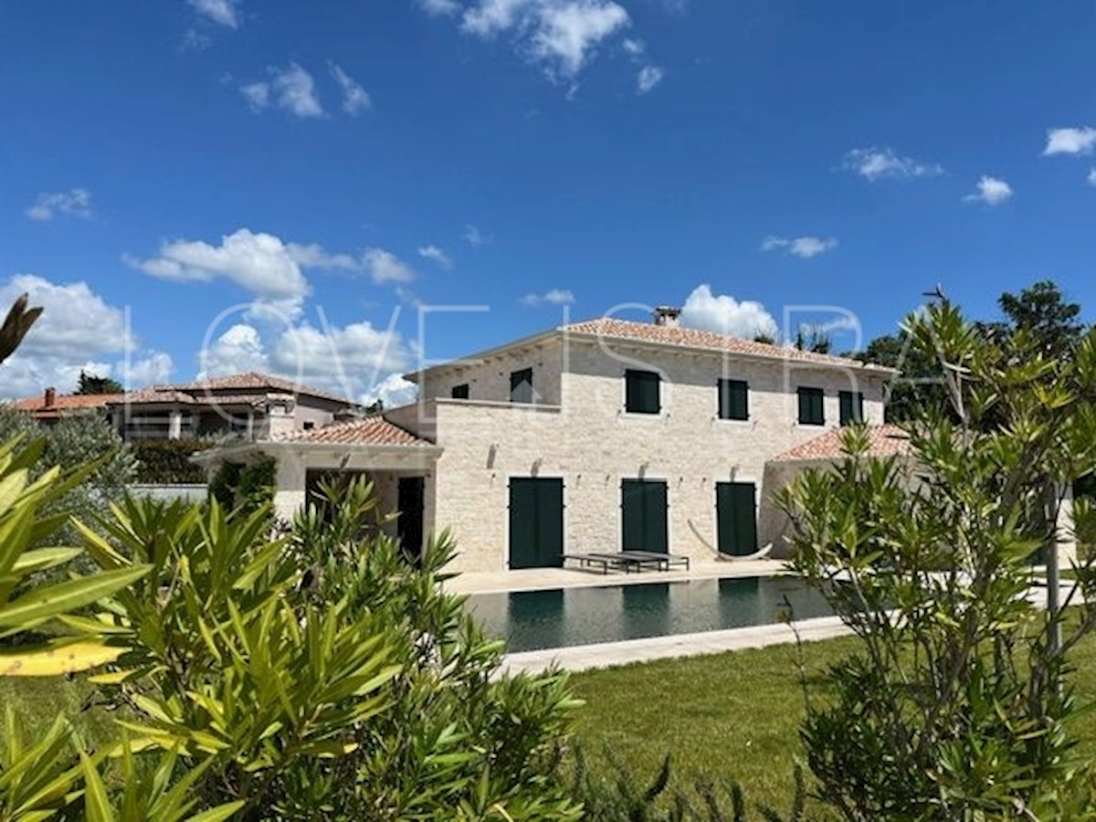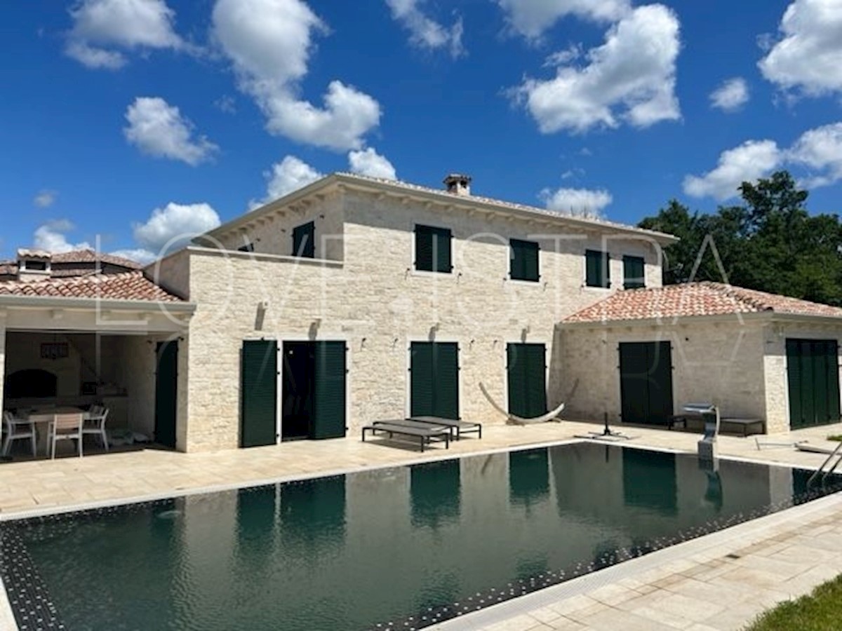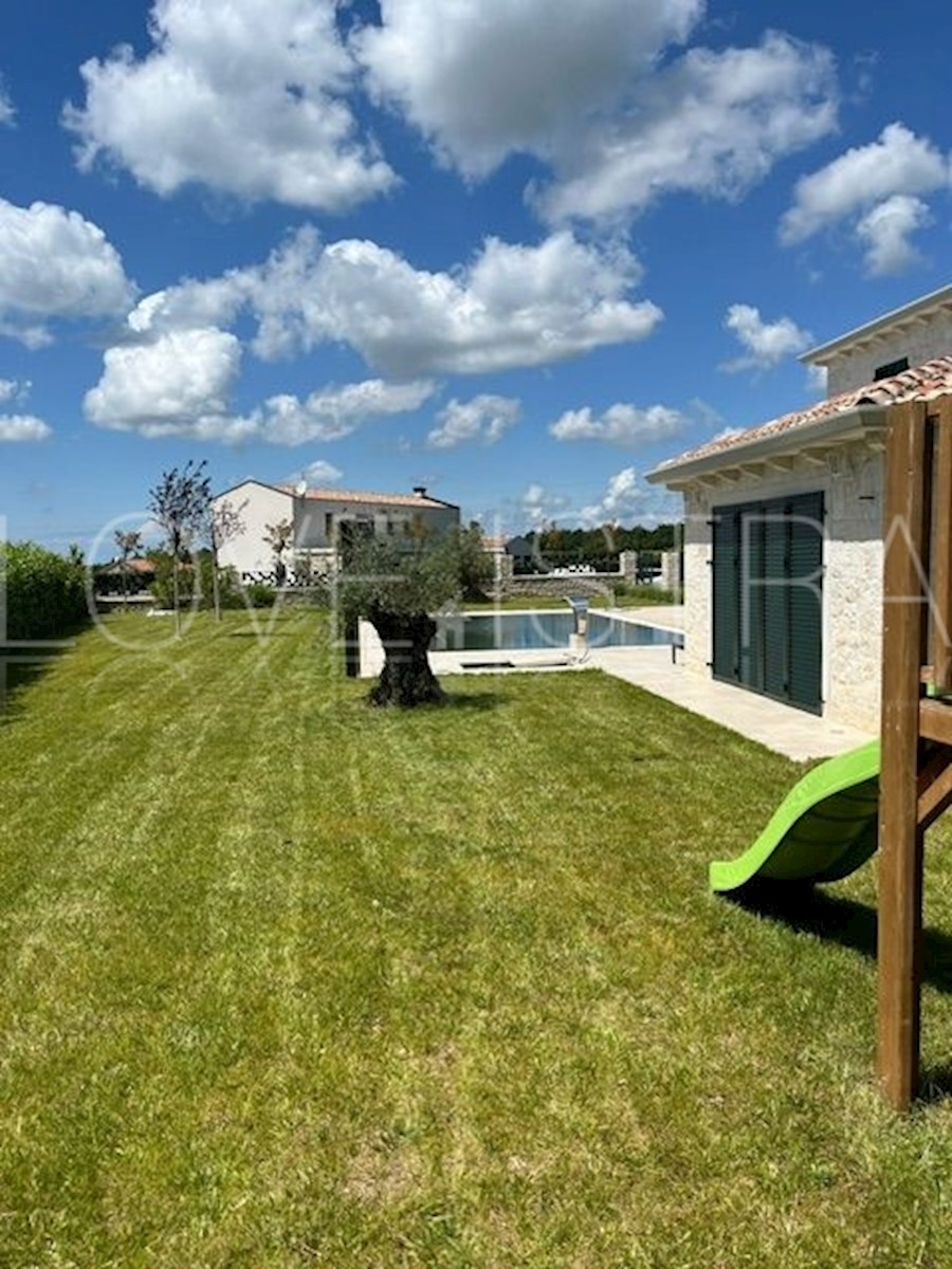 Ova luksuzna kamena vila smještena je 20 km od Poreča, u malom istarskom selu. Vila se proteže na dvije etaže, a pažljivo osmišljeni raspored nudi prostrani životni prostor od 280 m2. Krasi je velika okućnica od 1200m2, na kojoj se nalazi dječje igralište