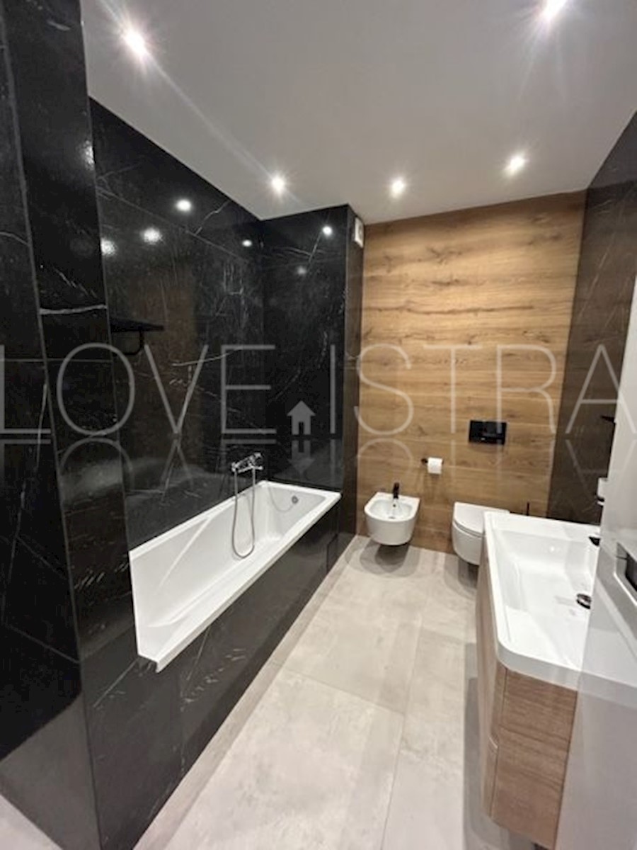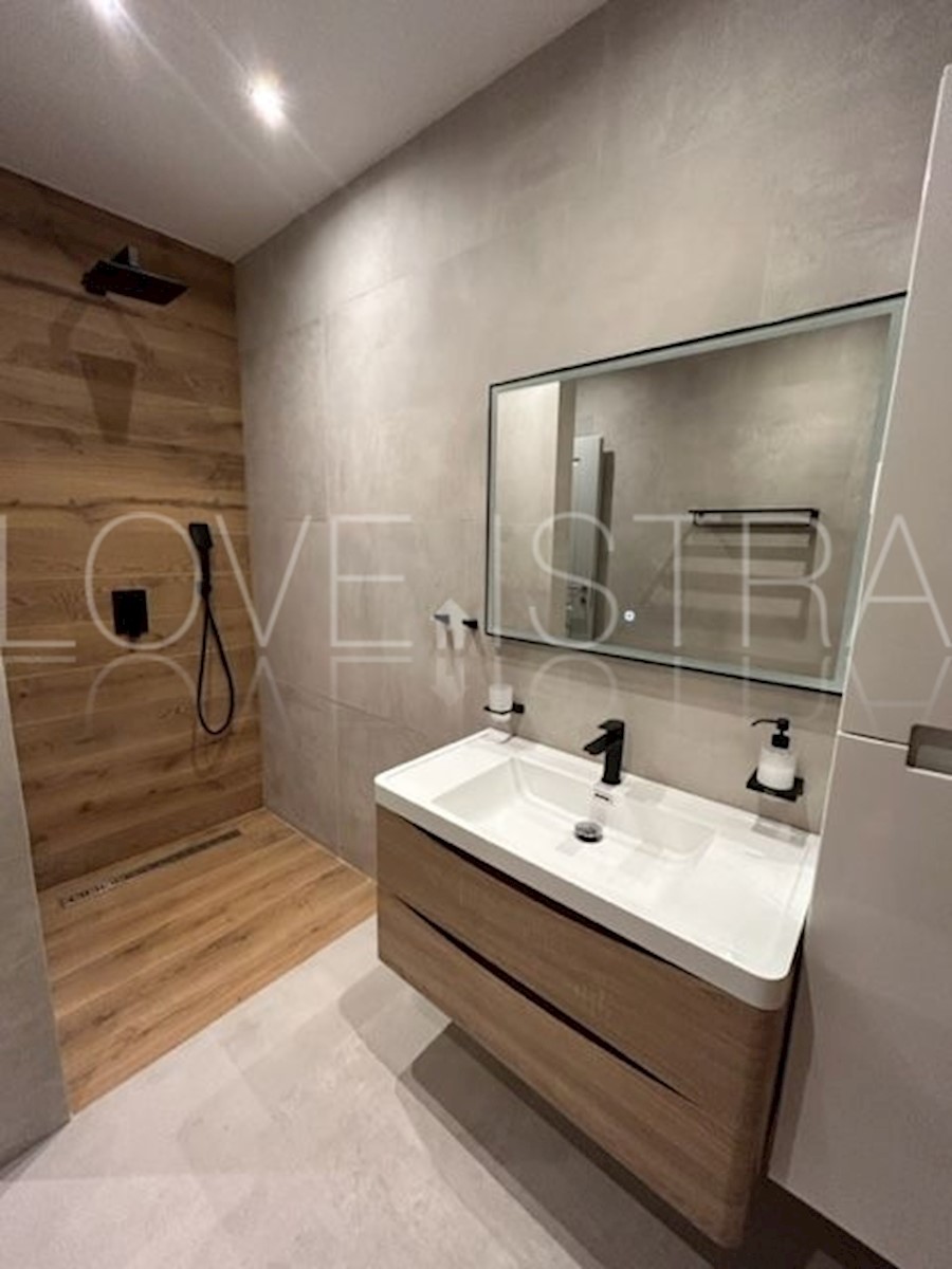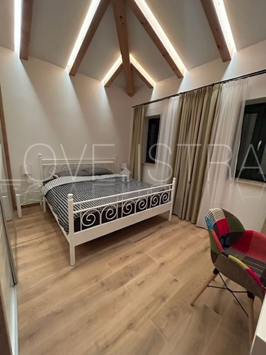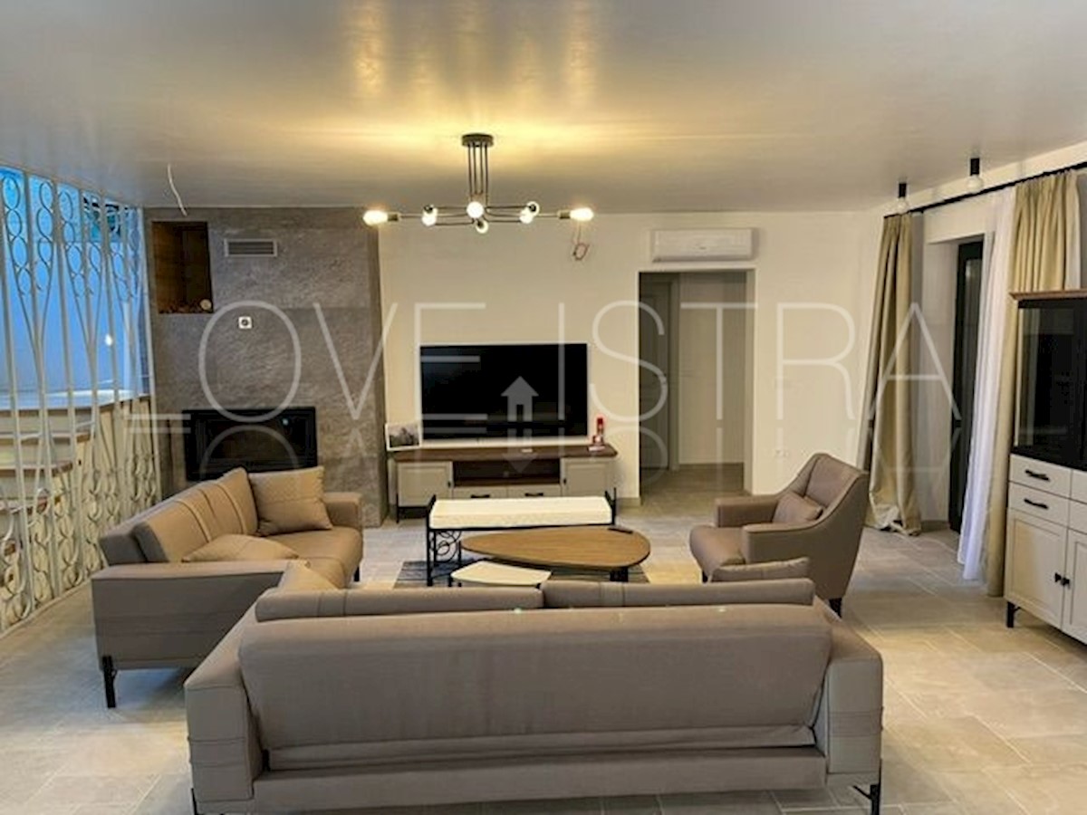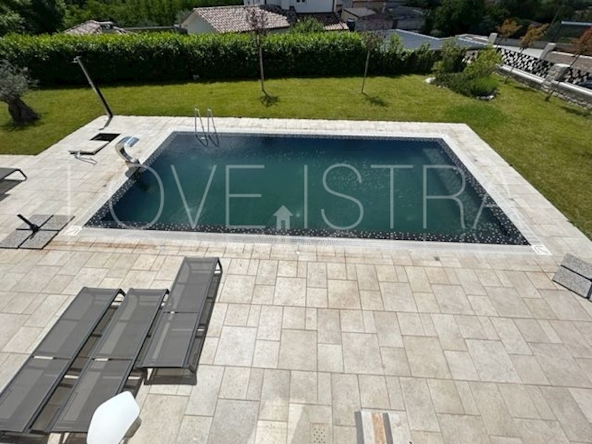 Ova luksuzna kamena vila smještena je 20 km od Poreča, u malom istarskom selu. Vila se proteže na dvije etaže, a pažljivo osmišljeni raspored nudi prostrani životni prostor od 280 m2. Krasi je velika okućnica od 1200m2, na kojoj se nalazi dječje igralište