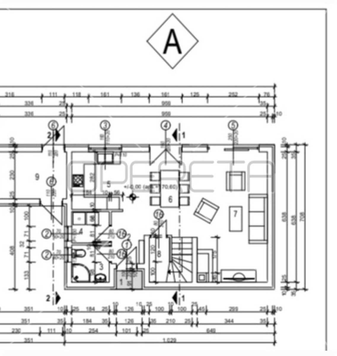 ISTRA, POREČ (OKOLICA) - Kuća krajnja u nizu s pogledom na moreU malom istarskom mjestu nedaleko od Poreča smjestila se ova obiteljska kuća krajnja u nizu s vlastitim dvorištem i bazenomKuća A, stambene površine 170 m2 i 500 m2 okućnice.Prizemlje se sasto