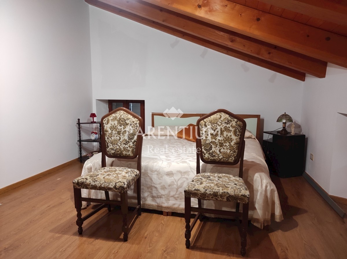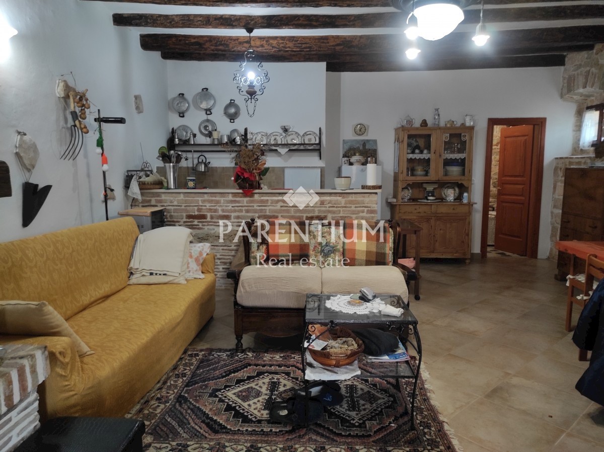 Poreč, okolica, prodaje se kamena renovirana kuća u nizu. Kuća je površine 192m2, i s okućnicom od cca 1000m2. Sastoji se od prizemlja gdje se nalazi konoba s kaminom, kuhinja i jedna spavaća soba s kupatilom. Na prvom katu nalaze se dvije spavaće sobe i