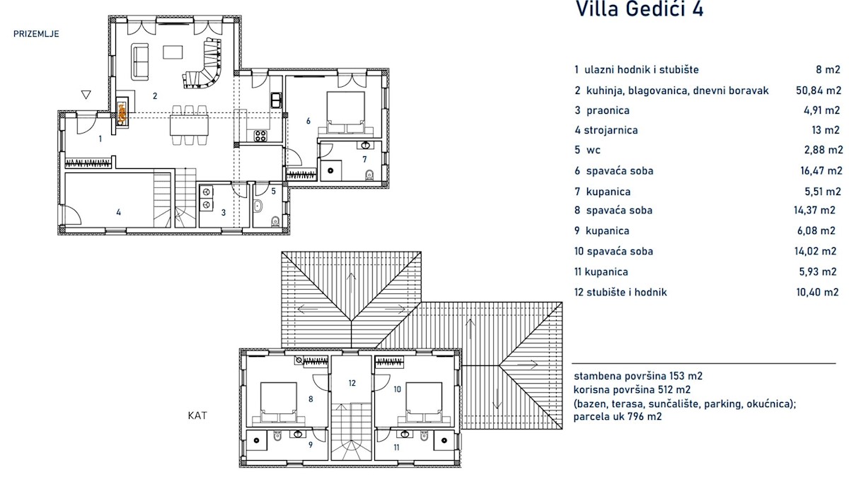 Agencija Sky nekretnine predstavlja luksuznu vilu na izvrsnoj lokaciji, u Gedićima blizu Poreča. Vila 4 se nalazi na izvrsnoj lokaciji te će biti izgrađena tijekom 2025 godine. Njezina površina iznosi 152,48 m2, a sastoji se od ulaznog hodnika, stubišta