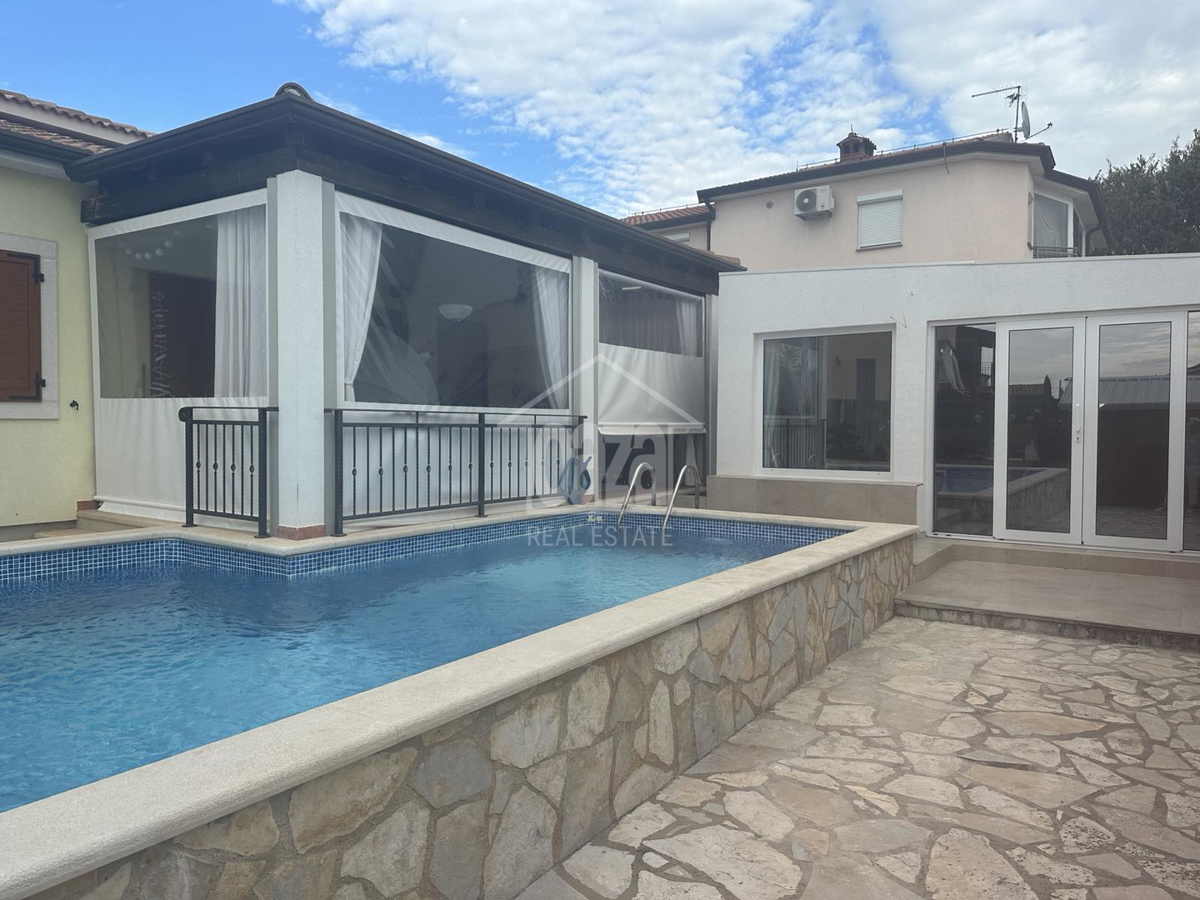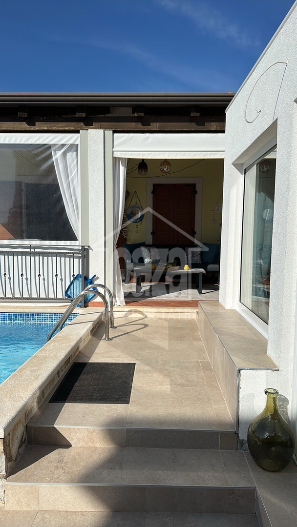 Uređena samostojeća kuća prizemnica od 137 m2 na održavanoj okućnici veličine 401 m2 gdje je smješten bazen veličine 24 m2 (nova toplotna pumpa). Konoba 52 m2 (trenutno u funkciji kuhinje sa kupaonom i praonicom rublja) Tri spavaće sobe, svaka soba ima in