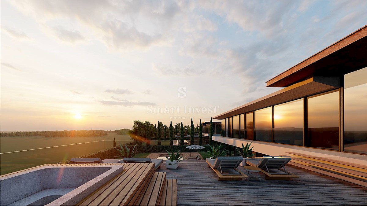POREČ okolica, EKSKLUZIVNA VILA S BAZENOM, WELLNESOM I POGLEDOM NA MORE Ova raskošna elegantna vila smještena je u idiličnom malom naselju na zapadnom dijelu Istre samo deset minuta vožnje udaljenom od Novigrada i Poreča te pruža vam sve to je potrebno z
