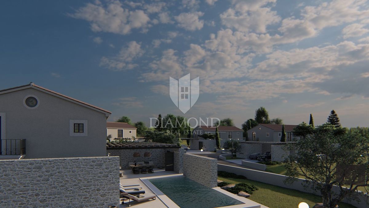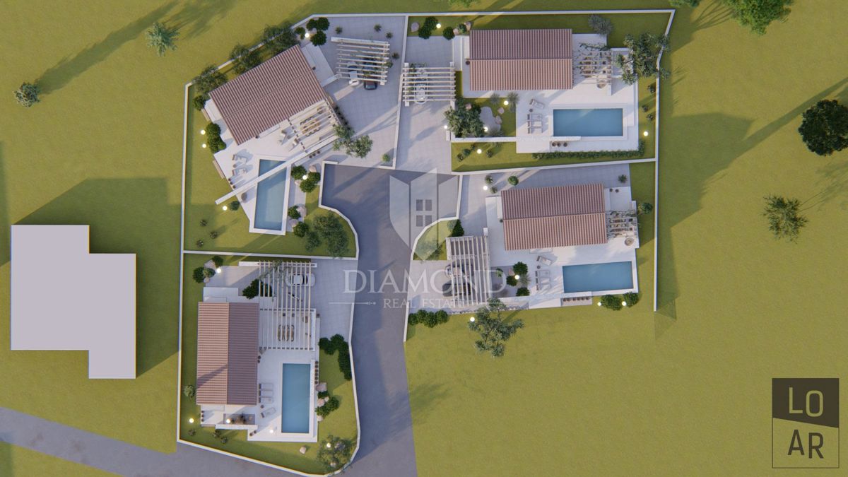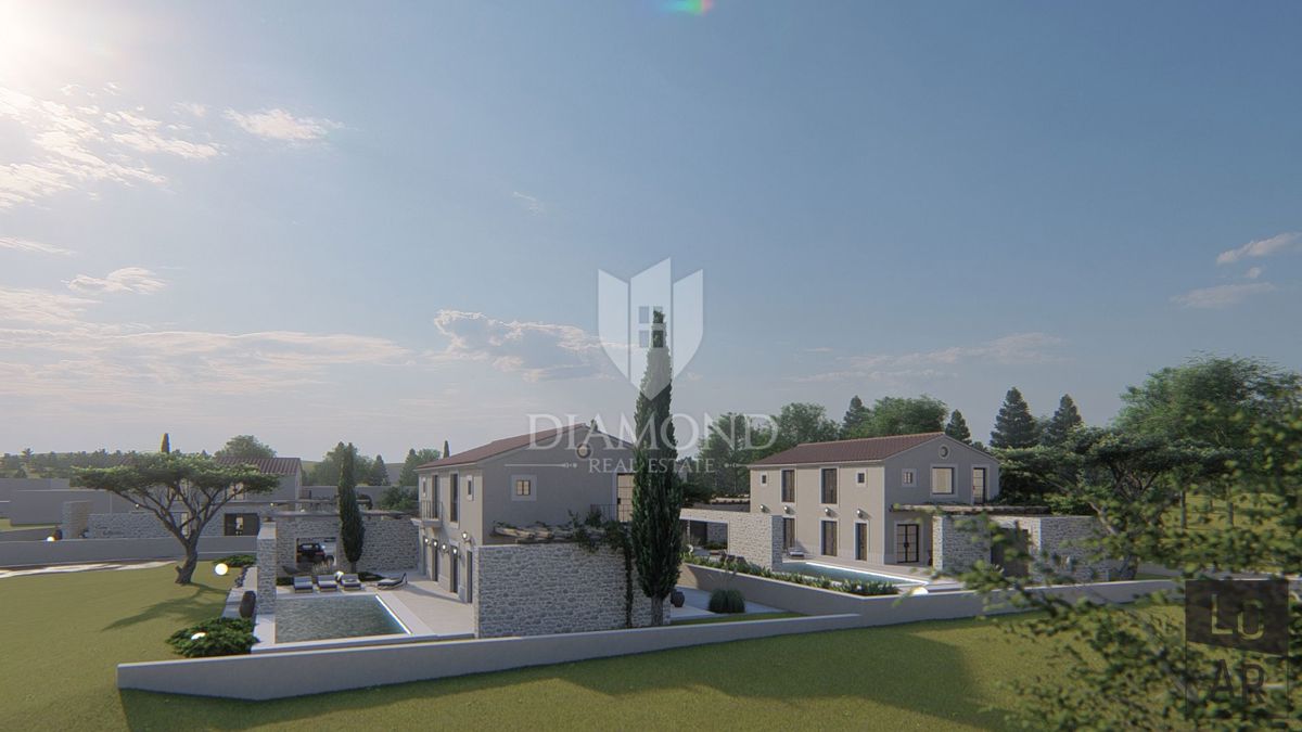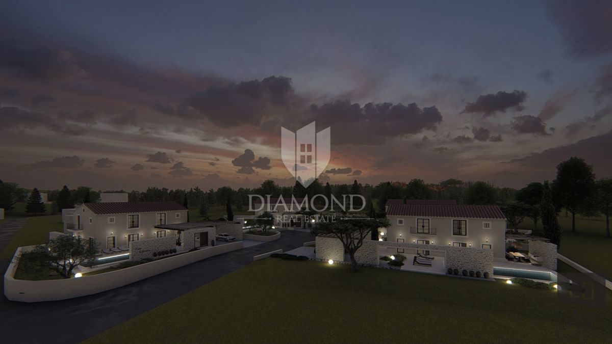 Poreč, okolica, izvanredna vila na odličnoj lokaciji U predgrađu grada Poreča na samo 10 km udaljenosti od plaža i samog centra Poreča smjestio se kompleks od ukupno četiri vile. Ville se nalaze na mirnoj lokaciji mjesta koje ima sav potreban sadržaj za