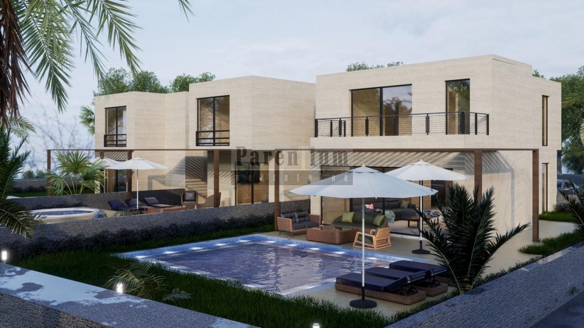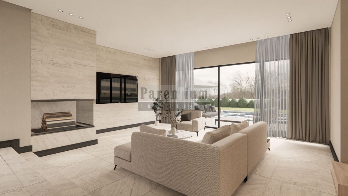 Istra, Poreč, okolica Moderna vila u nizu na lijepoj lokaciji s pogledom. Blizu grada Poreča, u poznatom i mjestu na brežuljku s pogledom na more okružena zelenilom, gradi se vila vrhunskog dizajna s naglaskom na komfor i prostranost svih jedinica. Kuća