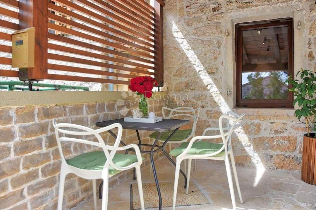 Dogma nekretnine predstavlja ovu prekrasnu autentičnu kamenu kuću svega 18 km od mora centra grada Poreča. Jedinstvena nekretnina prostire se na 81 m2 koji se protežu na 2 etaže. Prizemlje se sastoji od namještene i opremljene kuhinje sa blagovaonom i ku
