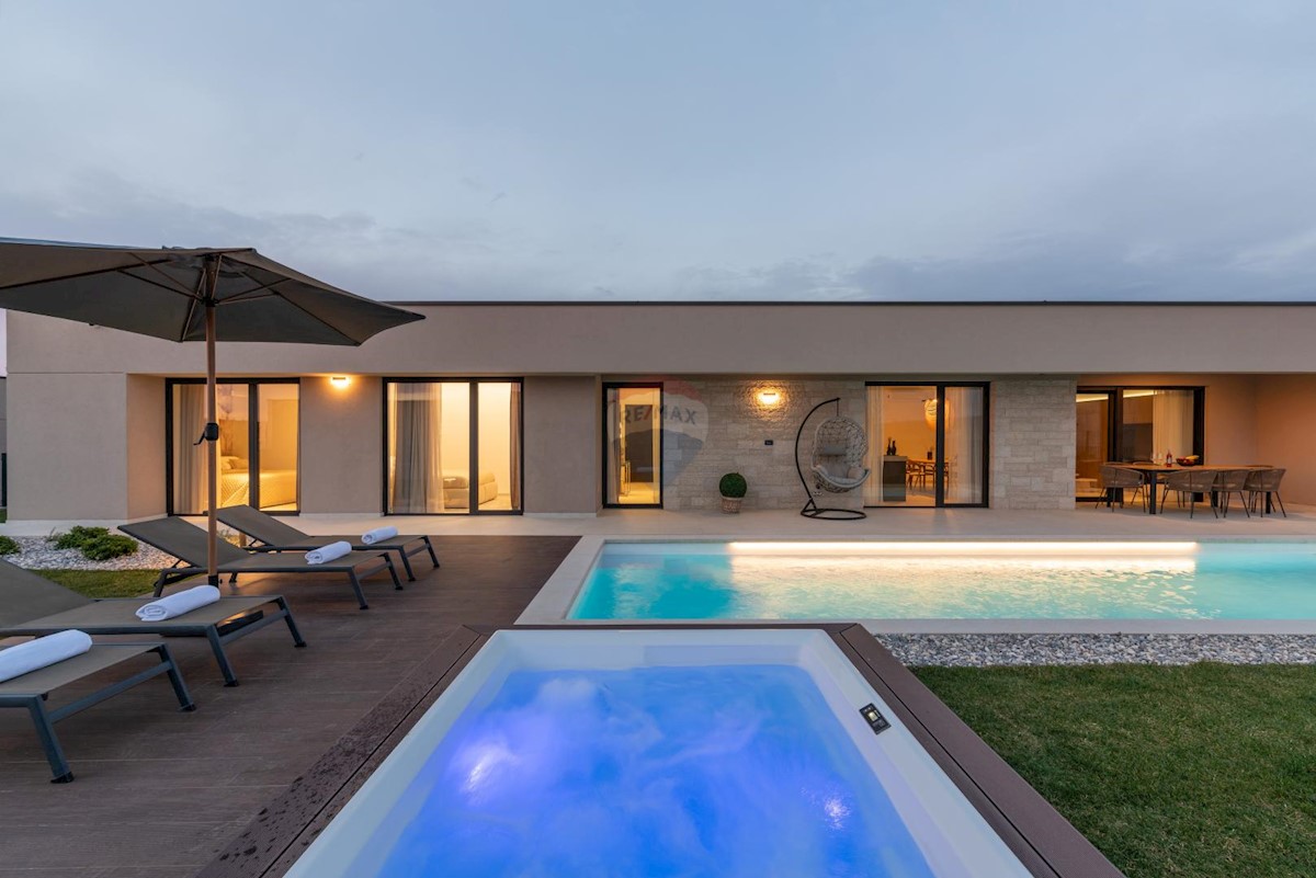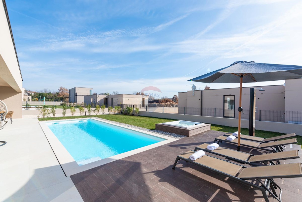 Istra, Poreč okolica luksuzna villa RE/MAX Centar nekretnina nudi ovu prekrasnu kuću smještenu na izuzetno zanimljivoj lokaciji u okolici Poreča površine 172 m2, na parceli od 600 m2. Nalazi se u mirnoj ulici u uređenom okruženju. Villa osmišljenja kao p