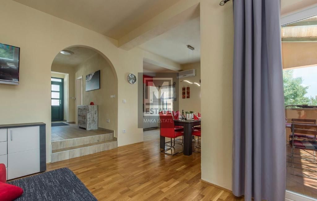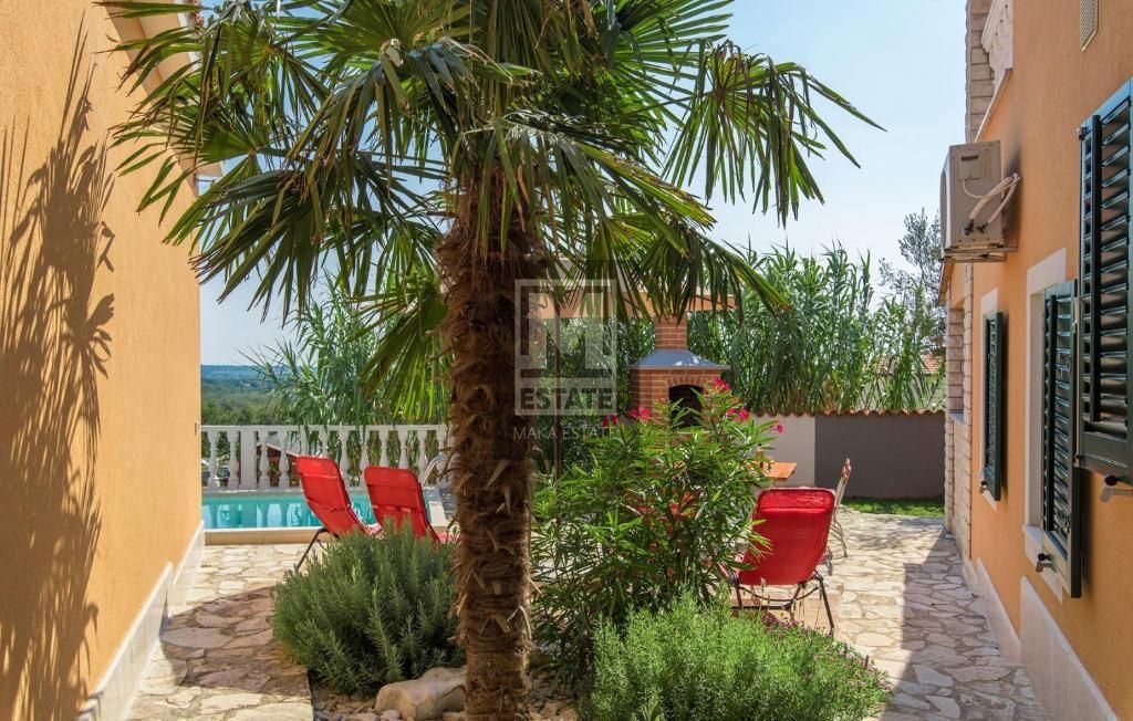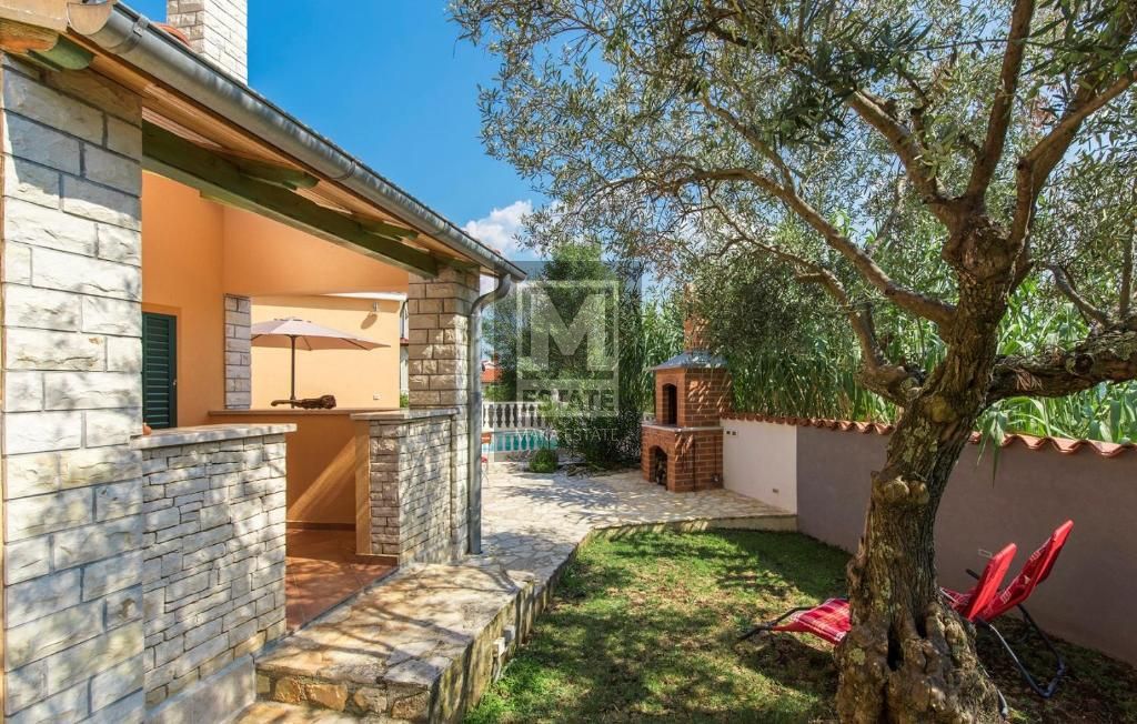 Poreč, okolica, Kuća s bazenom i predivnim pogledom na more Ova šarmantna kuća s bazenom smještena je u traženom i mirnom stambenom području te nudi fantastičan pogled na more i ugodan ambijent za život. Lokacija je u okolici Poreča, 12 km od Poreča i m