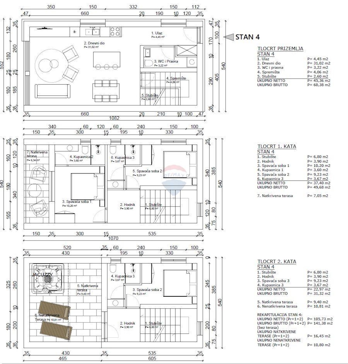 Prodaje se kuća na kraju niza, smještena u lijepom djelu turističkog grada Poreča. Kuća je smještena na udaljenosti od 1,2 km do mora. Ukupne je neto površine 116 m2 na tri etaže. U prizemlju se nalazi dnevni boravak s kuhinjom i blagovaonom s izlazom na