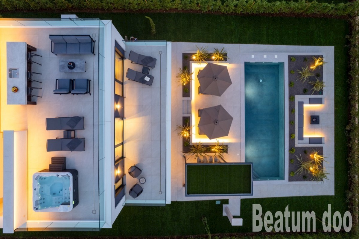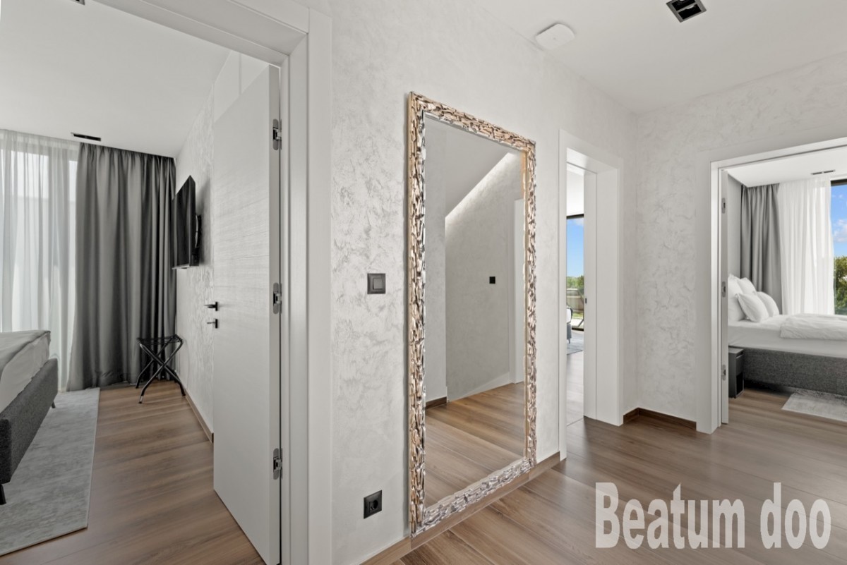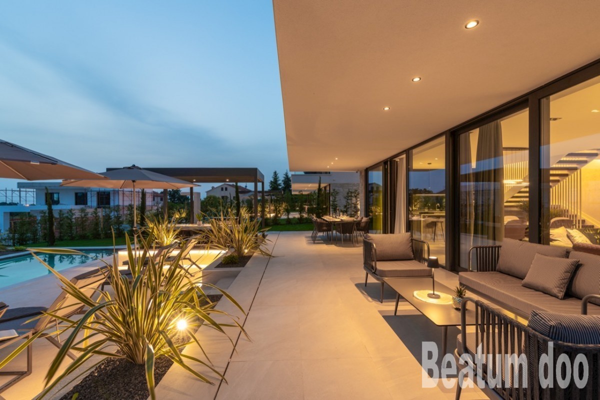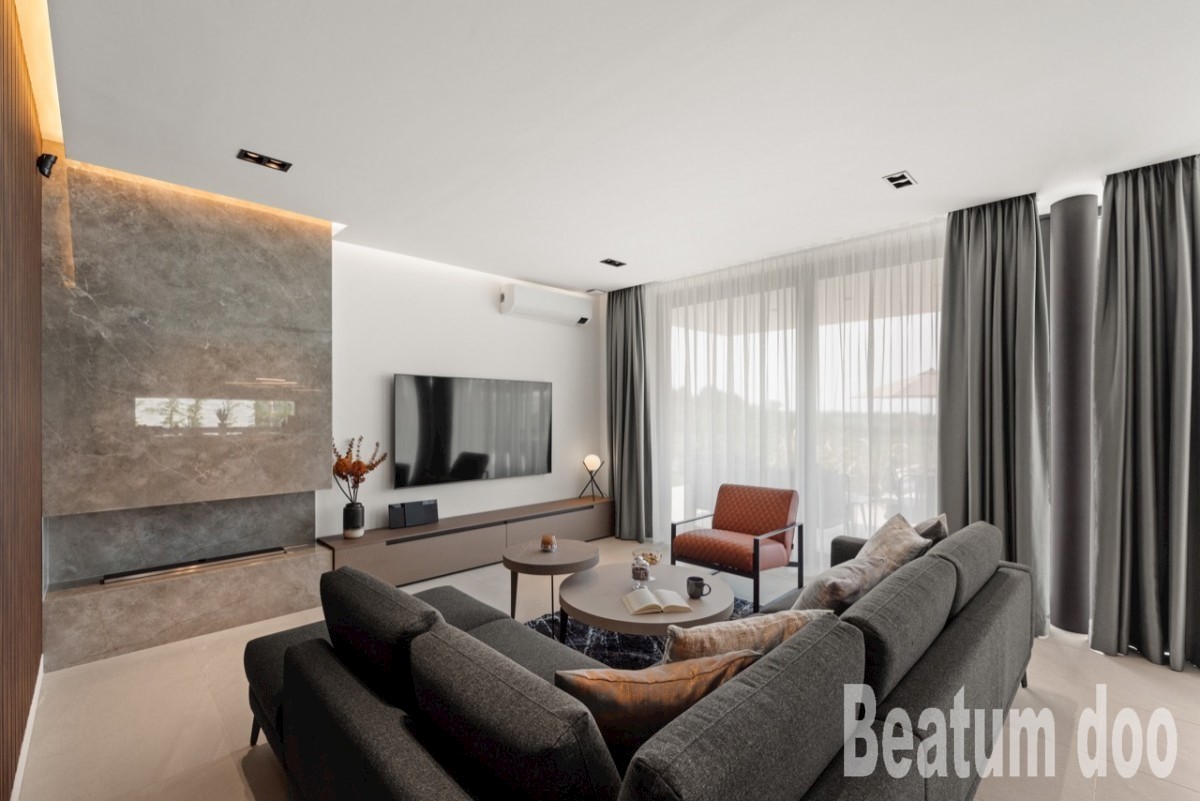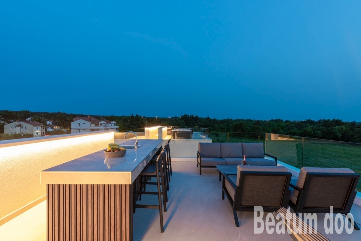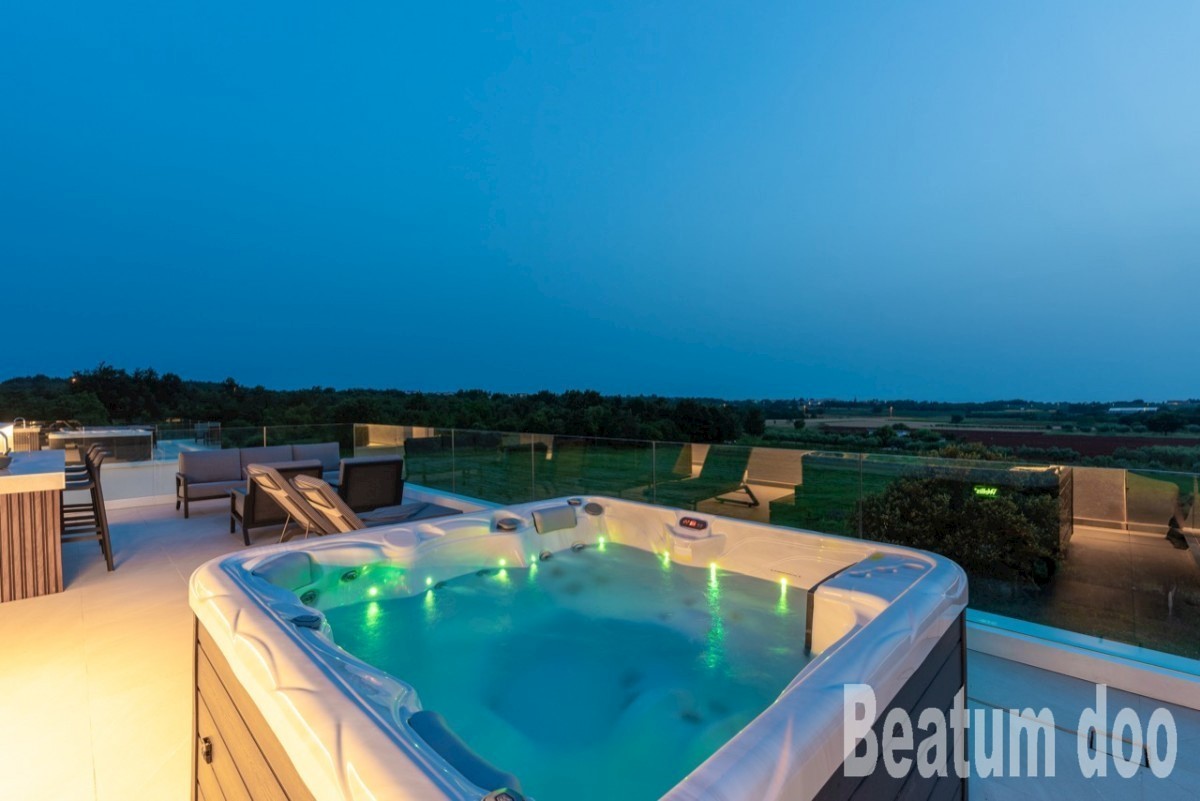 Villa Parenzo One Projekt info Mjesto Kukci kod Poreča, posljednja ulica naselja, parcela s pogledom na more. Vila se nalazi na svojoj parceli u sklopu kompleksa vila ukupne površine 3730 m2. Sastoji se od 4 samostojeća potpuno namještena i opremljena ob
