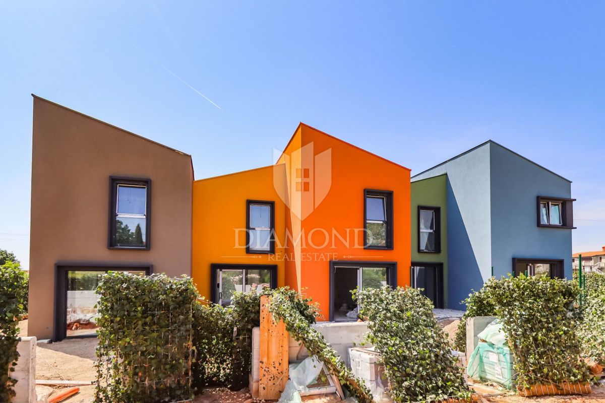 Poreč, kuća u nizu u blizini grada i mora! Na iznimno atraktivnoj lokaciji, neposrednoj blizini mora i grada Poreča, prodaje se ova moderna kuća u nizu koja obećava suvremen način života na mediteranski način. Prizemlje kuće pruža prostran otvoreni prost