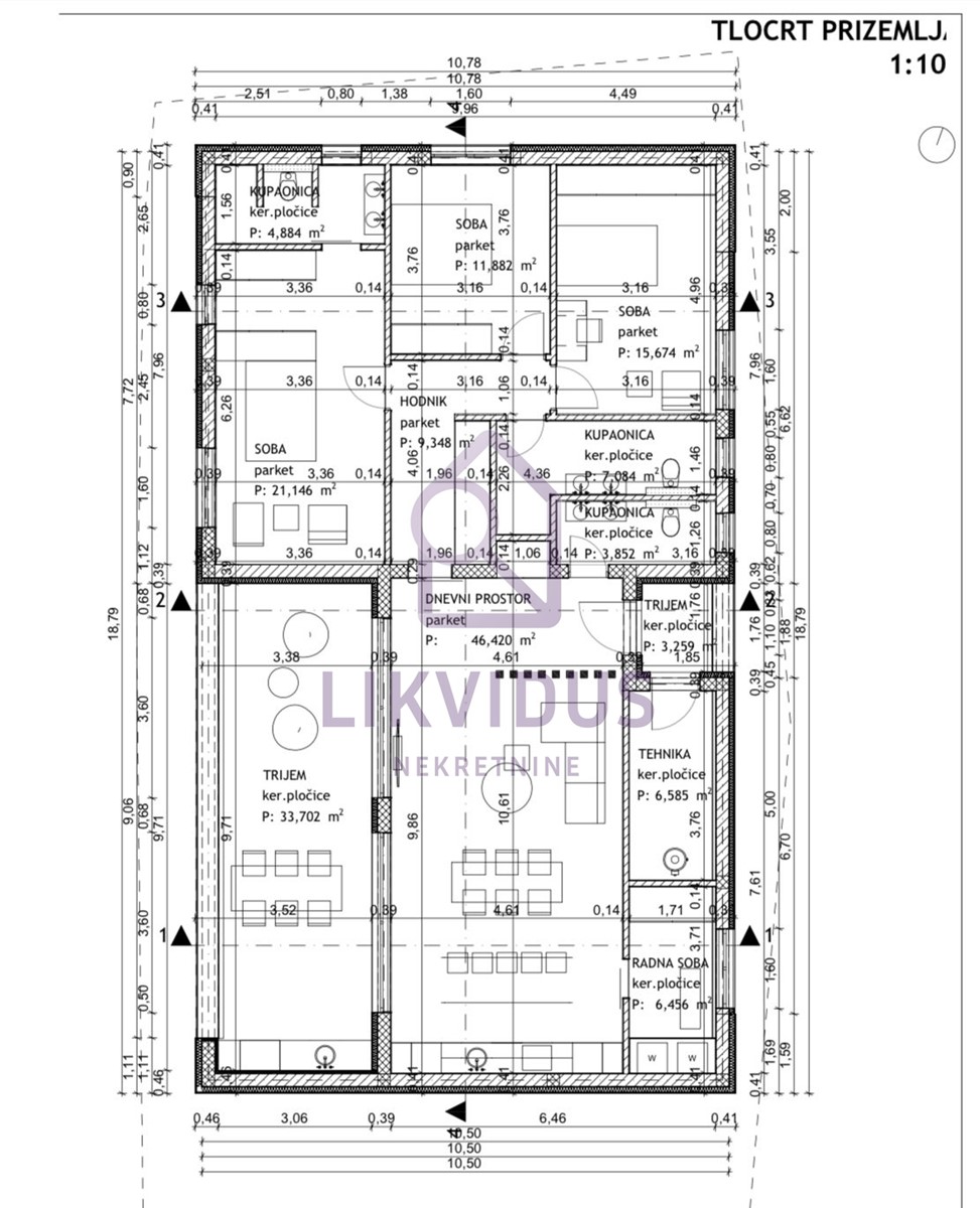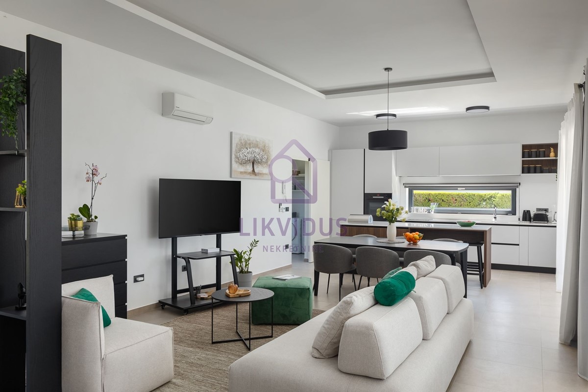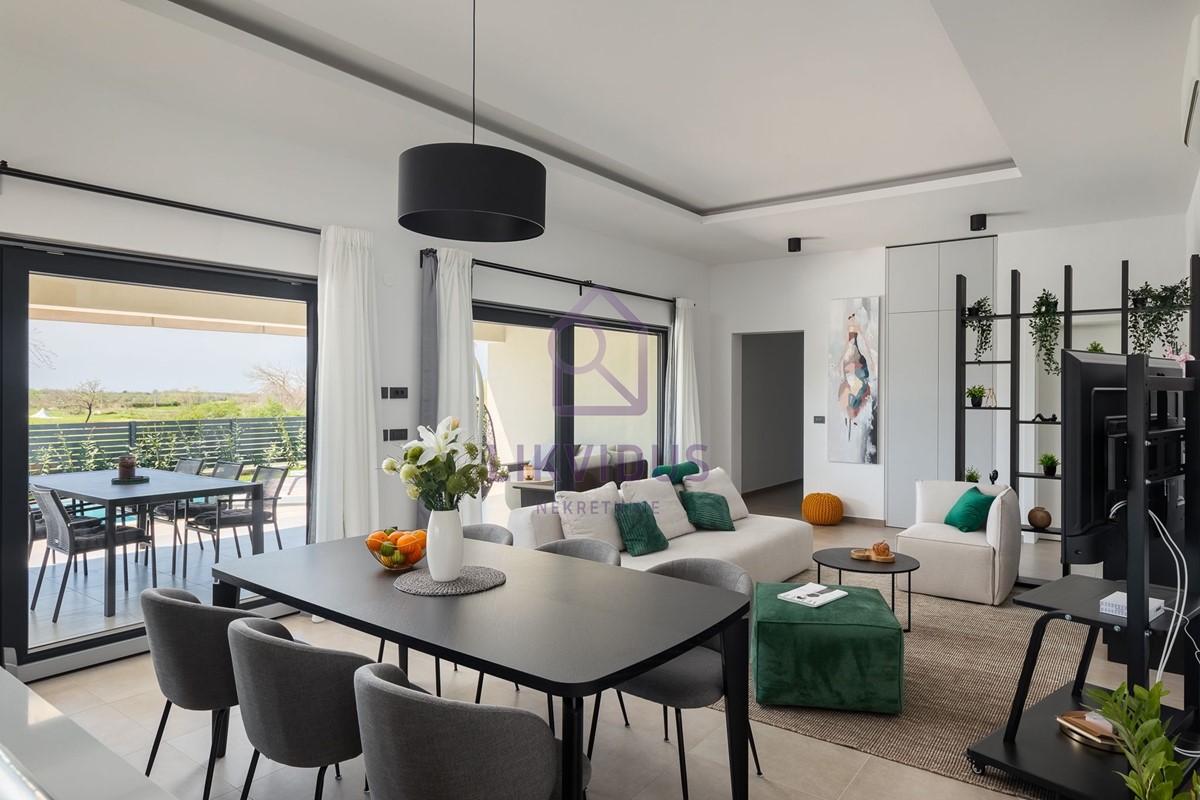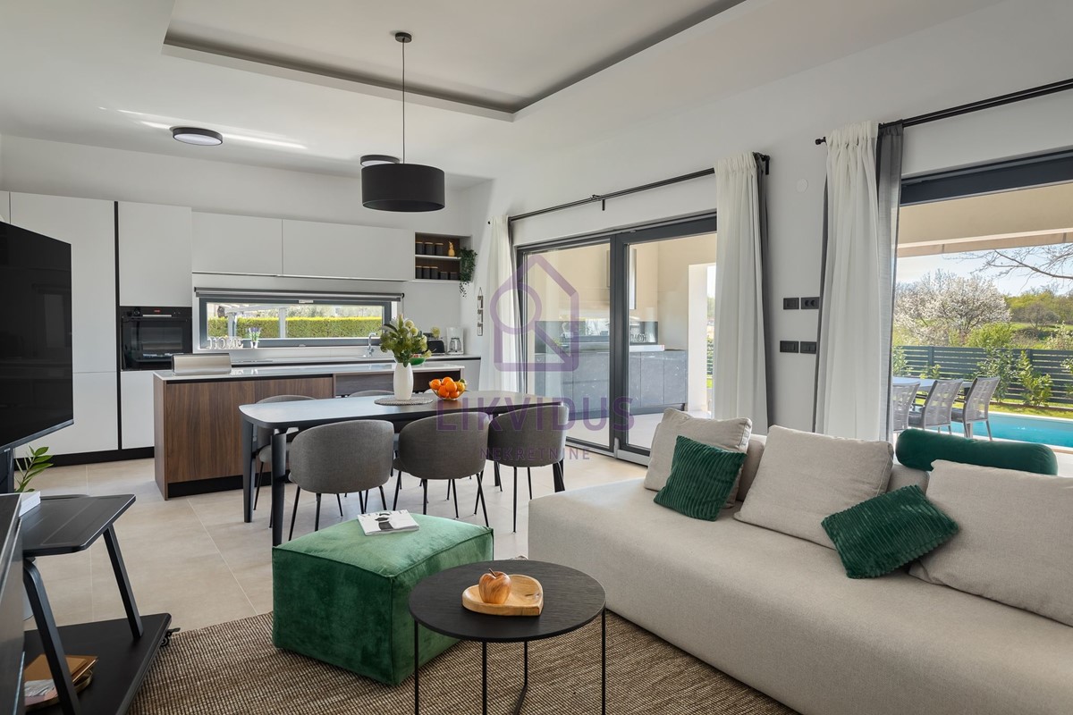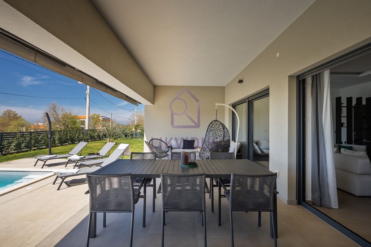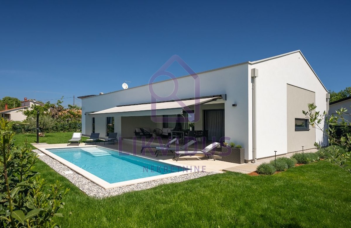 Prodaje se lijepa prizemnica površine 196 m2 u okolici Poreča (naselje Mihelići, 7 km od Poreča). Kuća ima dnevni boravak i kuhinju, tri sobe, dva kupatila, wc, tehničku i radnu sobu, te prostranu terasu. Iz dnevnog boravka izlazi se na terasu ispred koje