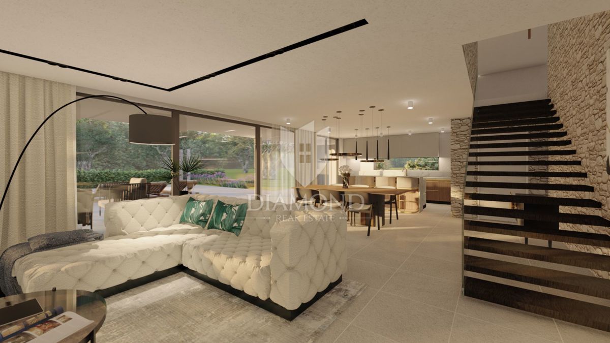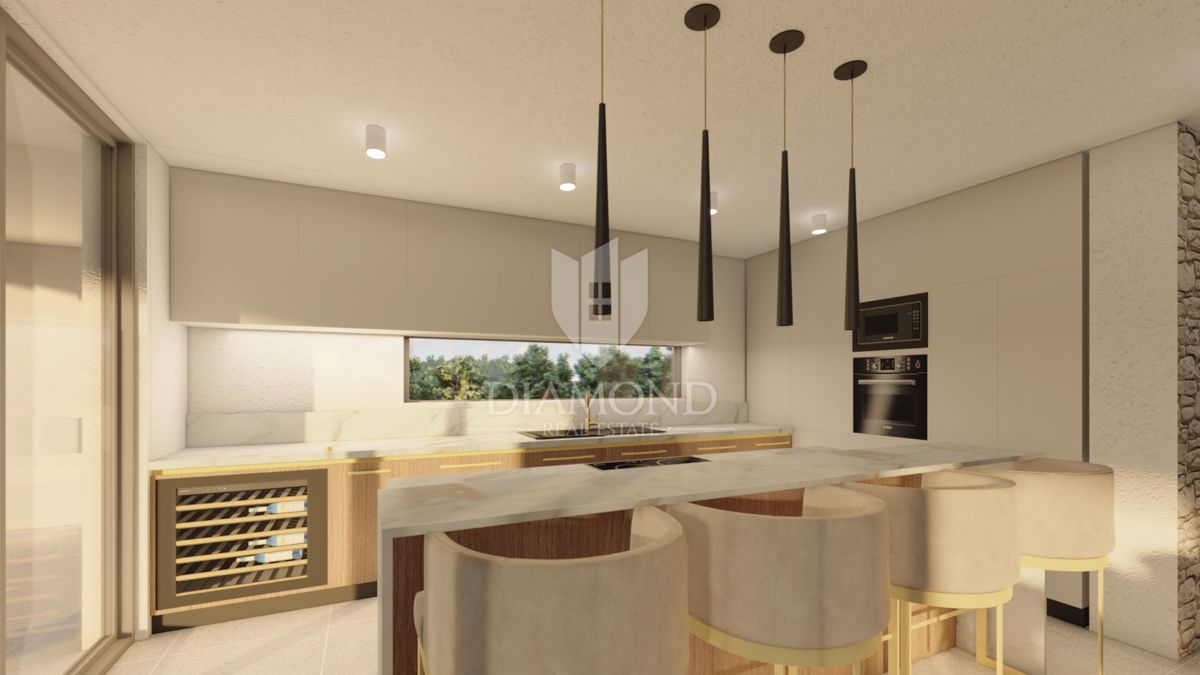 Poreč, luksuzna novogradnja na top lokaciji! Prodaje se prekrasna luksuzna vila s bazenom u izgradnji s neometanim pogledom na more i zelenilo. Vila se nalazi prvi red do mora na svega 300 metara udaljenosti od prekrasne obale. Vila je smještena na mirnoj