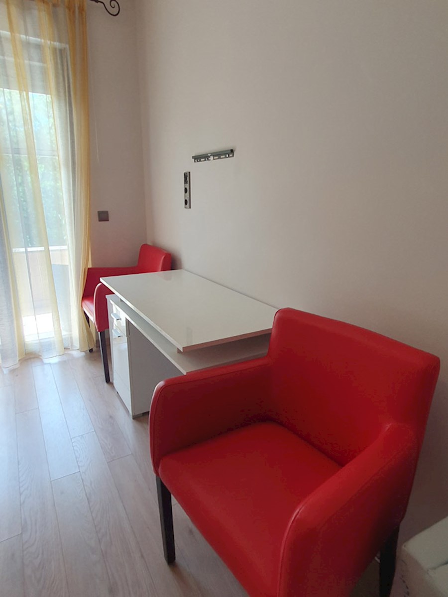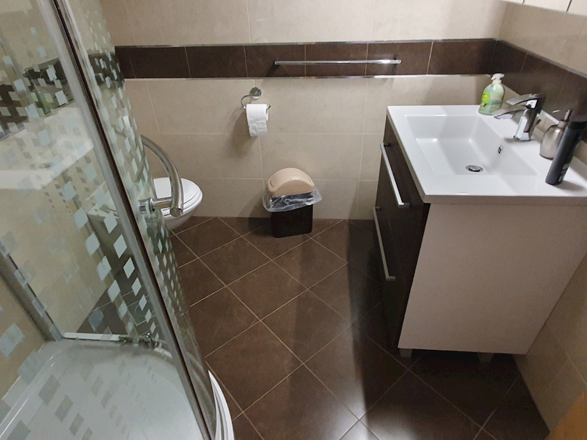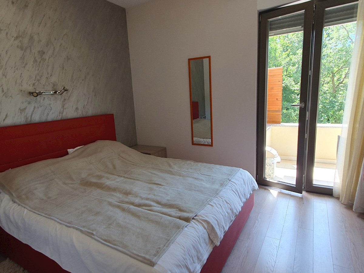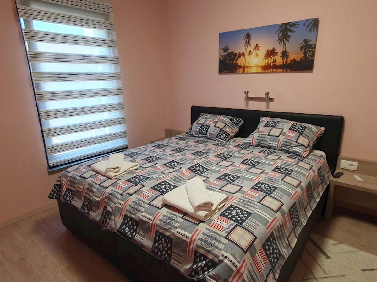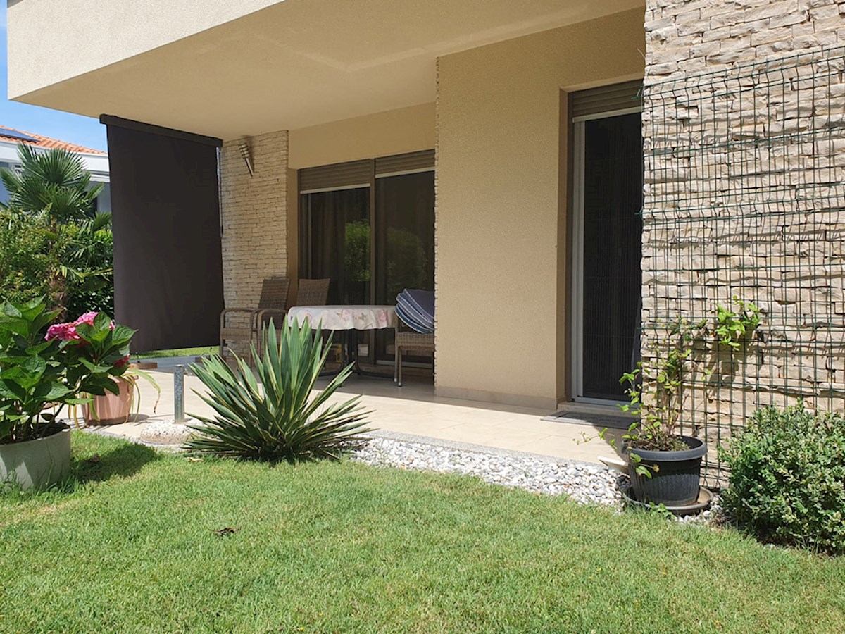 Poreč, širi centar , oko 500 m od mora , novija dvojna kuća na dvije etaže ukupne bruto površine 158 m2 ( Prizemlje: spremište – vešeraj, ulaz, hodnik i stubište, spavaća soba, kupatilo , trpezarija , kuhinja sa izladom na terasu, dnevni boravak sa kami