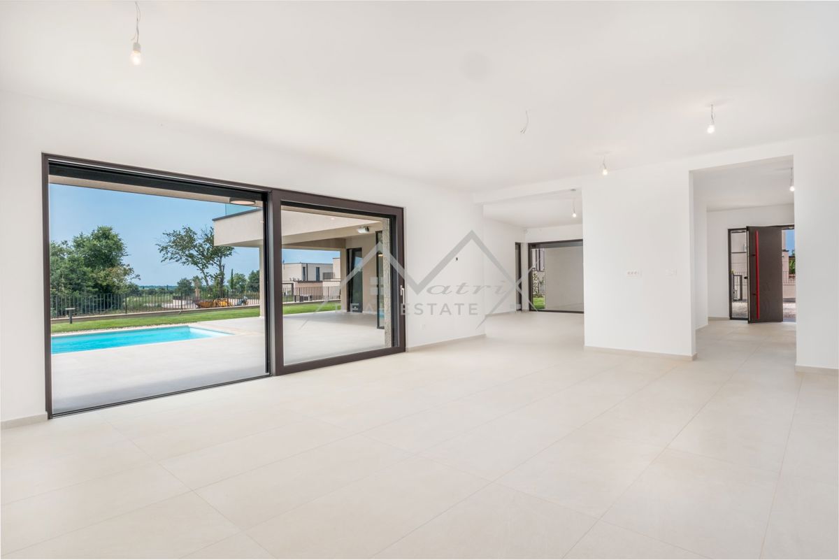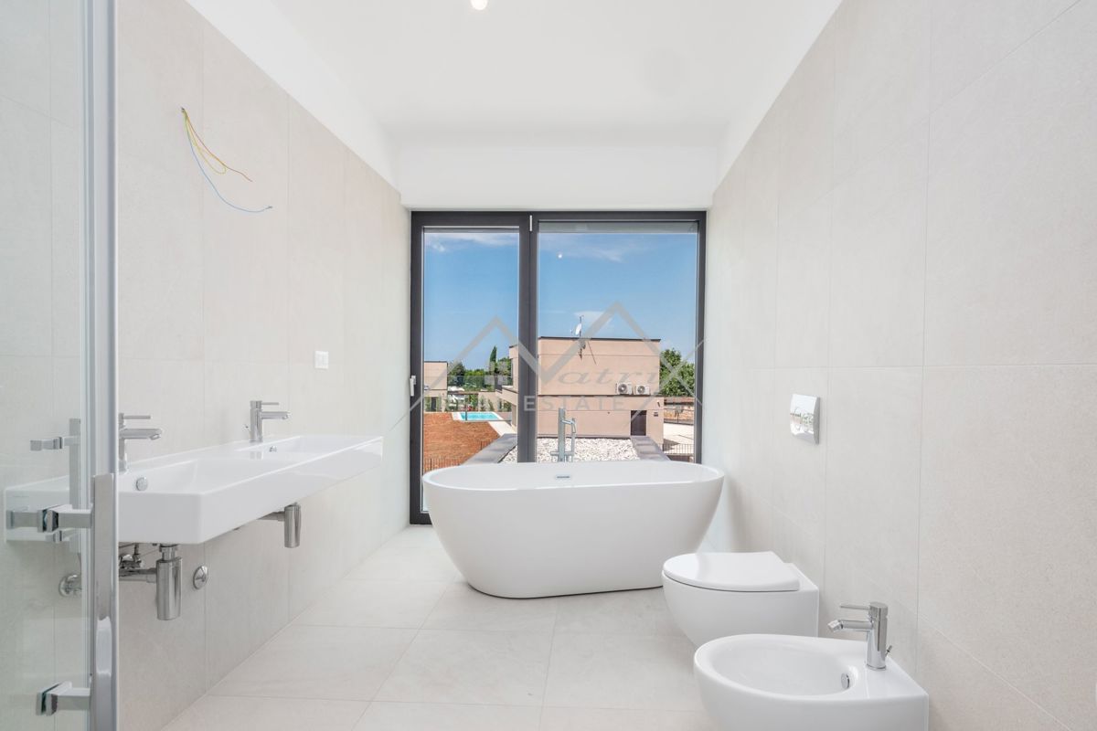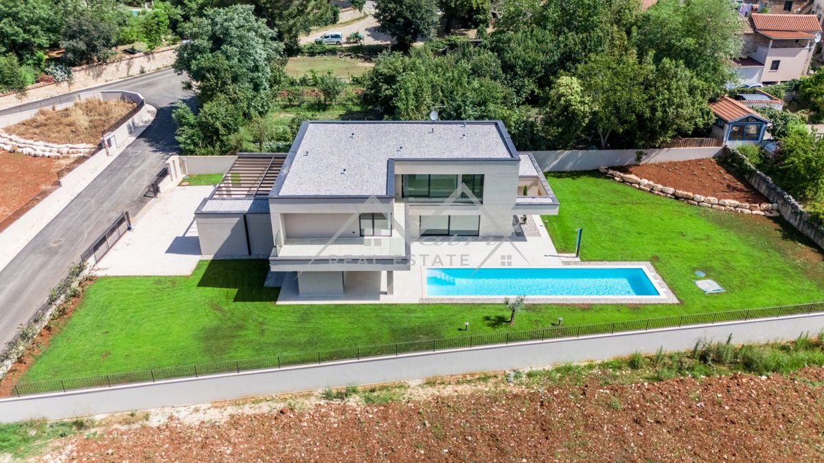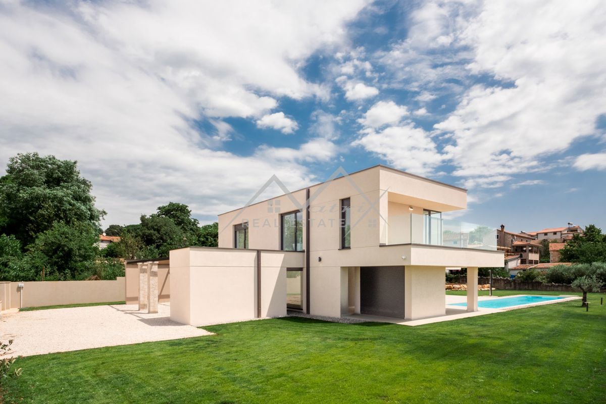 Poreč okolica. U zaleđu grada Poreča na mirnom i elitnom mjestu smjestila se ova luksuzna vila. Vila je dio kompleksa od 14 vila a nalazi se na površini od 1323 m2, površina vile je 351,20 m2 što ju čini i najvećom od svih drugih. Budući da je izdvojena o