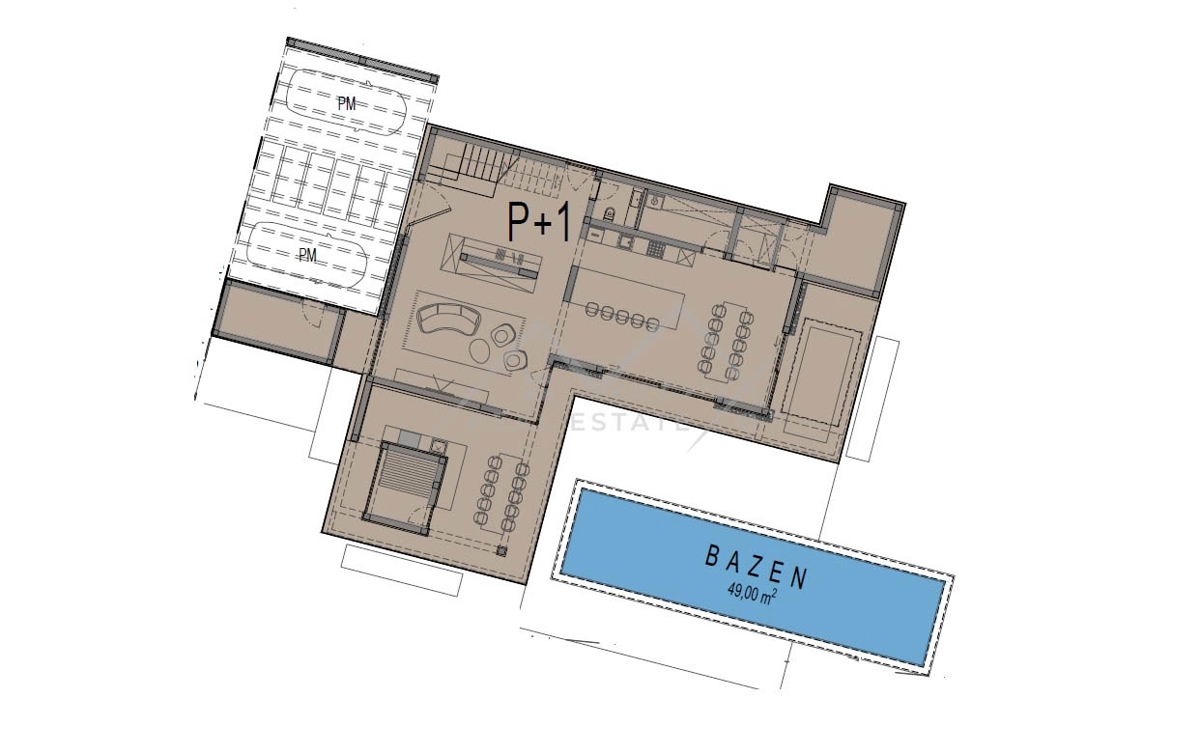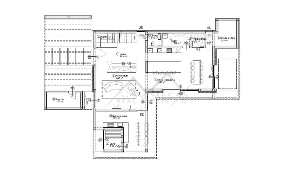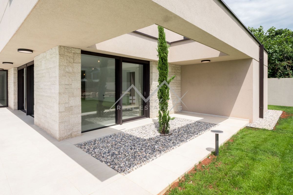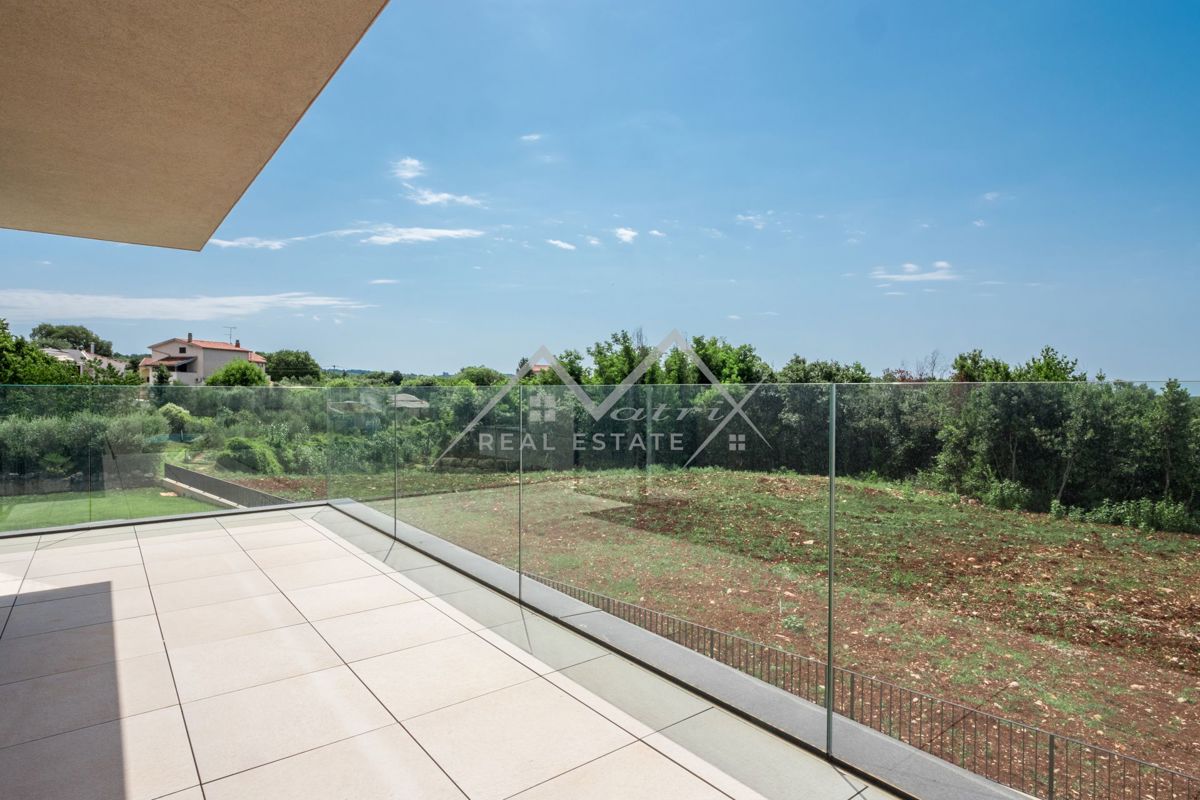 Poreč okolica. U zaleđu grada Poreča na mirnom i elitnom mjestu smjestila se ova luksuzna vila. Vila je dio kompleksa od 14 vila a nalazi se na površini od 1323 m2, površina vile je 351,20 m2 što ju čini i najvećom od svih drugih. Budući da je izdvojena o