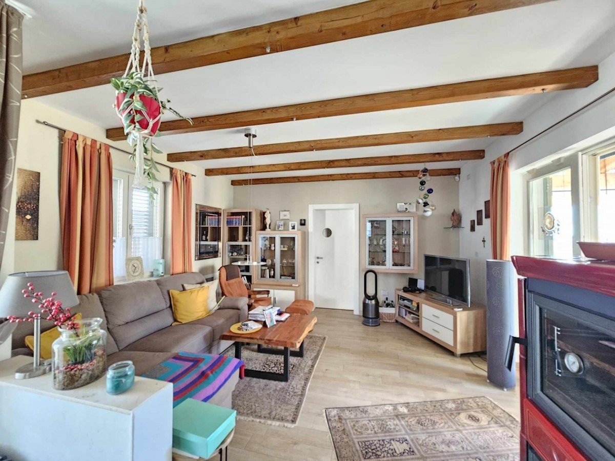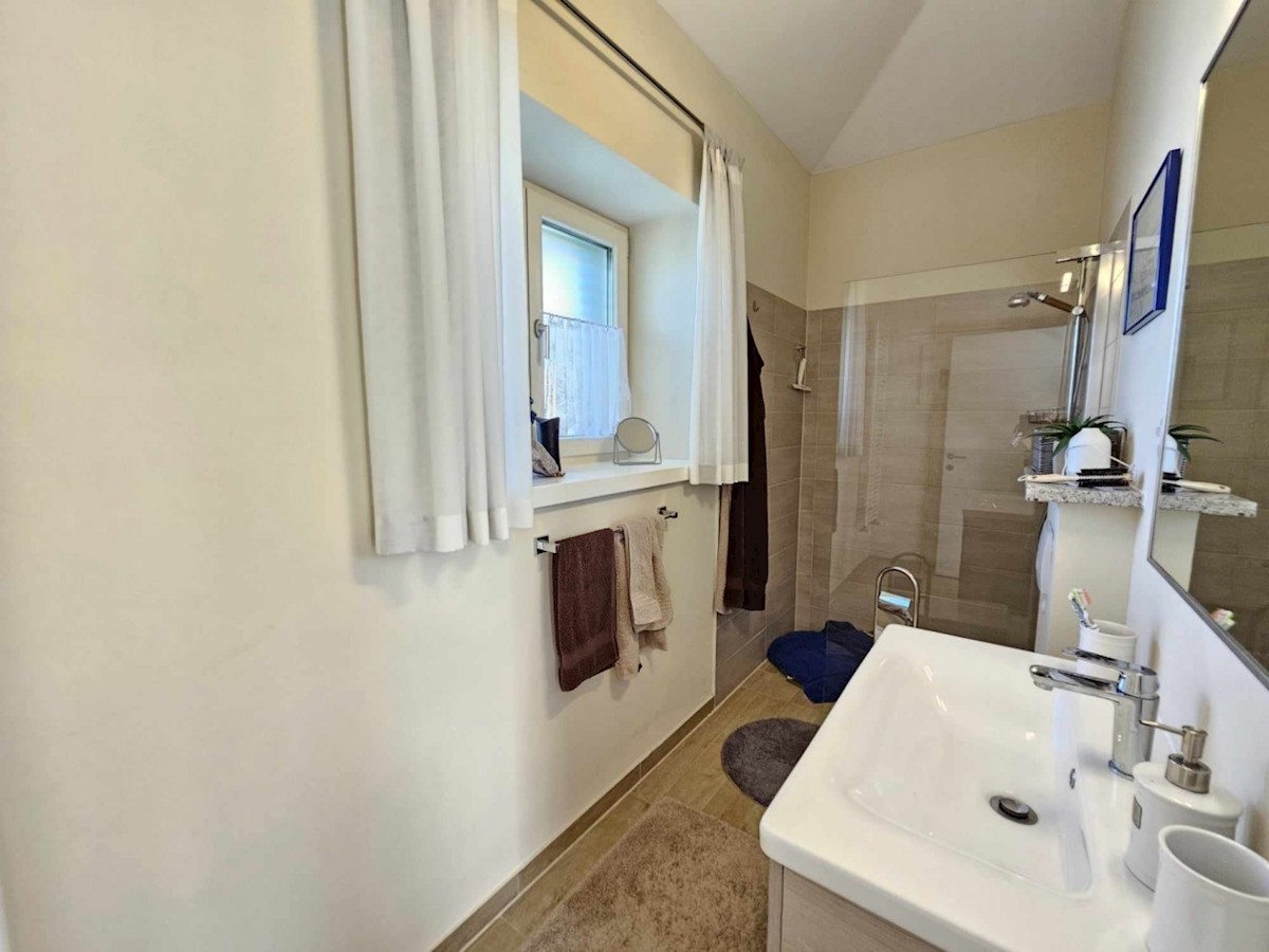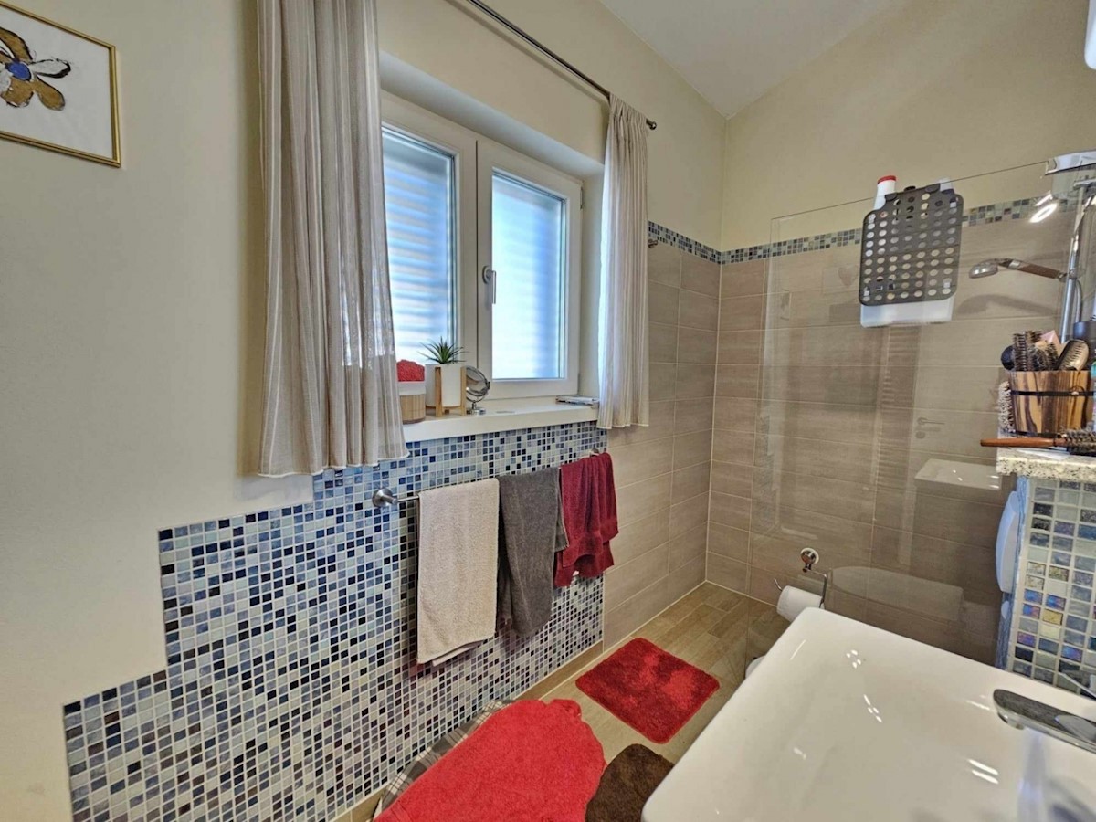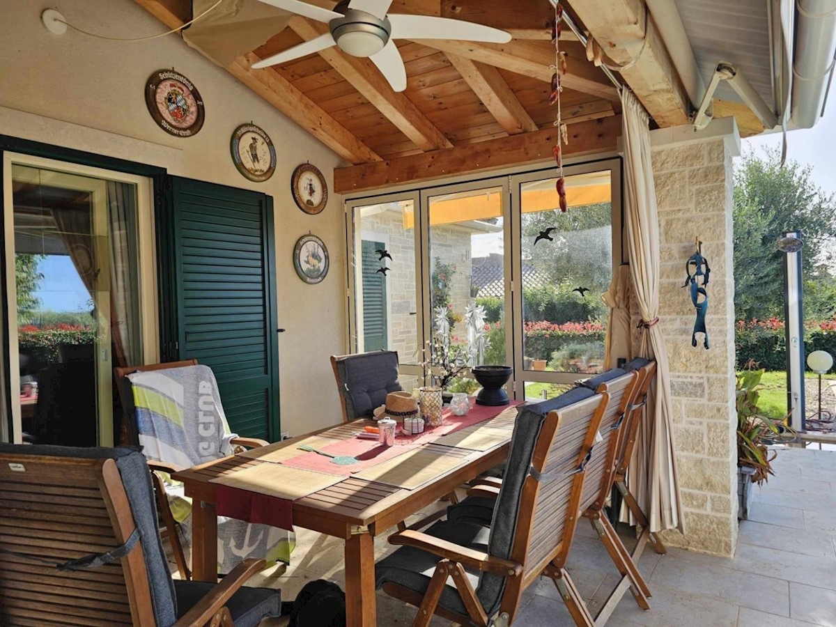 Ca 10 km od Poreča i mora prodaje se samostojeća kuća od 160 m2 na prekrasnoj parceli od 662 m2- kuća ima dnevni boravak, kuhinju i blagovaonicu, 3 spavaće sobe, 3 kupatila, wc za goste, ostavu koja se može koristiti kao spavaća soba, natkrivenu terasu i