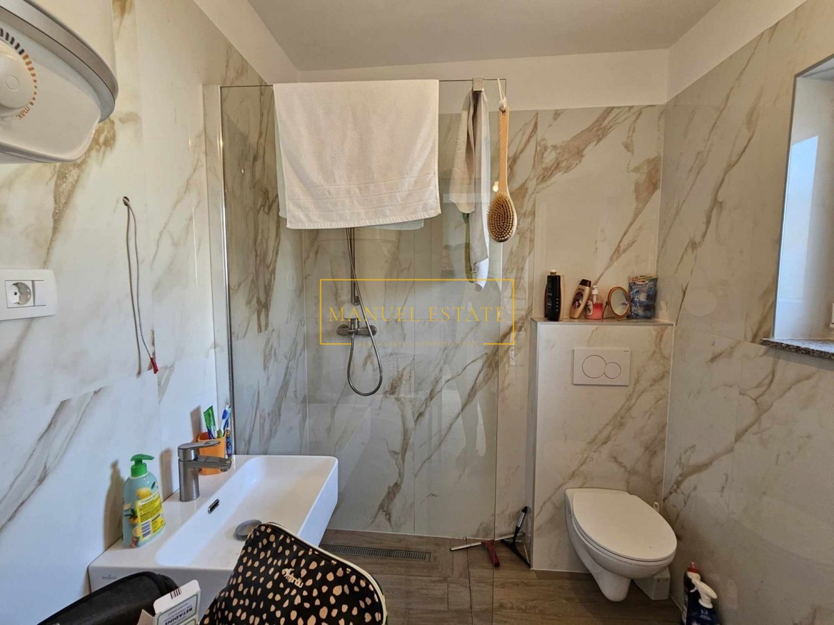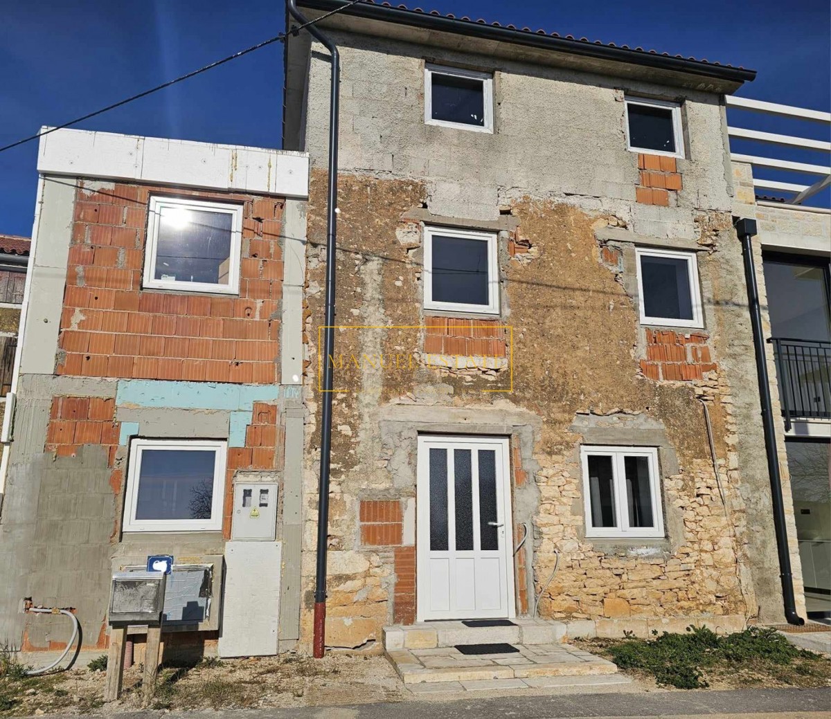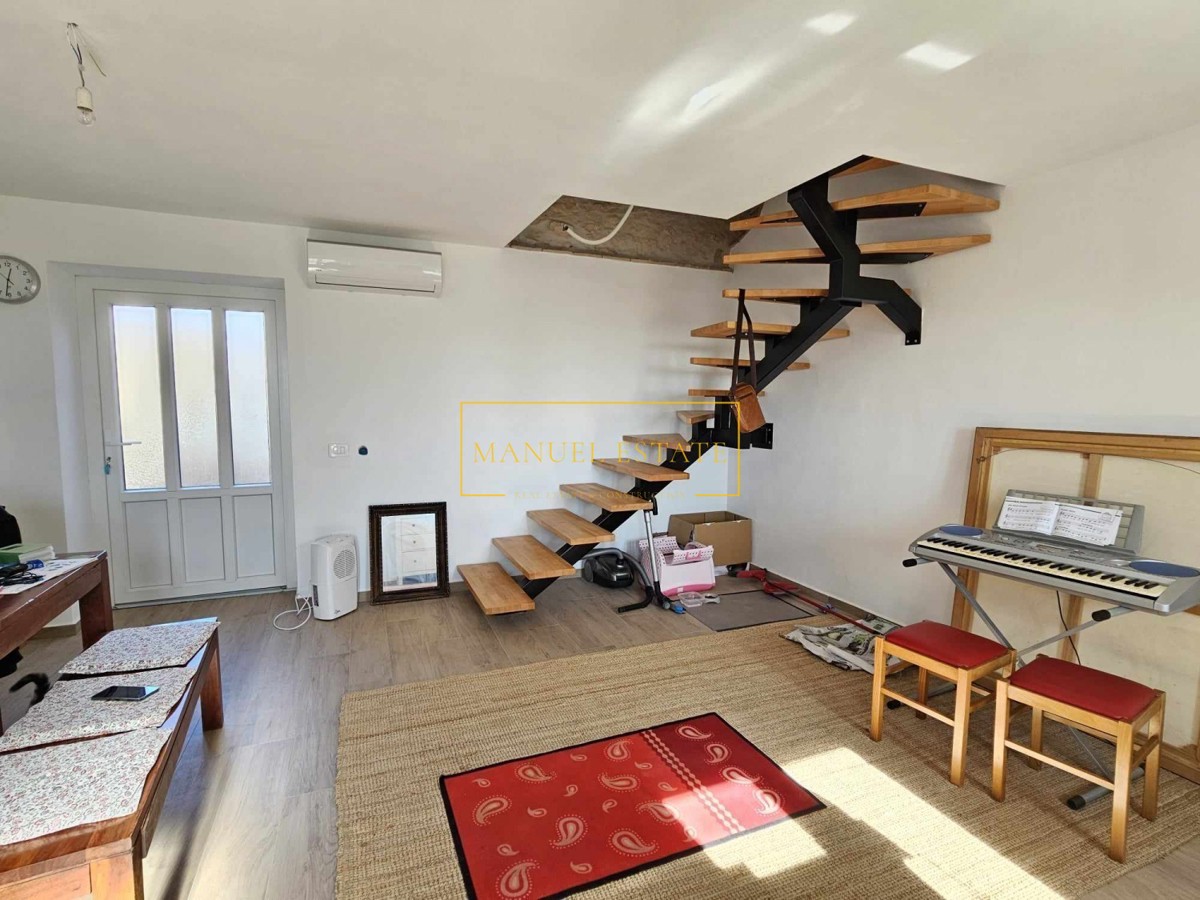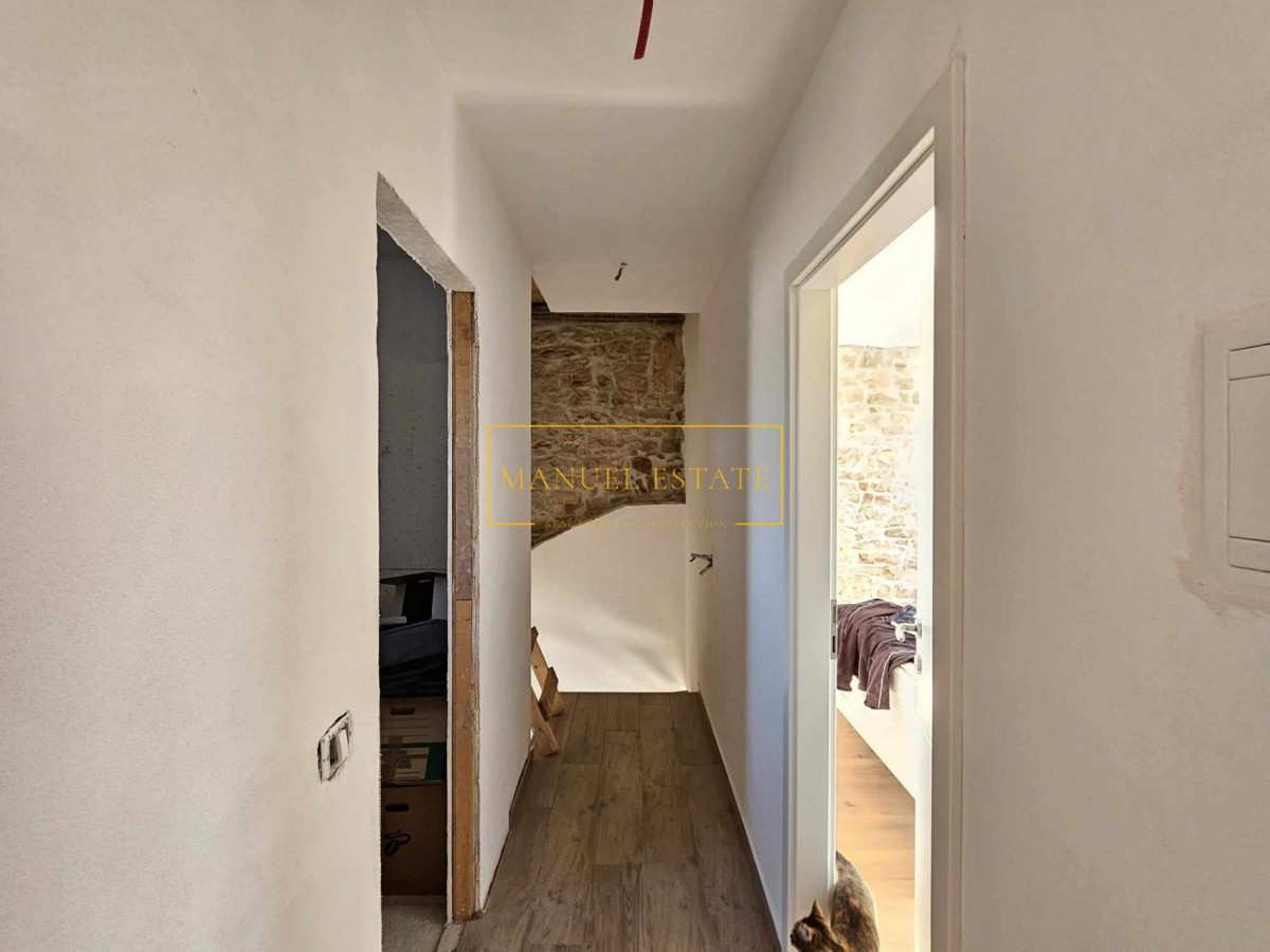 Kamena kuća u nizu, nalazi se u okolici Poreča, oko 9 km od mora. Renovirana kuća od 118 m2, zemljište 160 m2, prostire se na tri etaže; prizemlje: dnevni boravak, kuhinja s blagovaonicom i kupaonica, kat: dvije spavaće sobe i kupaonica, drugi kat: spavać