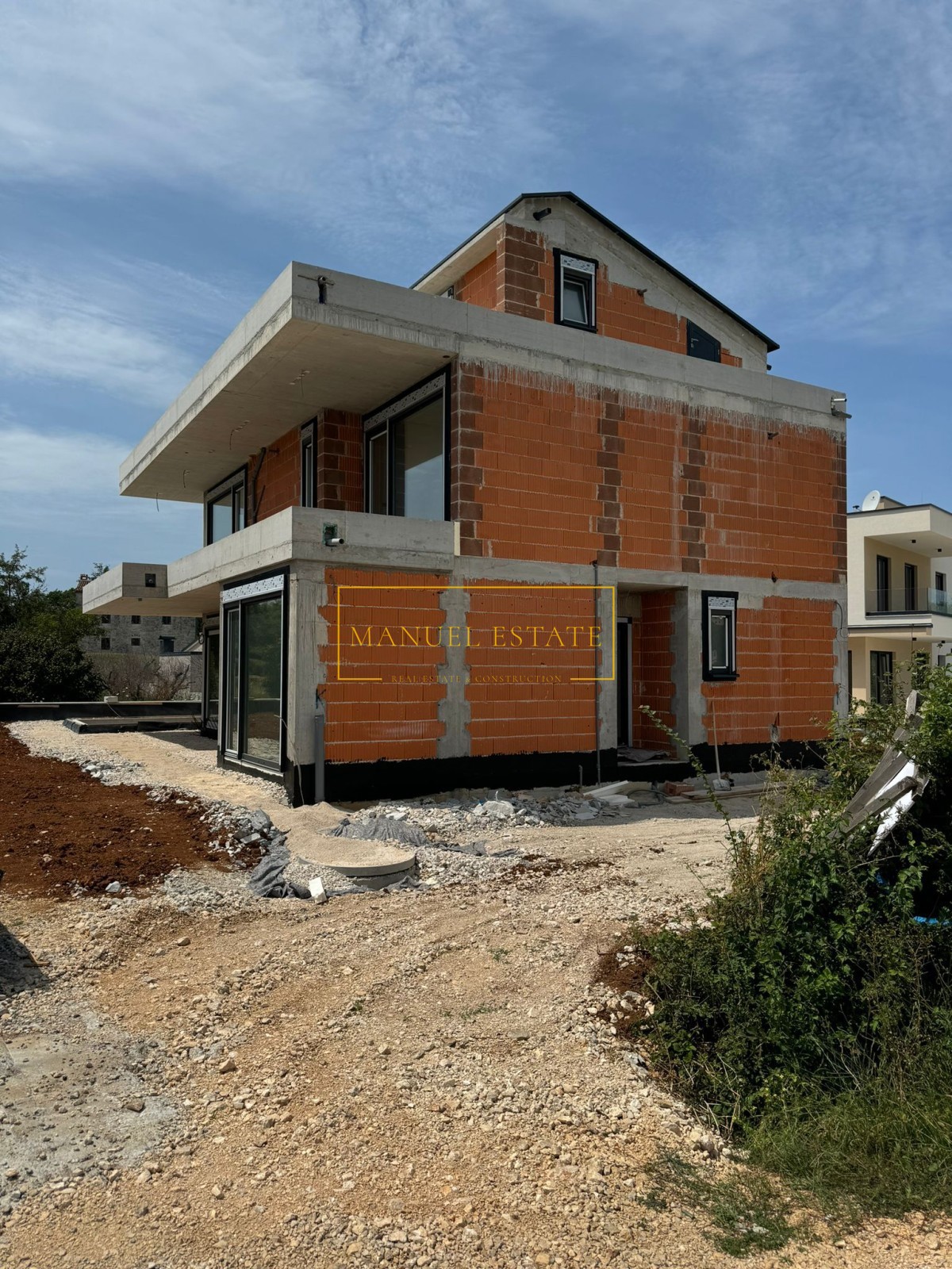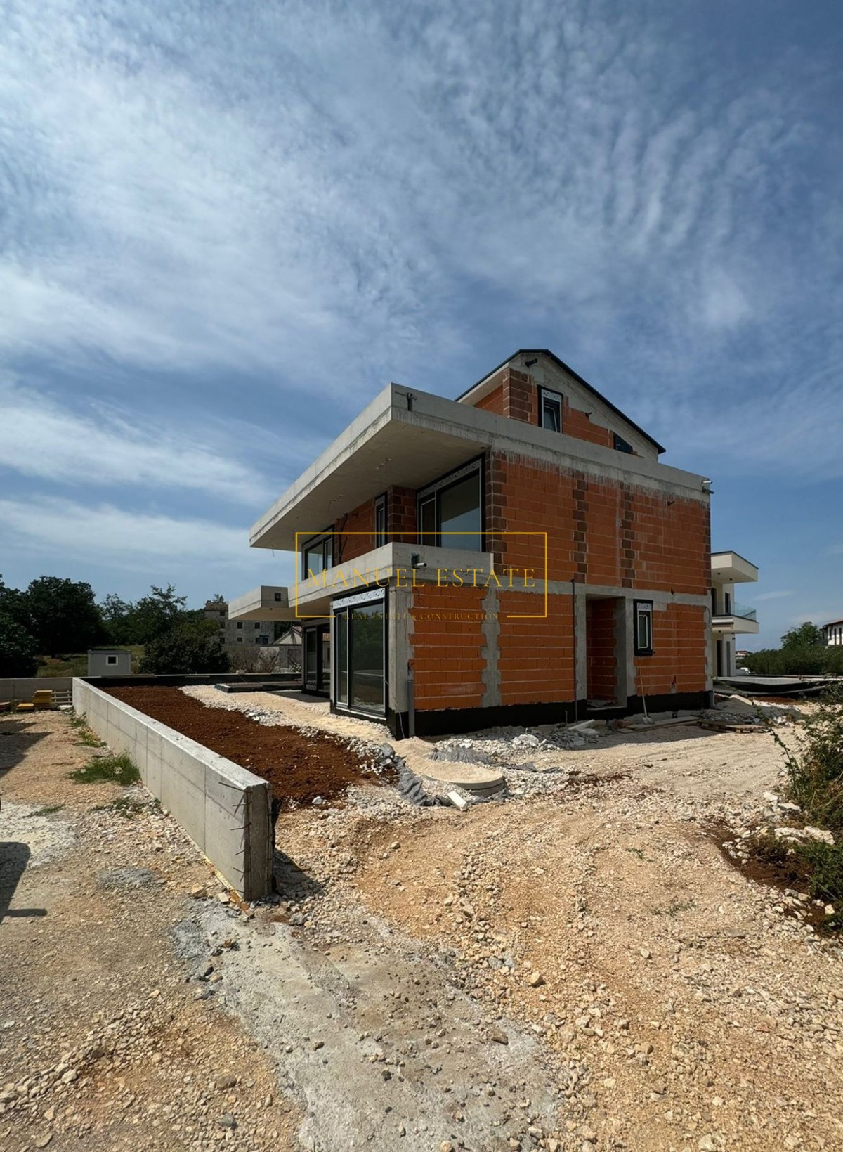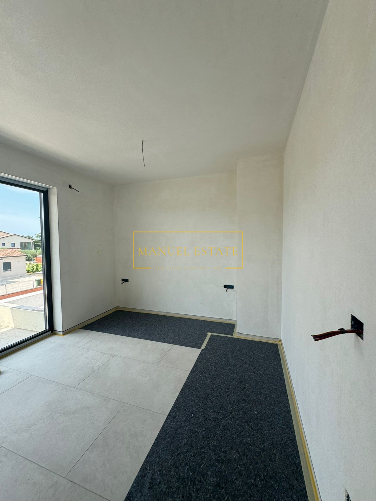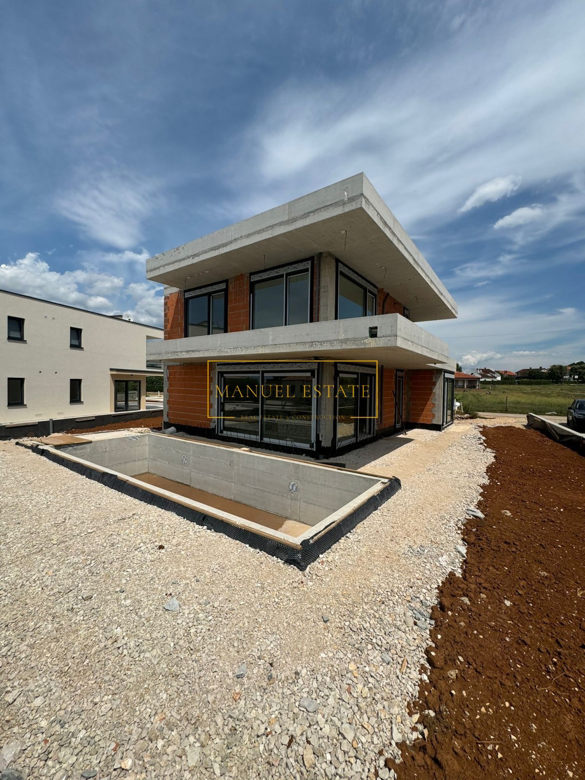 Moderna vila u blizini Poreča, 233 m2, na parceli od 571 m2. U prizemlju se nalazi spremište, wc, tehnička prostorija, wellness zona i open space dnevni boravak s kuhinjom i blagovaonicom s izlazom na natkrivenu terasu. Na prvom katu biti će smještene tri