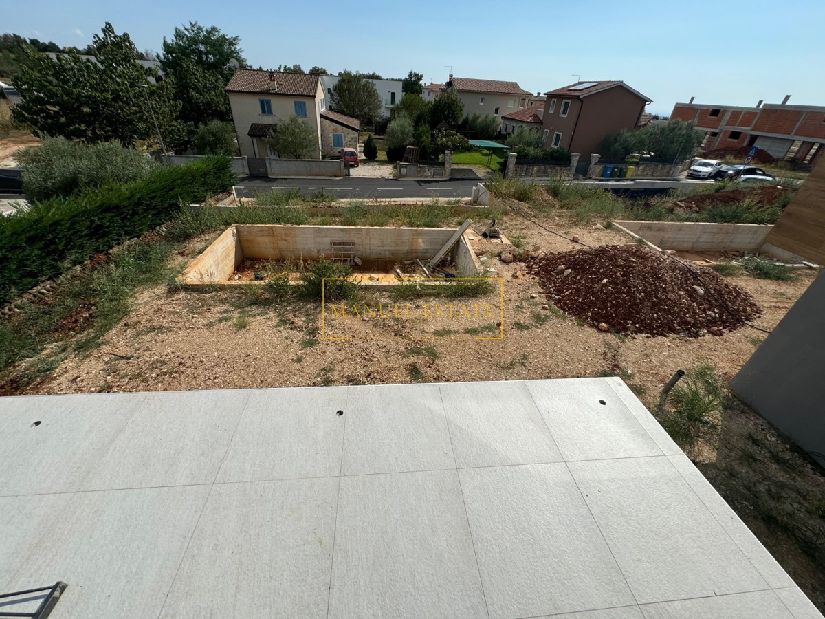 Predstavljamo vam ovu izvanrednu modernu dvojnu vilu s bazenom, koja je trenutno u fazi izgradnje i smještena u mirnom naselju nedaleko od Poreča, samo 12 km od centra grada i predivnih jadranskih plaža. Ova luksuzna nekretnina savršeno spaja suvremeni di