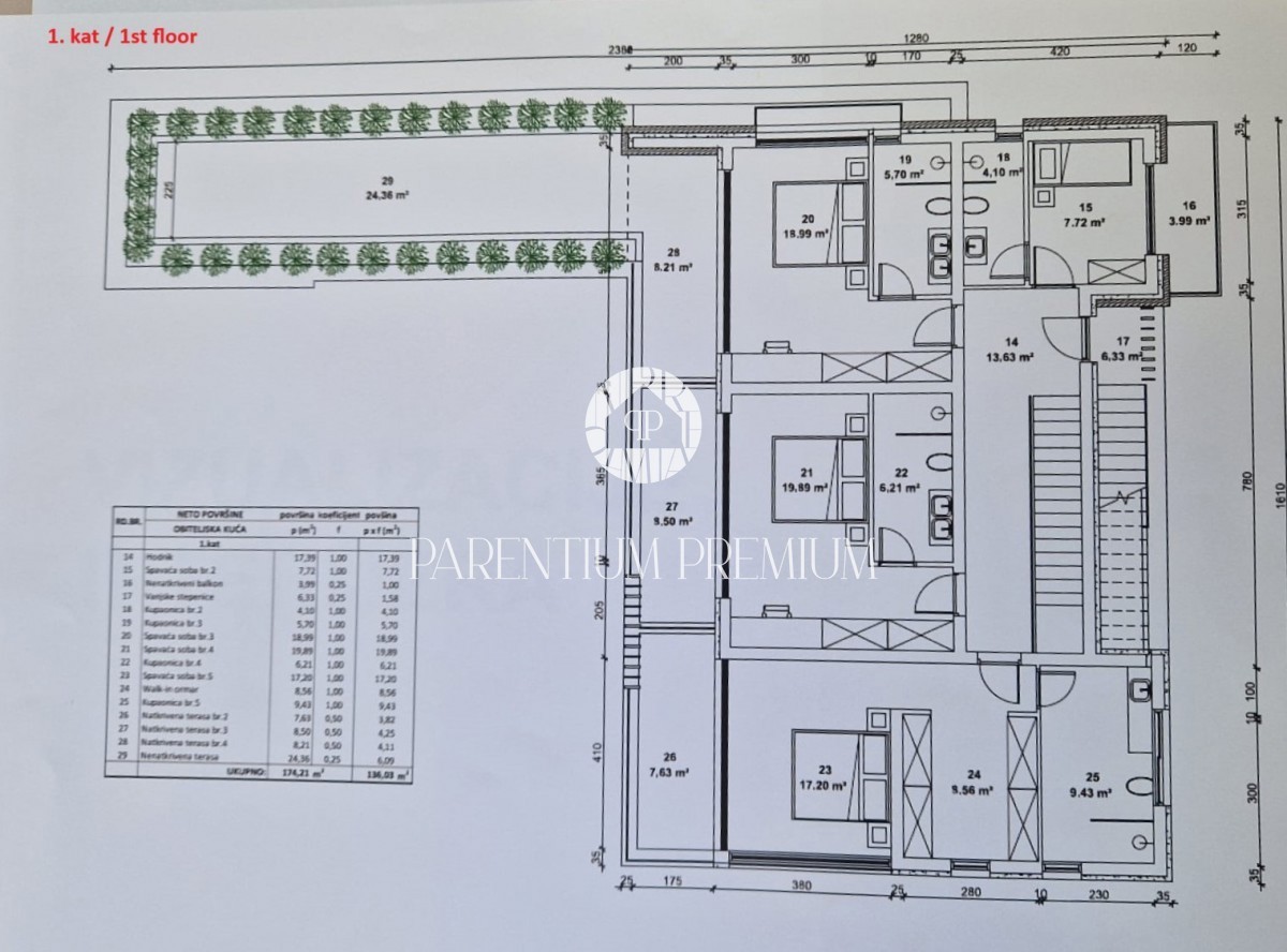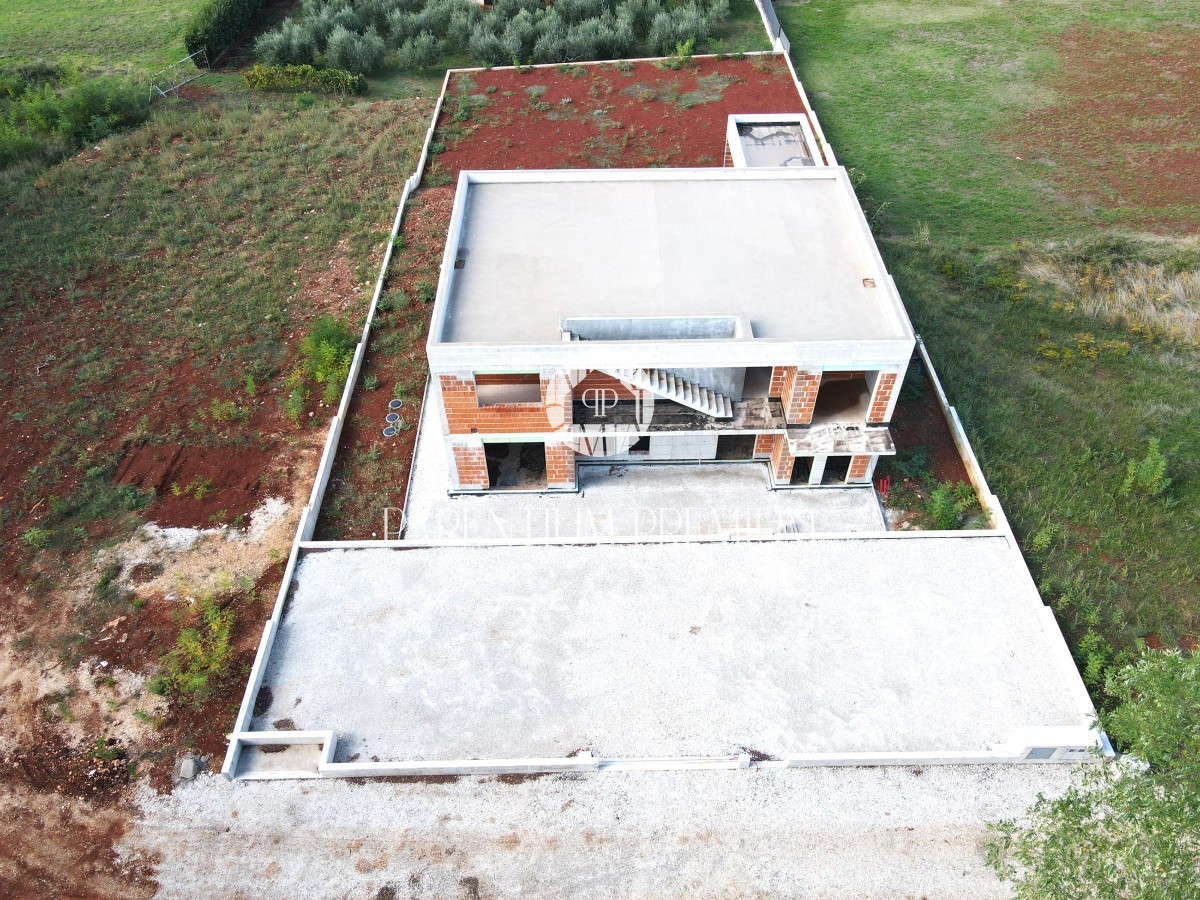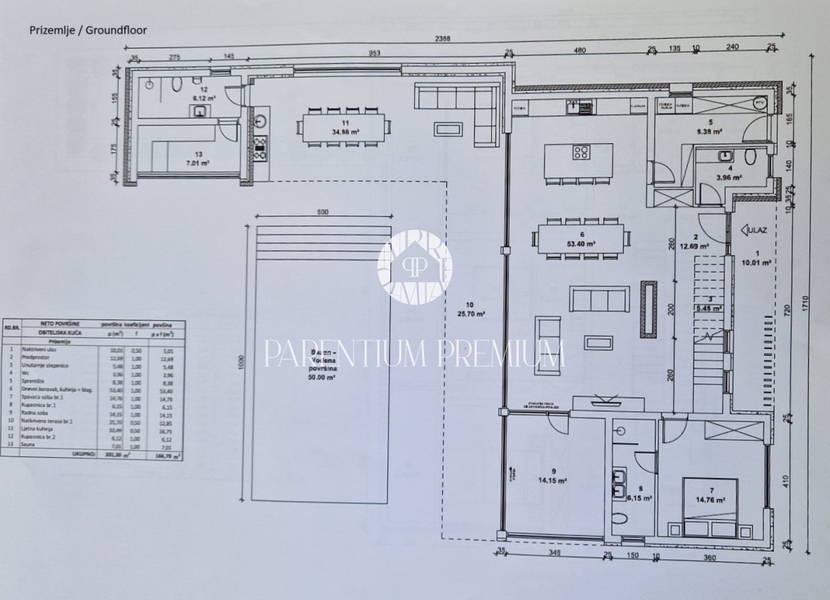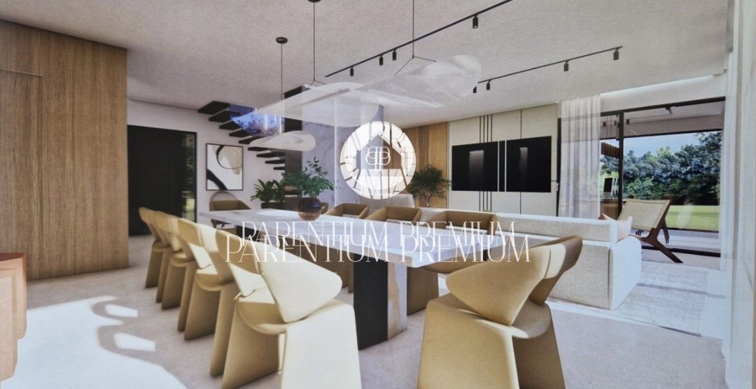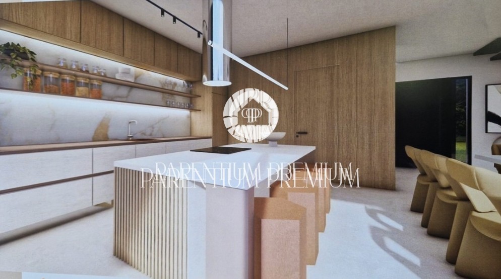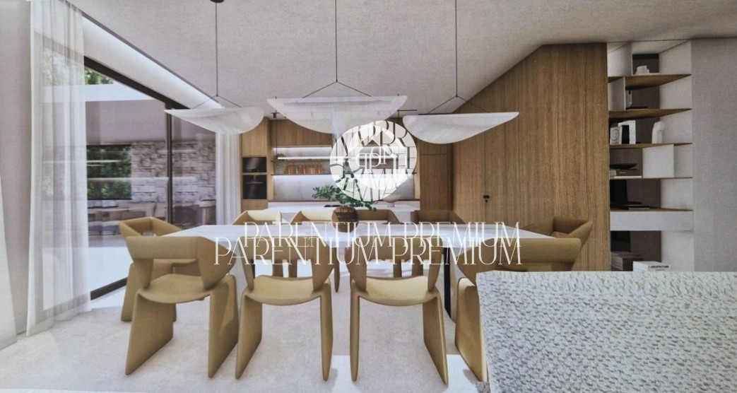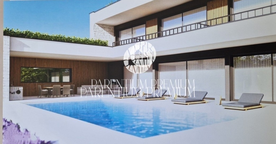 Na 9km od mora i plaža se nalazi ova luksuzna Villa sa bazenom. Vila je smještena na parceli od 1408m2 te se sastoji od prizemlja, prvog kata i krovne terase. Prizemlje se sastoji od spremišta sa vešerajem, gostinjskog WC-a, jedne spavaće sobe sa vlastito