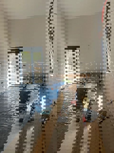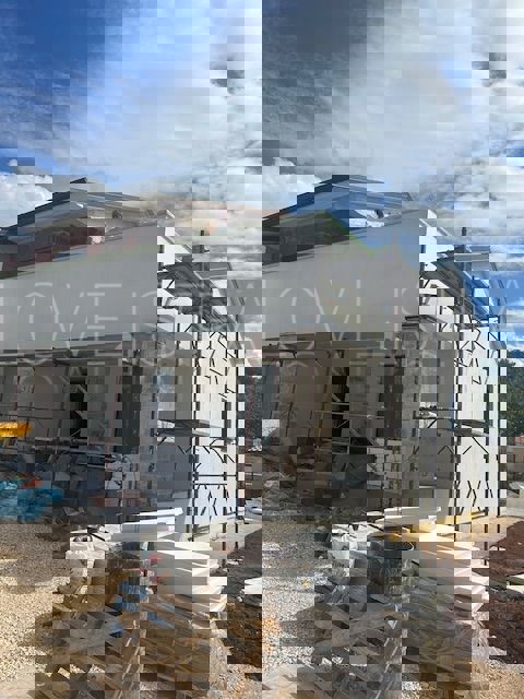 Kuća A, Dvojna Kuca od 120m2 i 400m2 okućnice . Kuca na dvije etaže, u prizemlju je veliki dnevni boravak sa kuhinjom i blagavaonom izlazom u vrt i bazen , dvije spavaće sobe i kupaona . Na katu veliki otvoreni prostor za spavaću sobu, kupaona i terasa sa