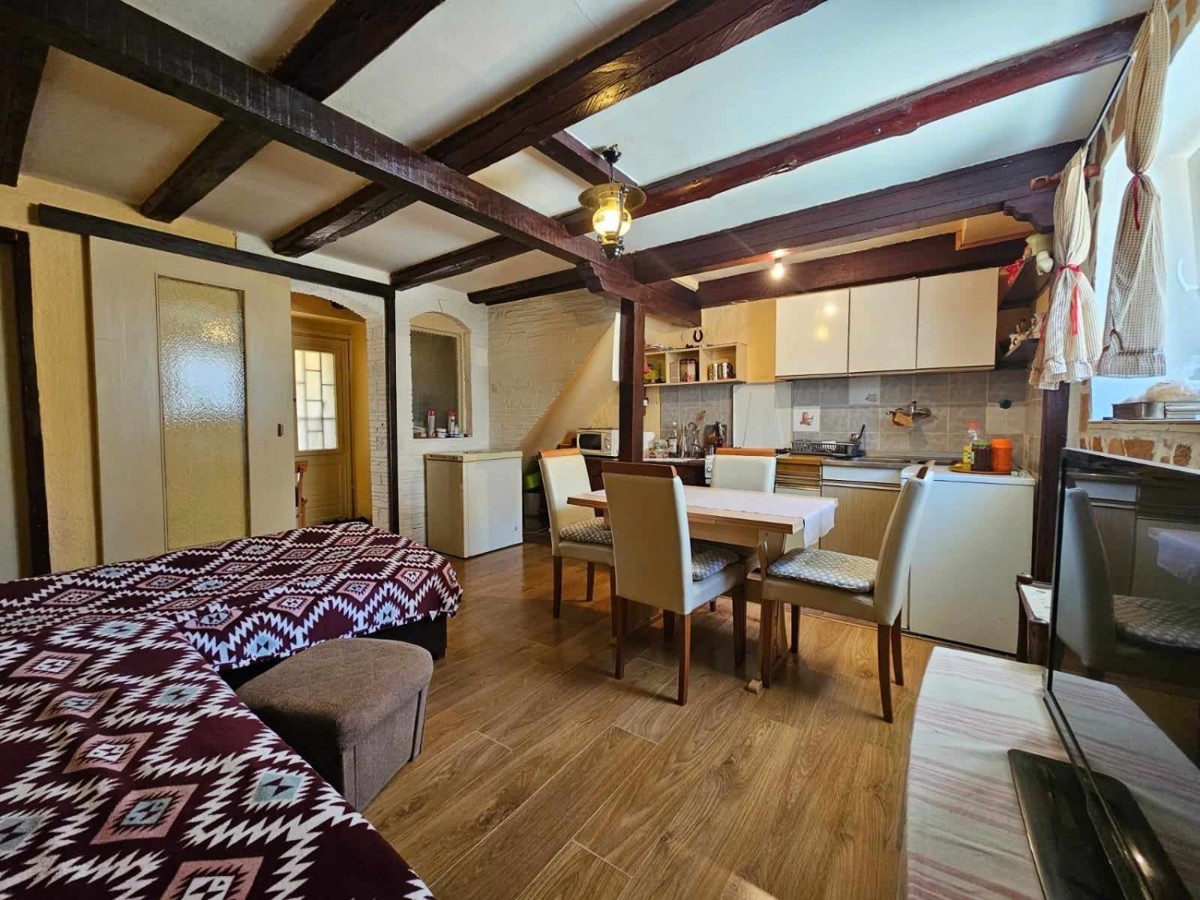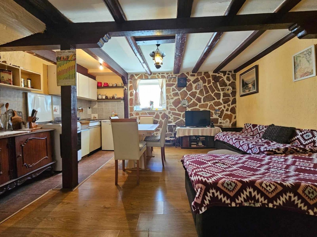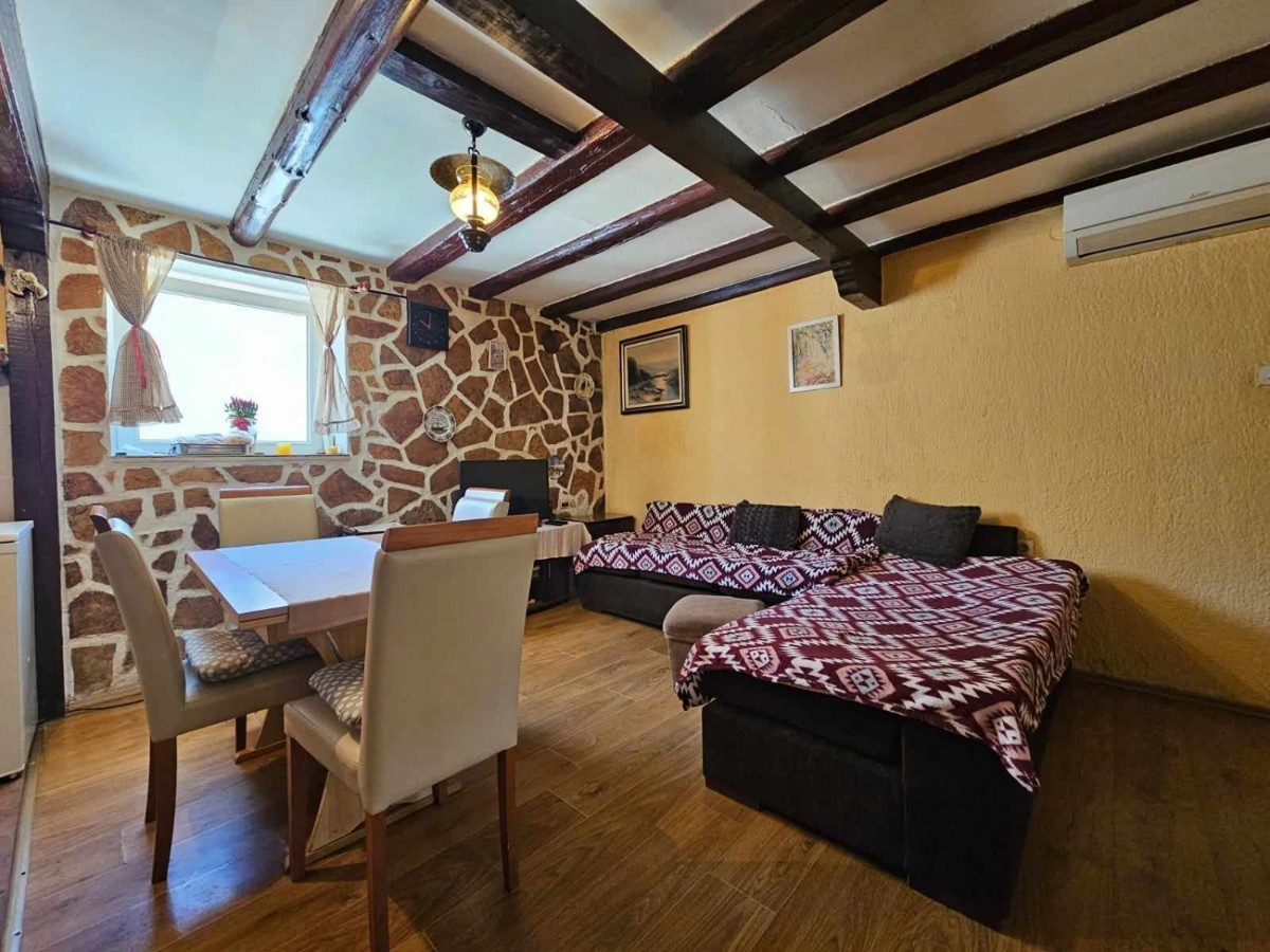 Prodaje se kuća u nizu od 105 m2 - Prizemlje dnevni boravak s kuhinjom i blagovaonicom, kupatilo i terasa- prvi kat: dvije spavaće sobe i kupatilo- potkrovlje: spavaća soba- grijanje i hlađenje je putem klime.