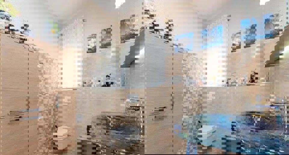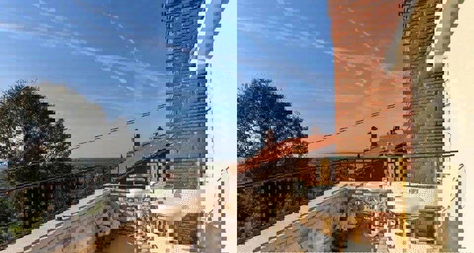 Ova samostojeća obiteljska kuća u blizini Poreča očarava ne samo svojom lokacijom, već i visokokvalitetnom opremom te prekrasnim pogledom na more s terase. U neposrednoj blizini nalaze se sve potrebne usluge, poput trgovine, pošte i restorana. Prizemlje