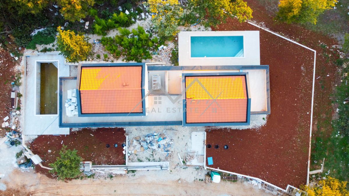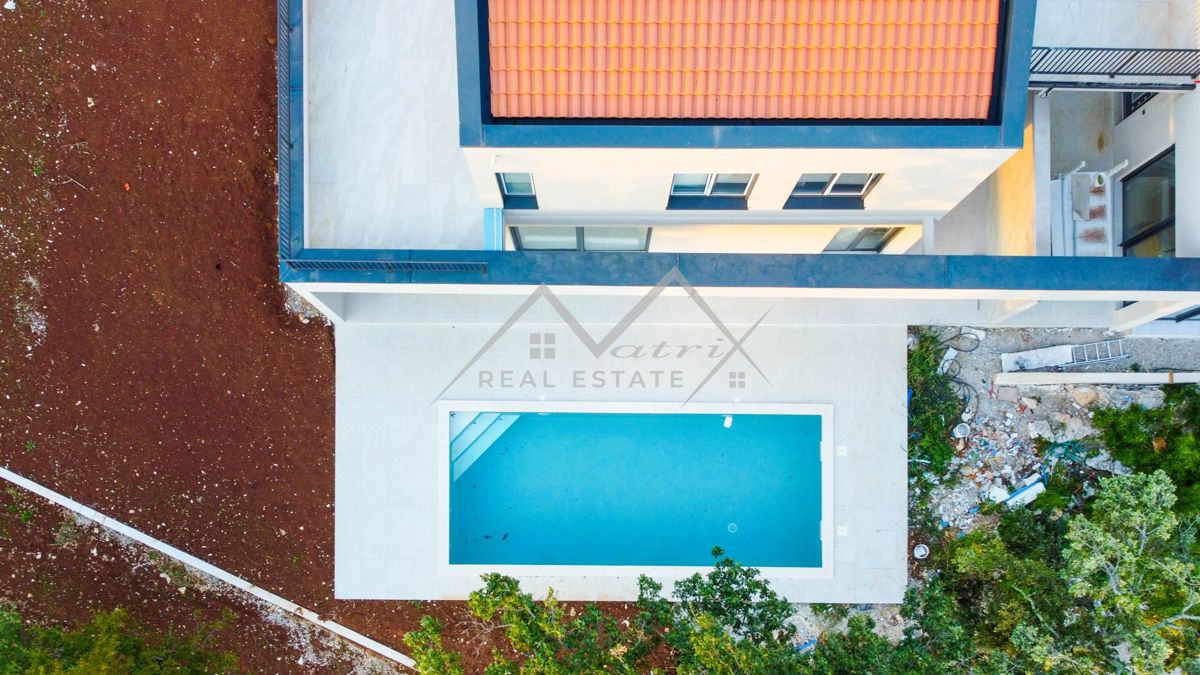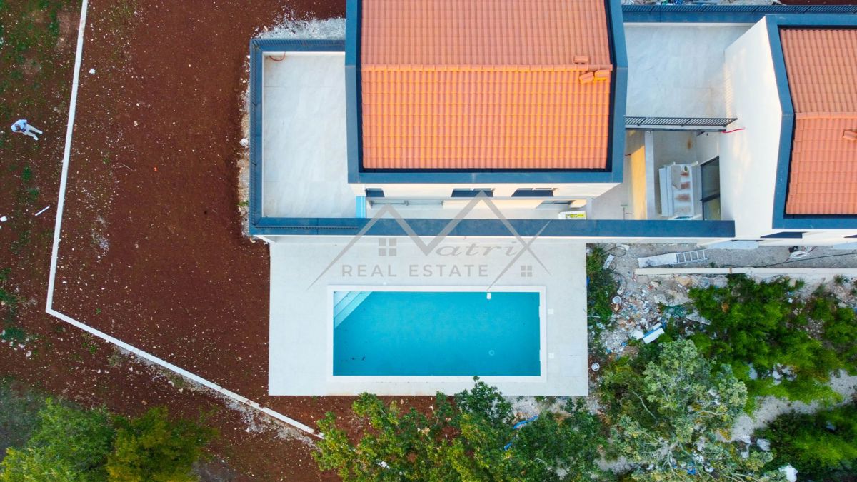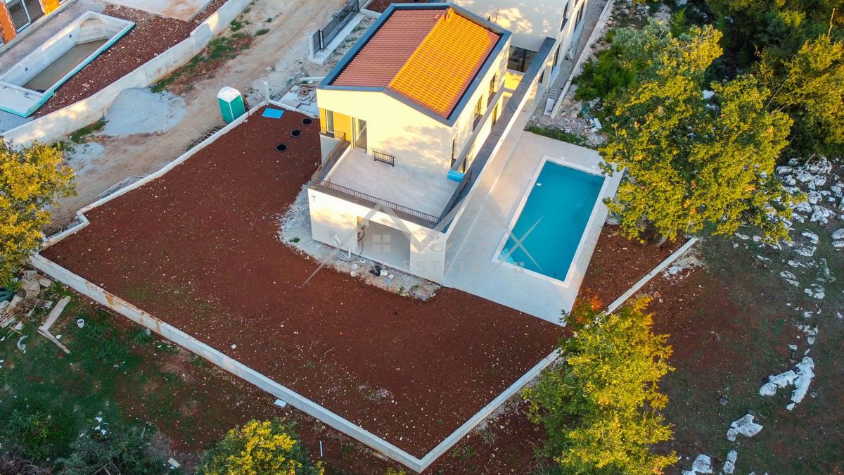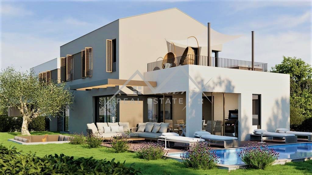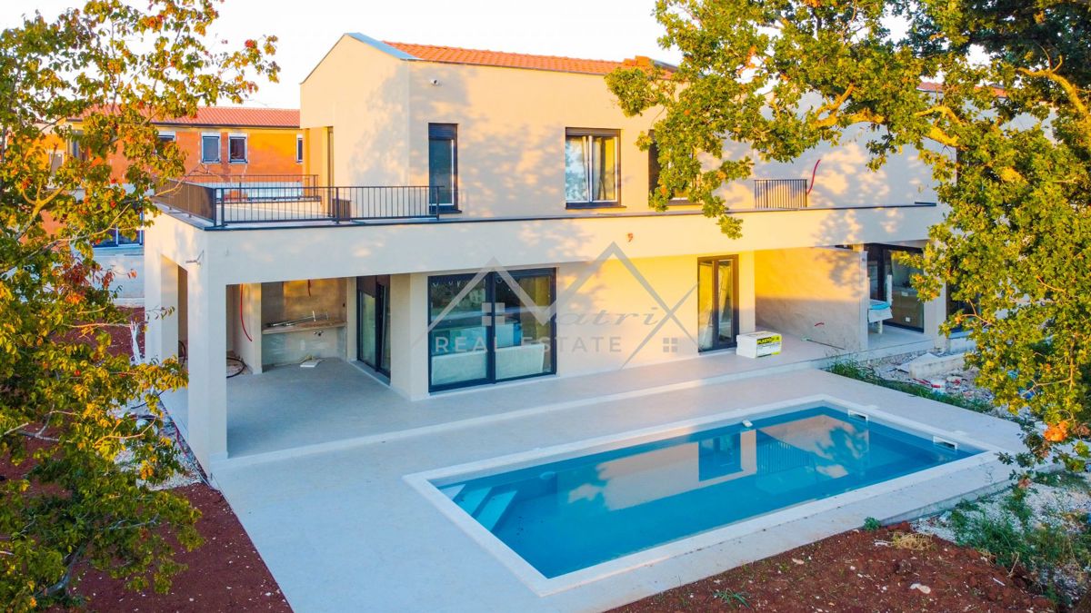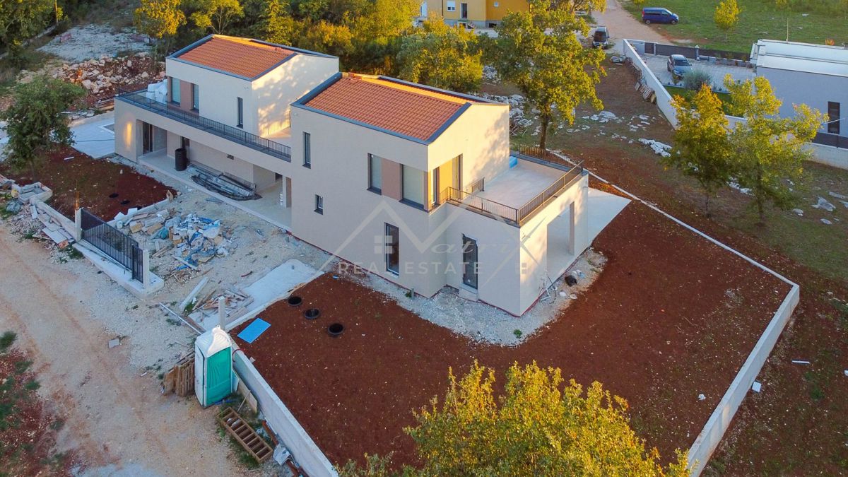 Poreč okolica - Moderno opremljena montažna vila s bazenom i jacuzzijem, na odličnoj lokaciji! Smještena u mirnom naselju, udaljenom samo 7 km od mora i centra Poreča, ova luksuzna vila s bazenom pruža priliku za kupnju idealnog doma. Vila se proteže na