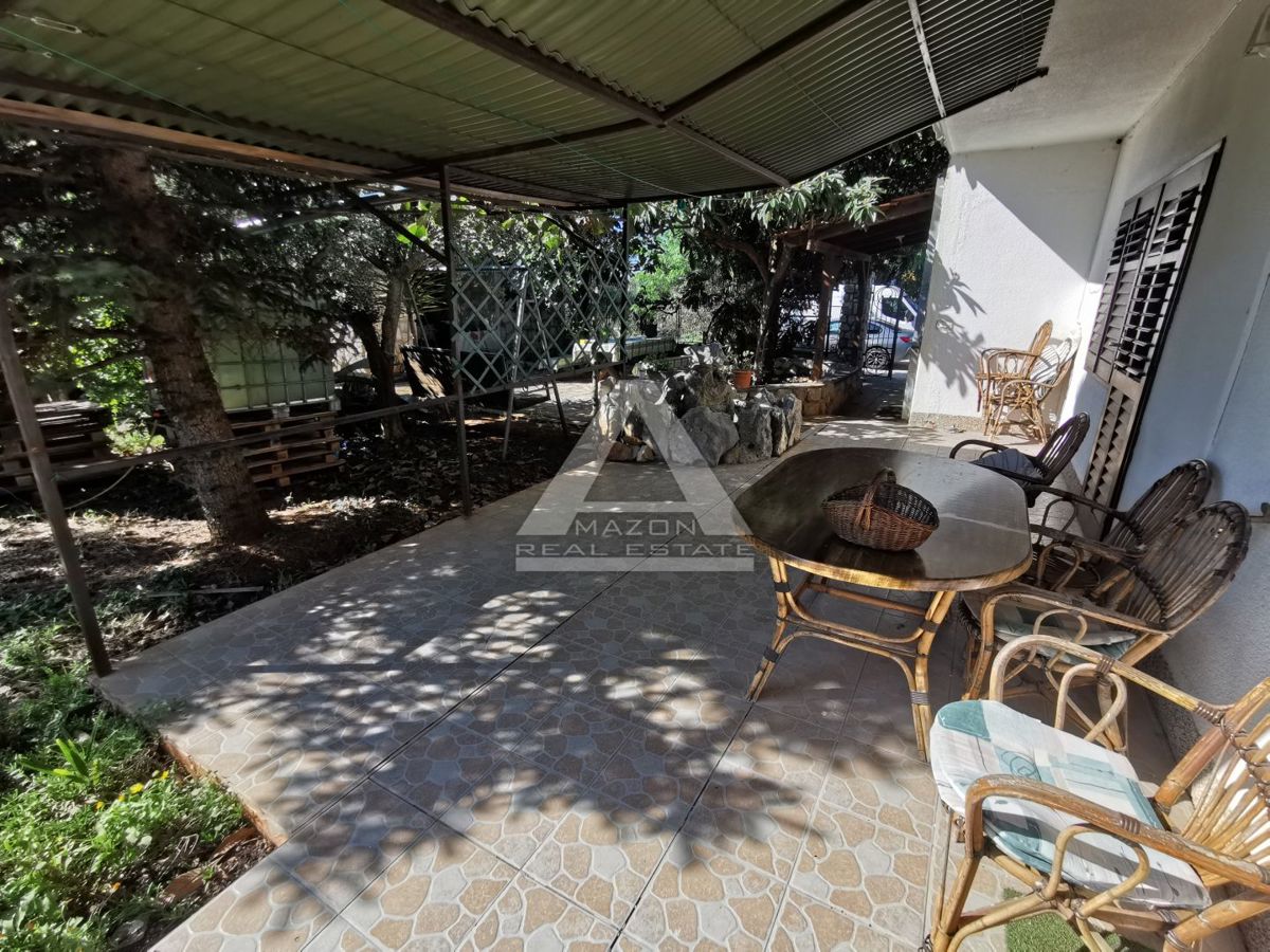 Poreč - na prodaju kuća od 434 m2, na građevinskom zemljištu od 1429 m2, samo 1 km od centra grada i mora, sa pogledom na more. Kuća se sastoji od prizemlja gdje su poslovni prostor, jedan stan sa 2 spavaće sobe, a drugi stan ima jednu spavaću sobu, dok s