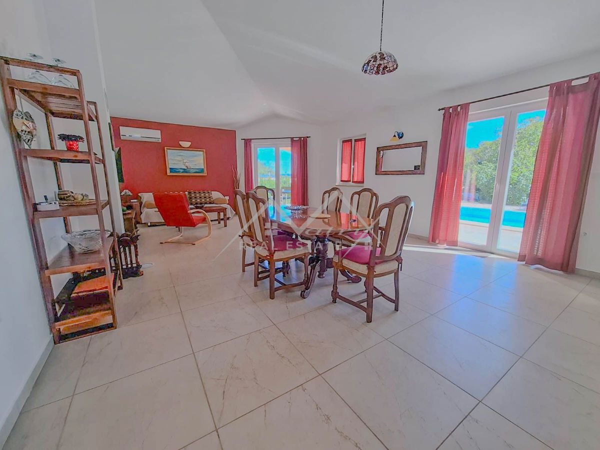 Poreč okolica, Elegantna prizemnica s bazenom i velikom okućnicom Na prodaju je prekrasna prizemnica smještena na mirnoj uzvisini u okolici Poreča, samo 18 km od grada i 12 km od autoputa. Ova prostrana vila s bruto kvadraturom od 174 m², uključujući na
