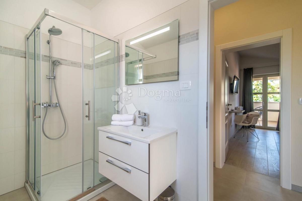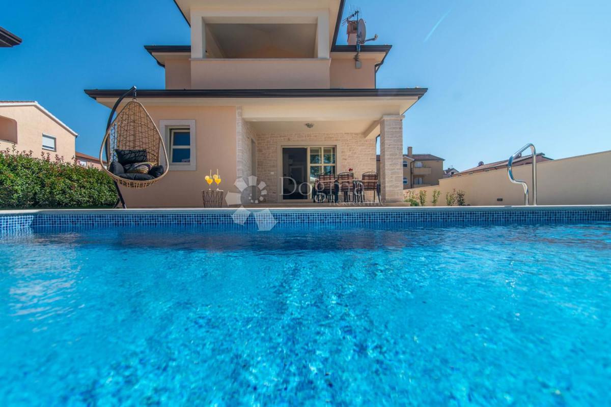 POREČ, Samostojeća kuća sa bazenom blizu grada Grad Poreč, smjestio se na zapadnoj obali poluotoka Istre. U vrijeme Rima Poreč dobiva svoje prve zidine, cijeli grad je obzidan osim zapadne strane odnosno vrha poluotoka gdje se nalazio Neptunov ili Jupite