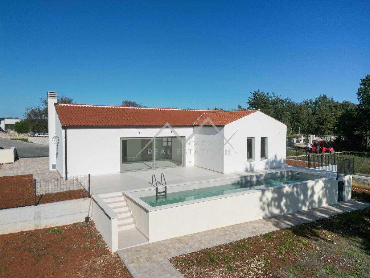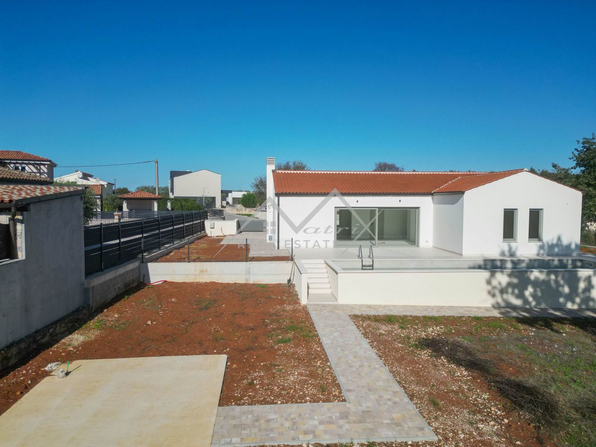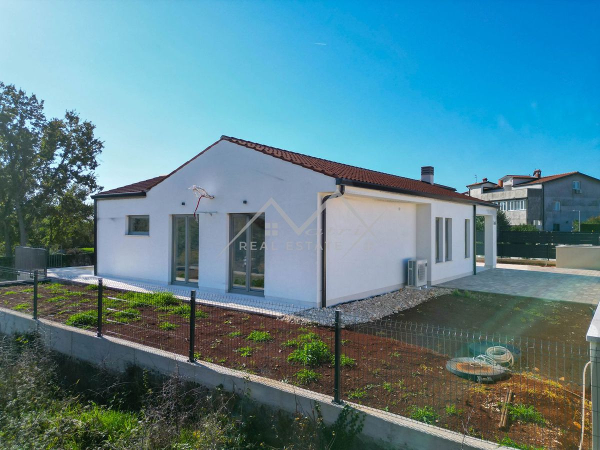 Prodaje se moderna prizemna kuća u okolici Poreča, smještena na prostranoj parceli od 911 m². Kuća površine 105 m² nudi izuzetno funkcionalan raspored, koji uključuje prostrani dnevni boravak, kuhinju i blagovaonicu u open space konceptu. Tri udobne spava