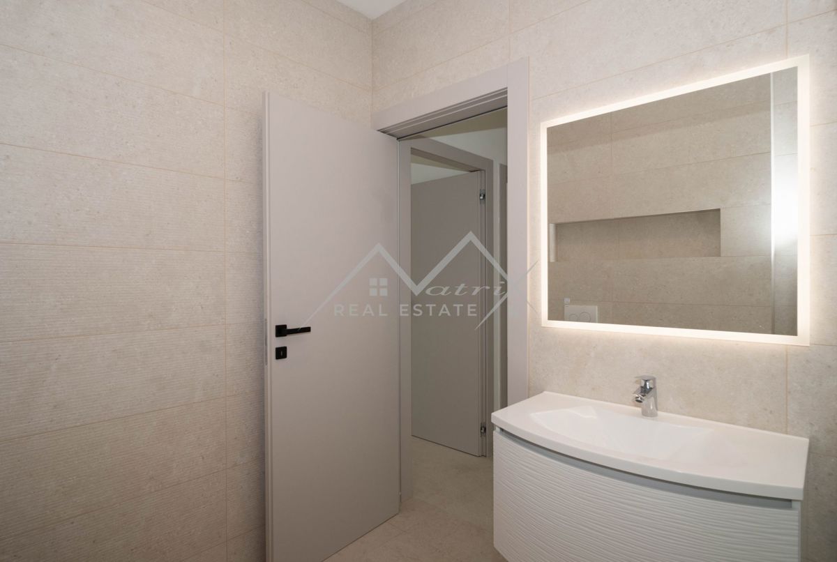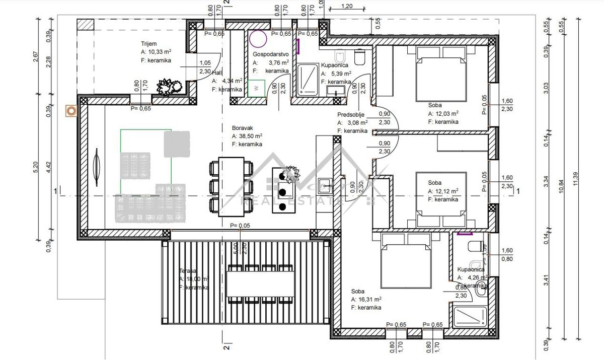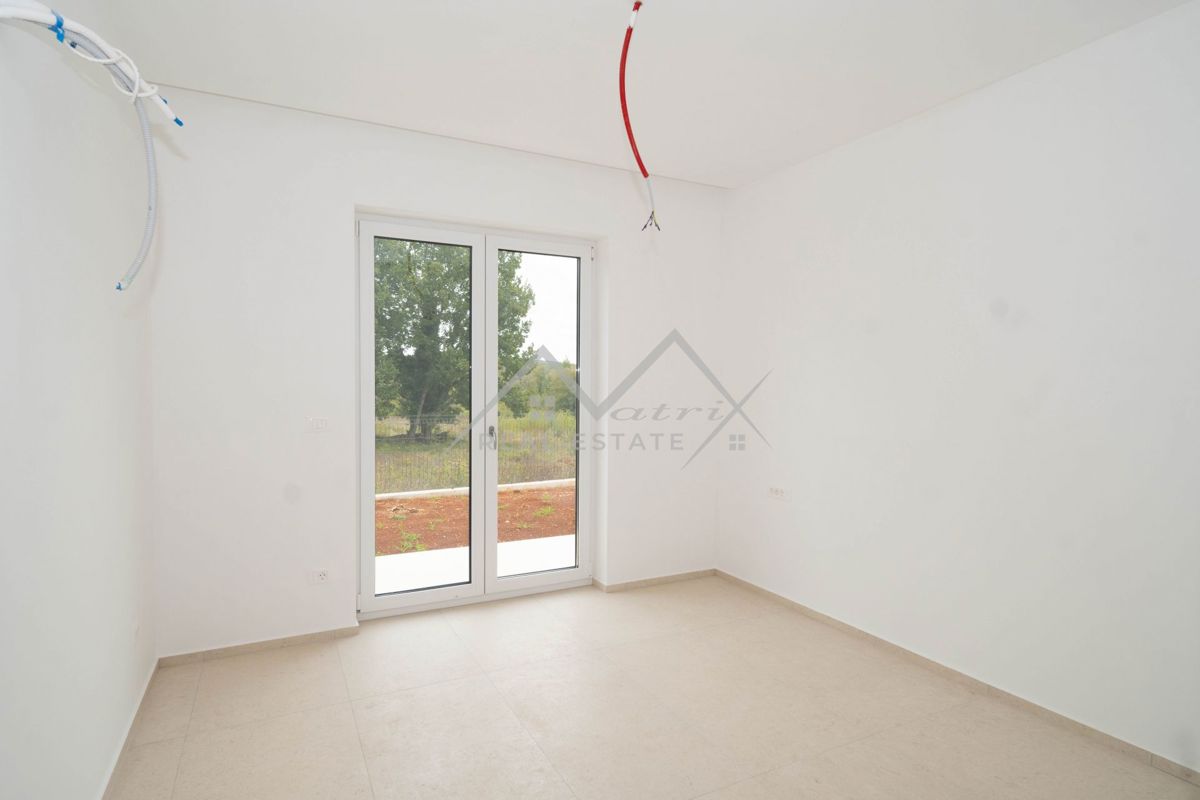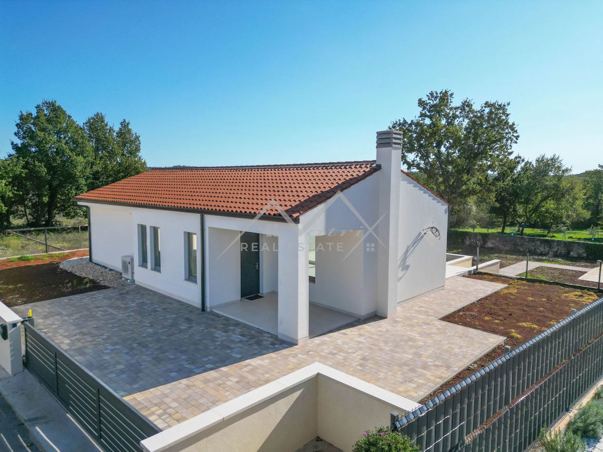 Prodaje se moderna prizemna kuća u okolici Poreča, smještena na prostranoj parceli od 911 m². Kuća površine 105 m² nudi izuzetno funkcionalan raspored, koji uključuje prostrani dnevni boravak, kuhinju i blagovaonicu u open space konceptu. Tri udobne spava