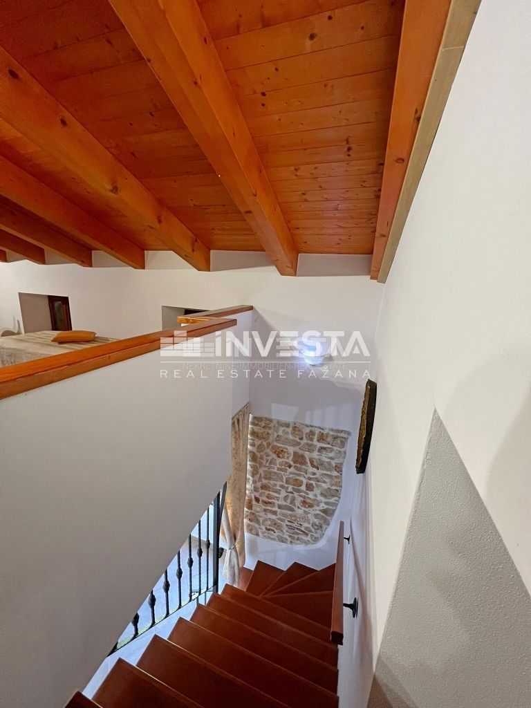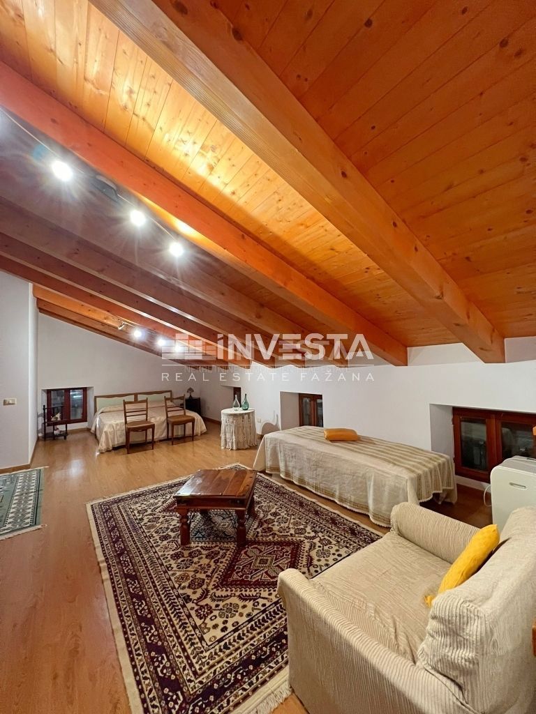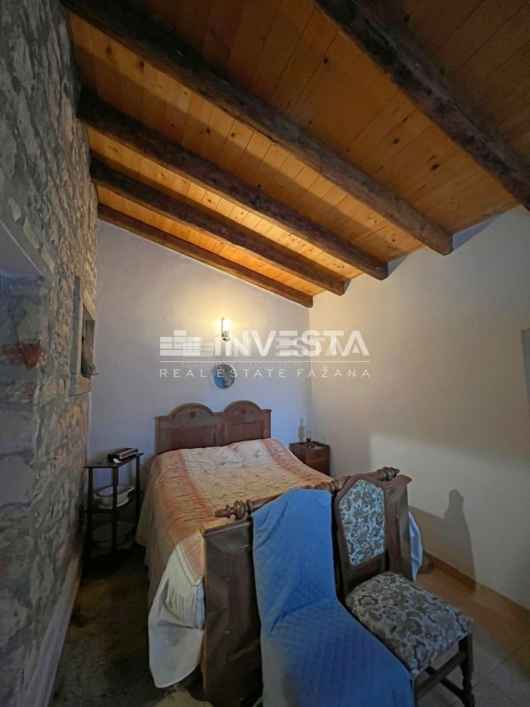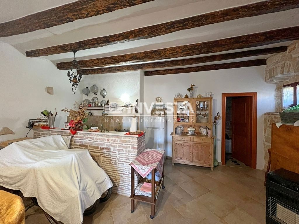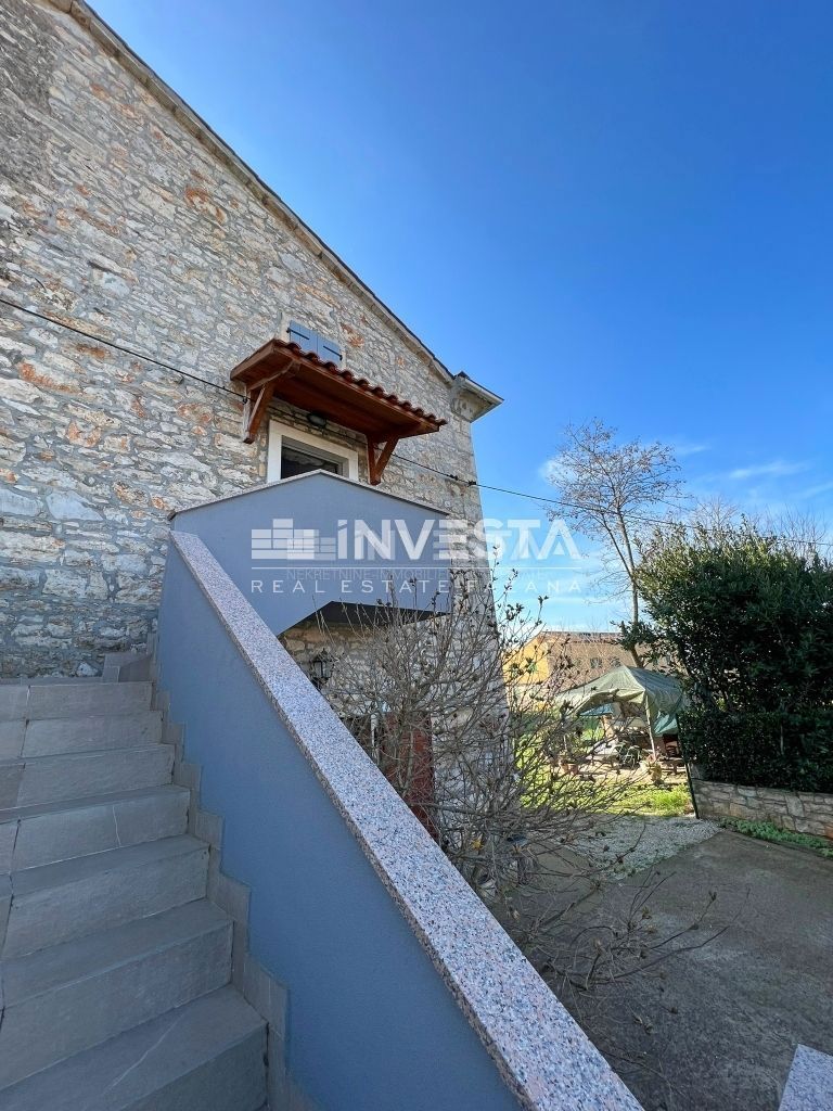 Prodaje se renovirana kamena kuća smještena u okolici Poreča. Izgrađena je na zemljištu od 910 m2. Ukupne je površine 215 m2 te se prostire na tri etaže. U prizemlju kuće smještena je velika prostorija u kojoj se nalazi starinsko ognjište sa velik