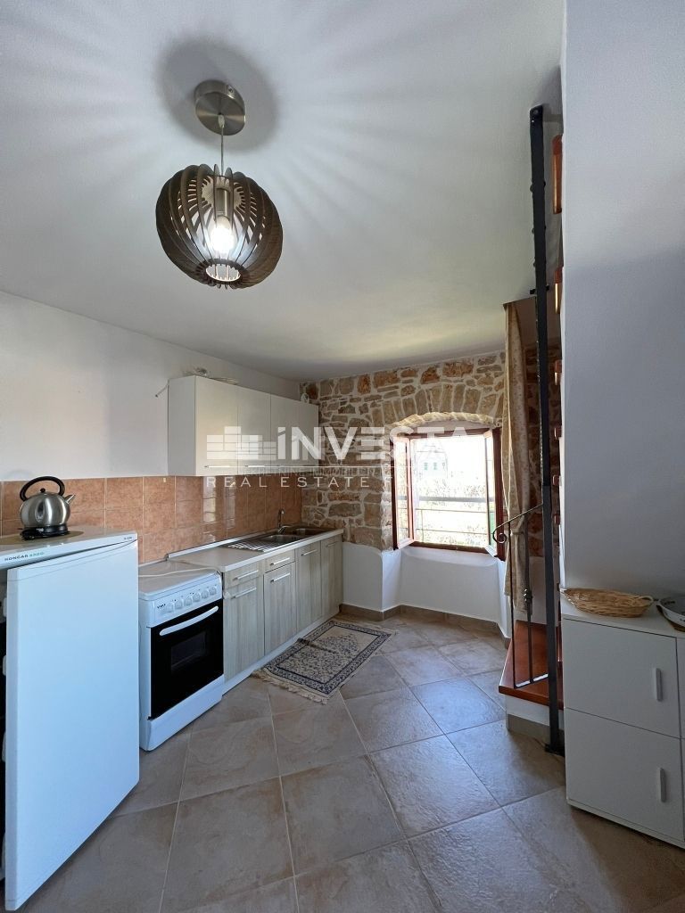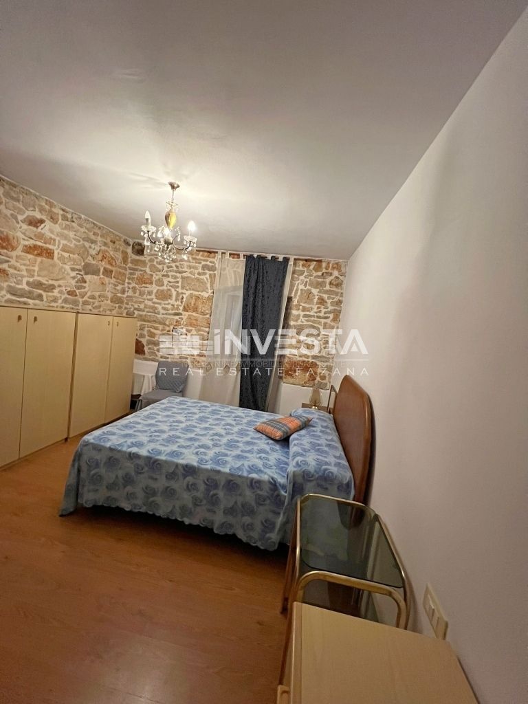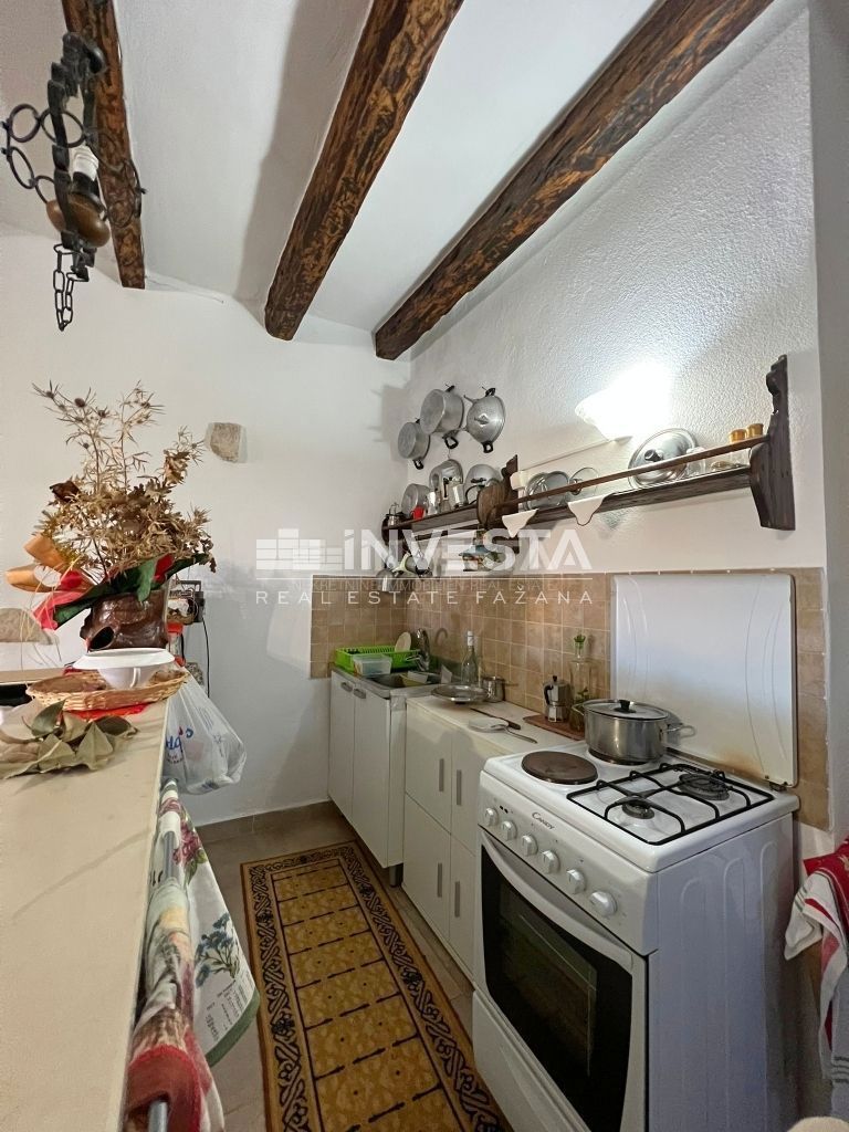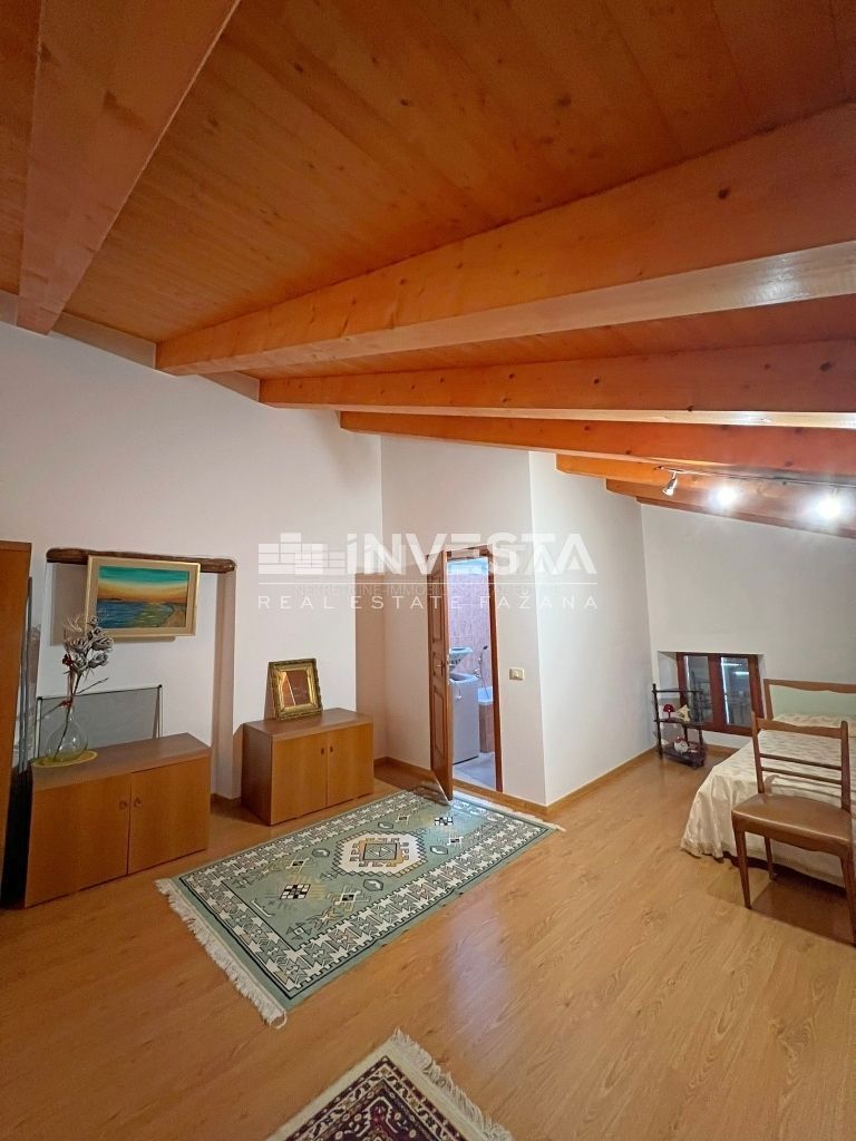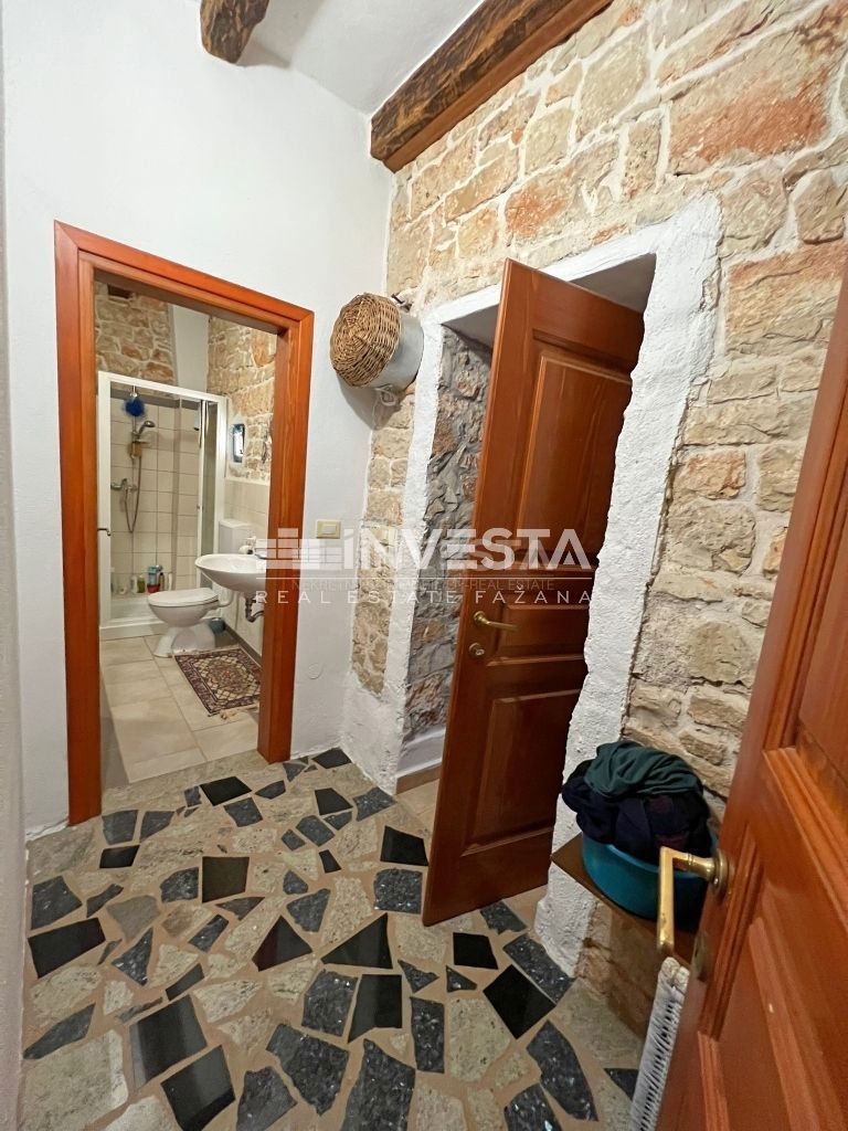 Prodaje se renovirana kamena kuća smještena u okolici Poreča. Izgrađena je na zemljištu od 910 m2. Ukupne je površine 215 m2 te se prostire na tri etaže. U prizemlju kuće smještena je velika prostorija u kojoj se nalazi starinsko ognjište sa velik