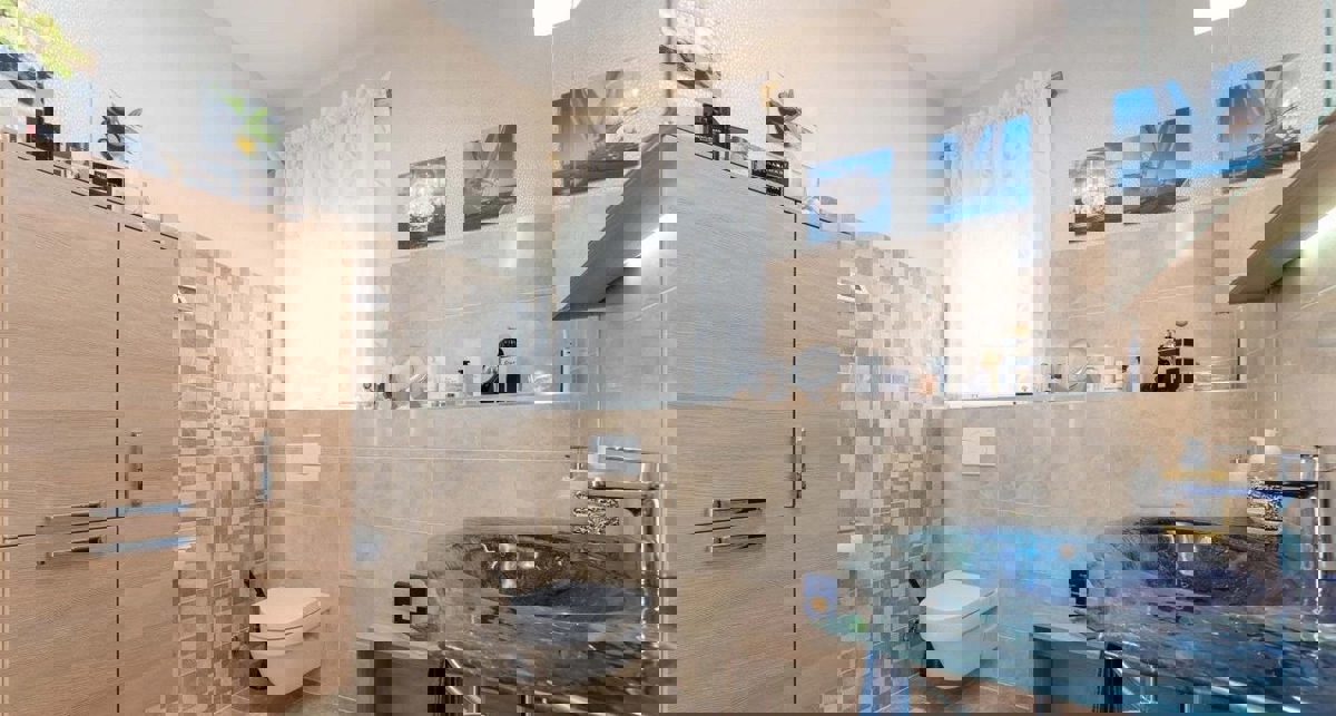 U okolici Poreča – cca. 10 km od mora, u iznimno mirnom ambijentu na prodaji je slobodnostojeća kuća, ukupne površine 125 m². Sastoji se od dvije etaže. U prizemlju nalazi se: predsoblje, dnevni boravak s kaminom i izlazom na natkrivenu terasu sa otvoreni
