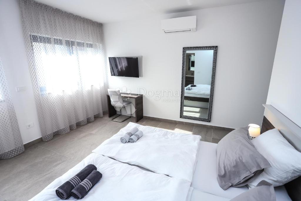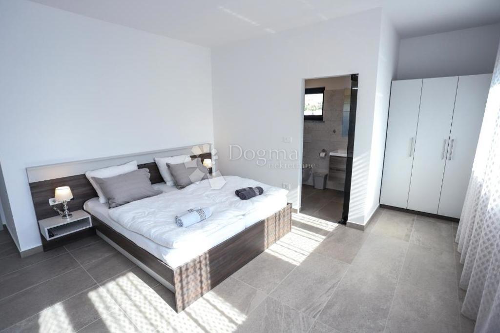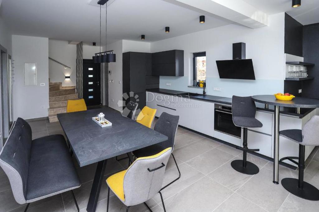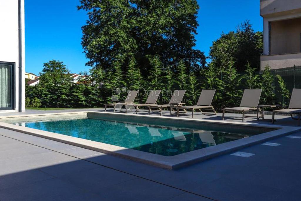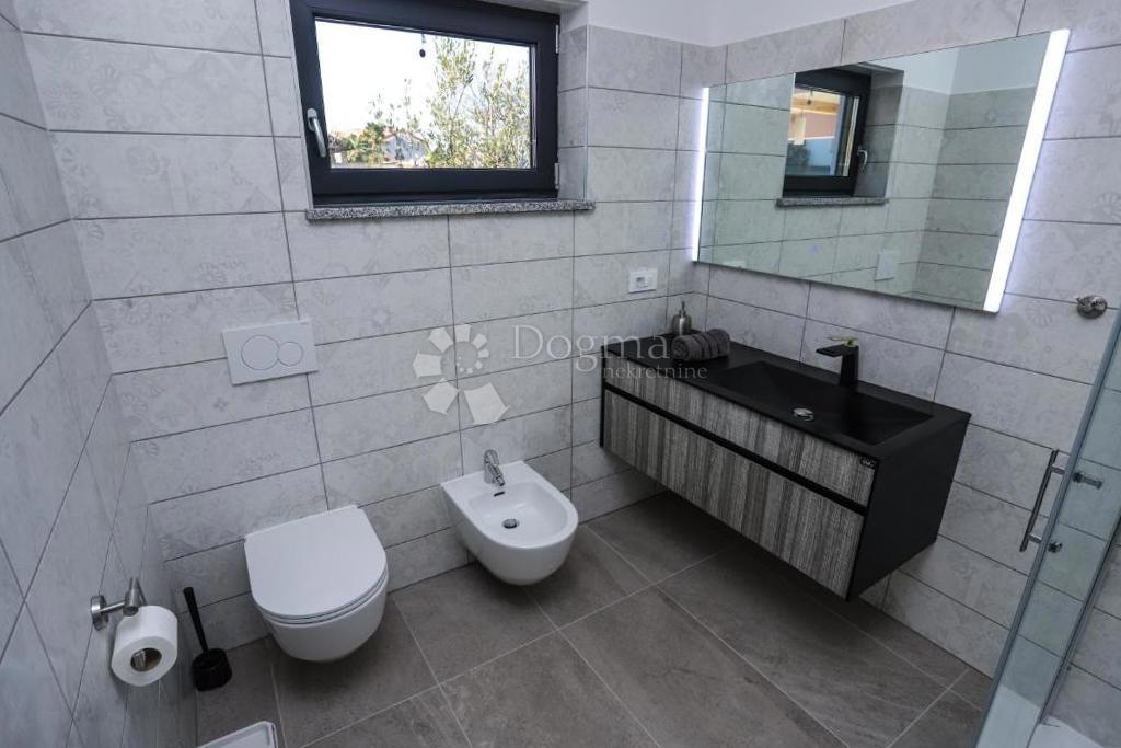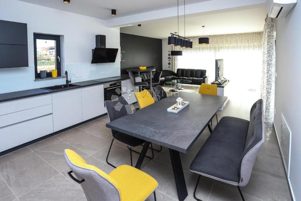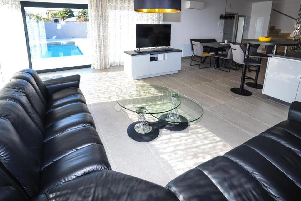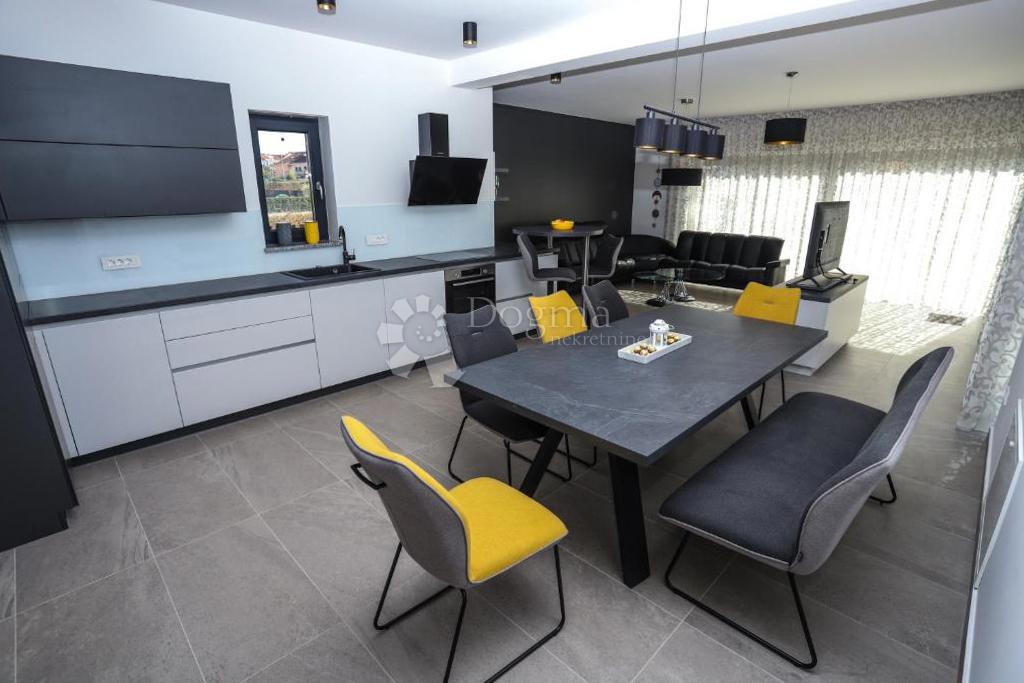 Ova izuzetno moderna i atraktivna kuća smještena je u mirnom naselju Poreča, na svega 800 metara od mora, s ukupnom stambenom površinom od 195 m² i okućnicom od 727 m². Njezin suvremeni dizajn i pažljivo osmišljeni prostori pružaju savršenu kombinaciju es