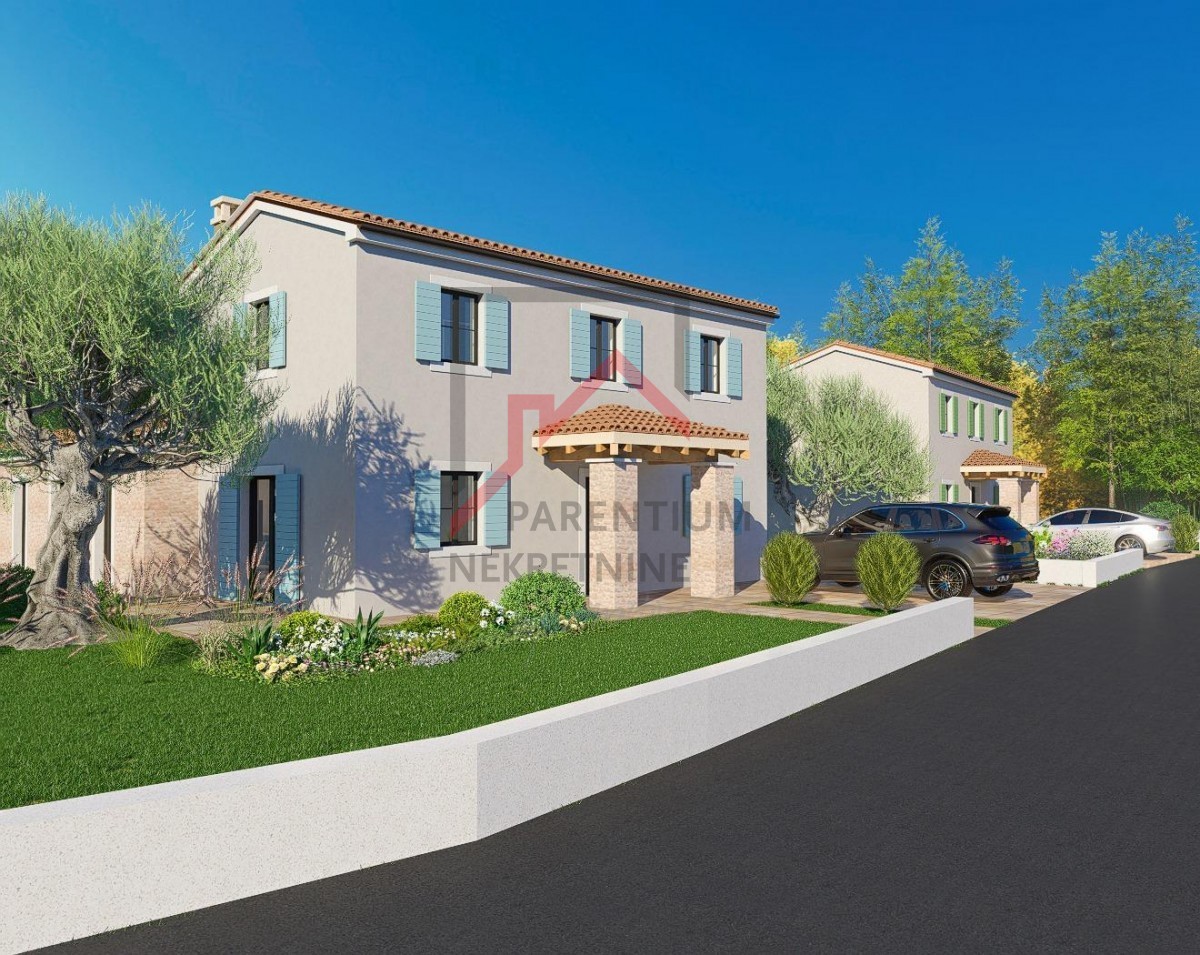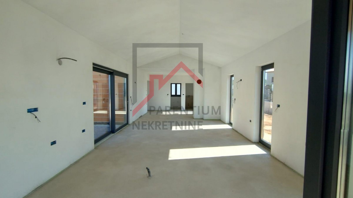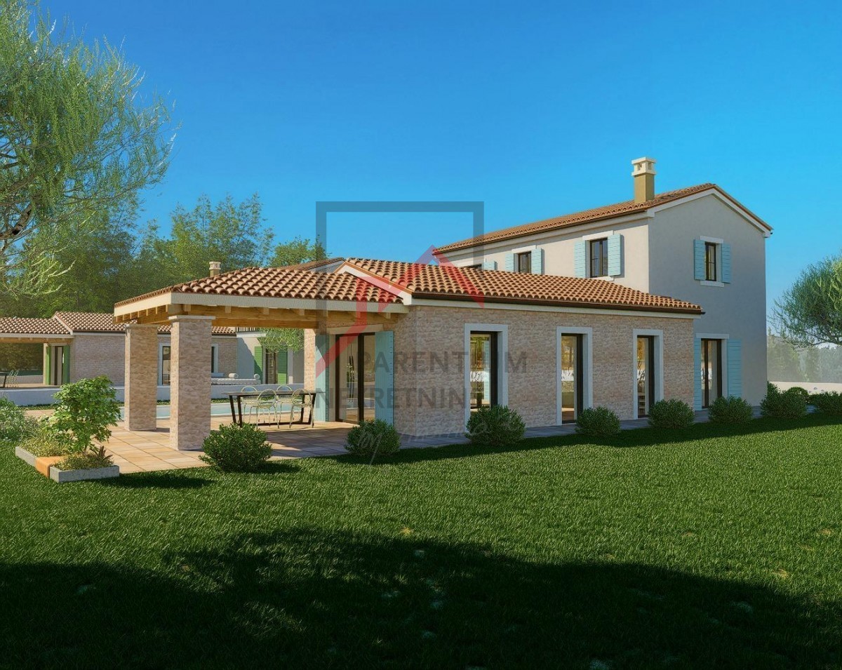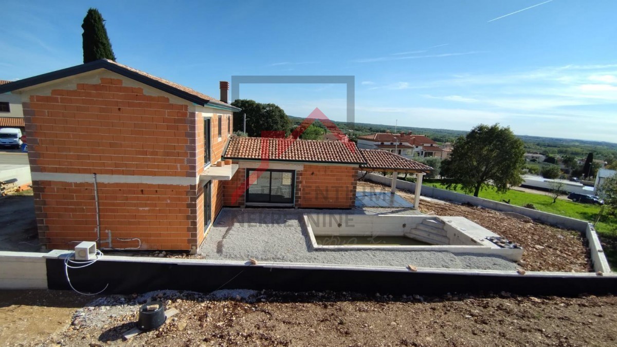 Predstavljamo vam novu, visokokvalitetnu obiteljsku kuću koja savršeno spaja tradicionalni mediteranski stil s modernim luksuzom. Ova predivna nekretnina smještena je na prostranom zemljištu od 985 m², s privatnim bazenom i impresivnim pogledom na more, p