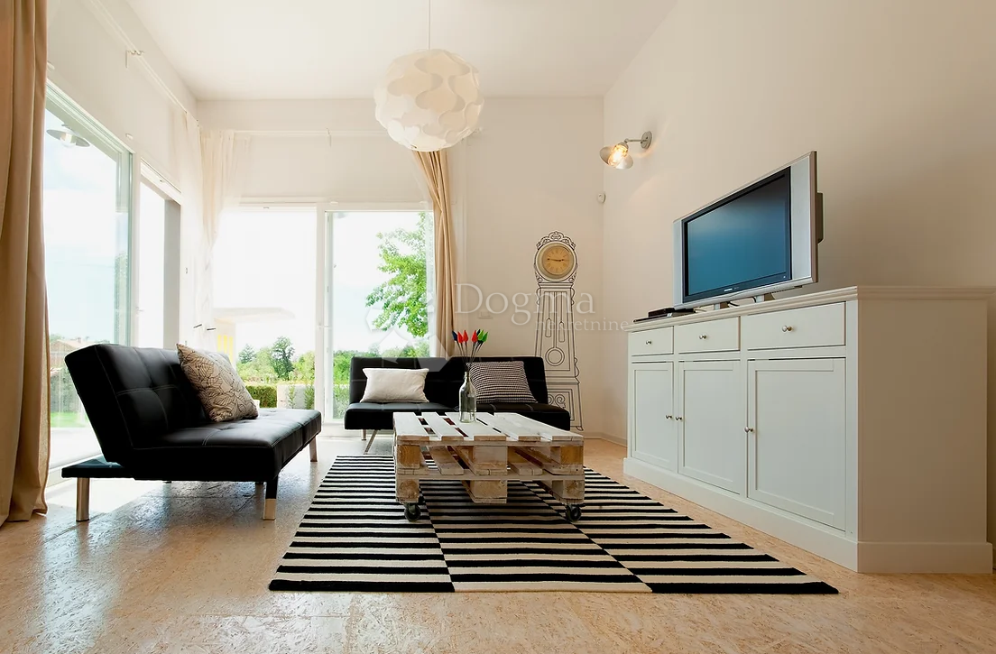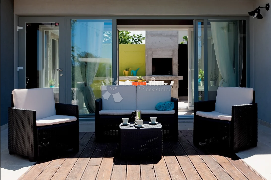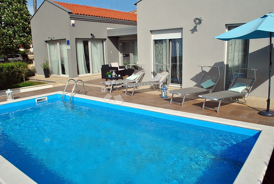 Ova lijepa prizemnica izgrađena je 2013. godine, smještena je u blizini Grada Poreča, udaljena samo 4 kilometra od mora i svih sadržaja koje grad nudi. Tlocrtno je oblikovana u slovo H, što omogućava funkcionalno razdvajanje dnevnog i noćnog dijela. S