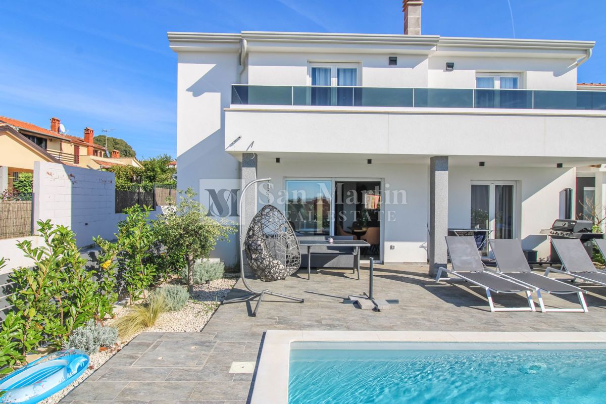 Istra, Poreč - potpuno namještena dvojna kuća s bazenom Na prodaju je šarmantna dvojna kuća koja se smjestila na odličnoj lokaciji u Poreču u blizini mora. Nekretnina se prostire na dvije etaže te njena ukupna površina je 118 m2. U prizemlju su se smj