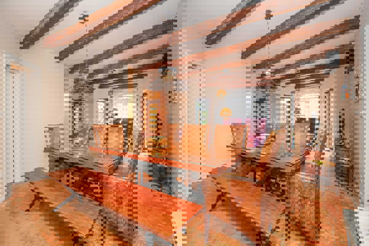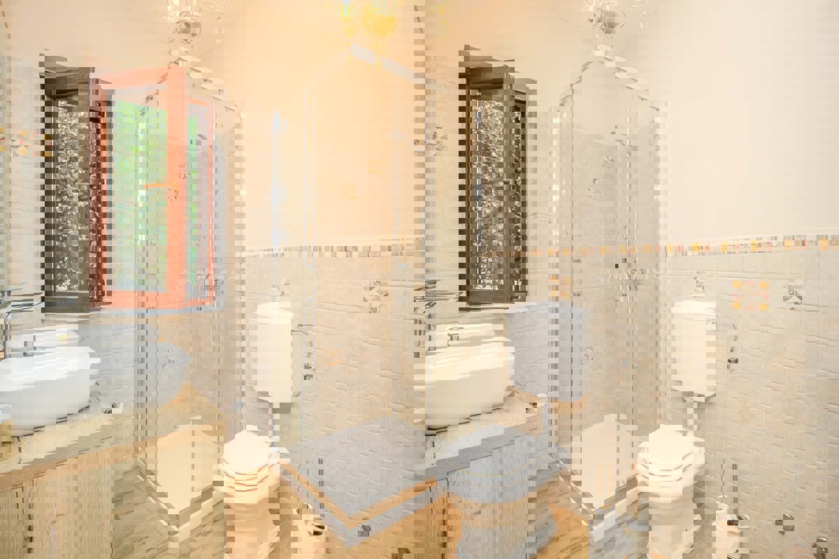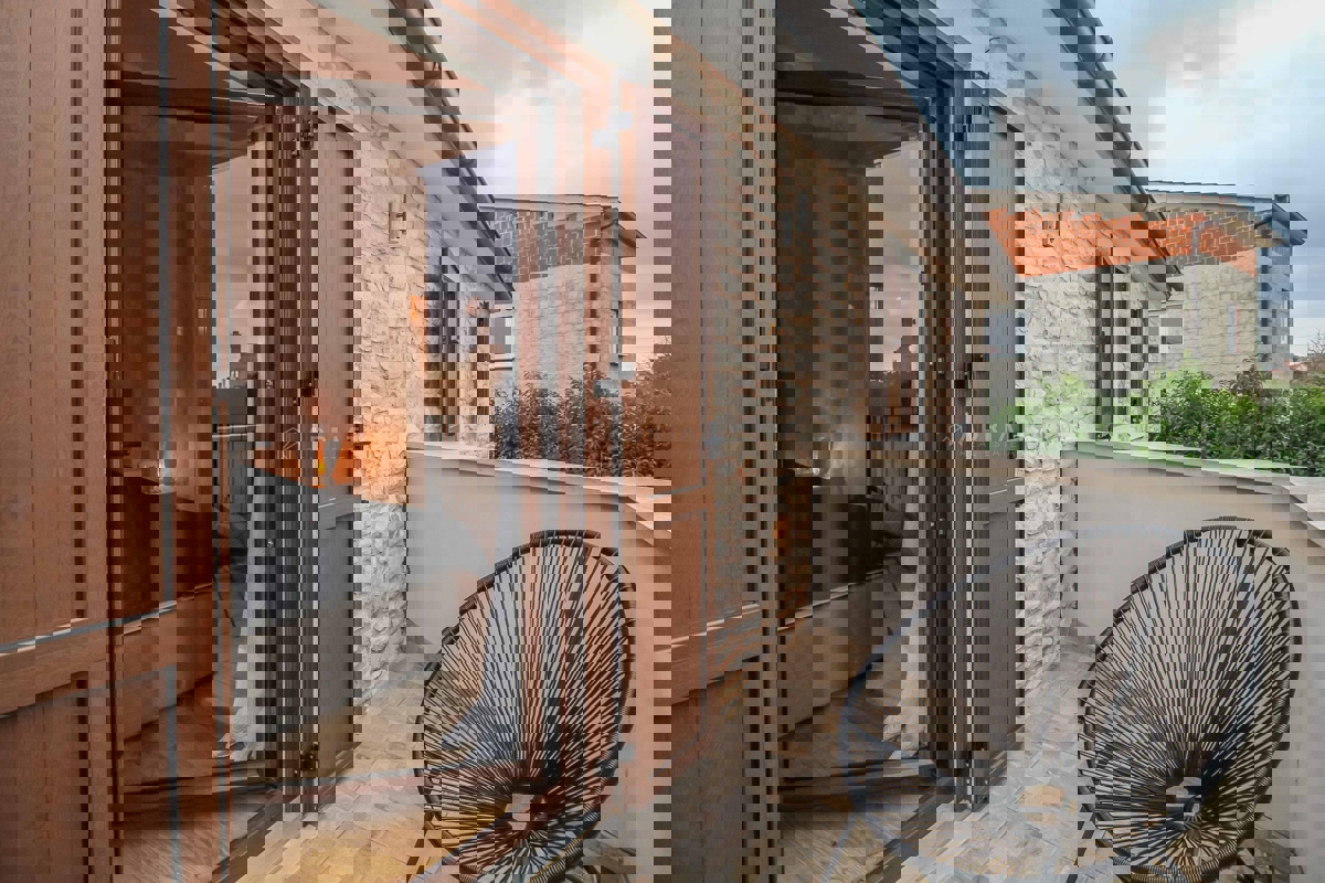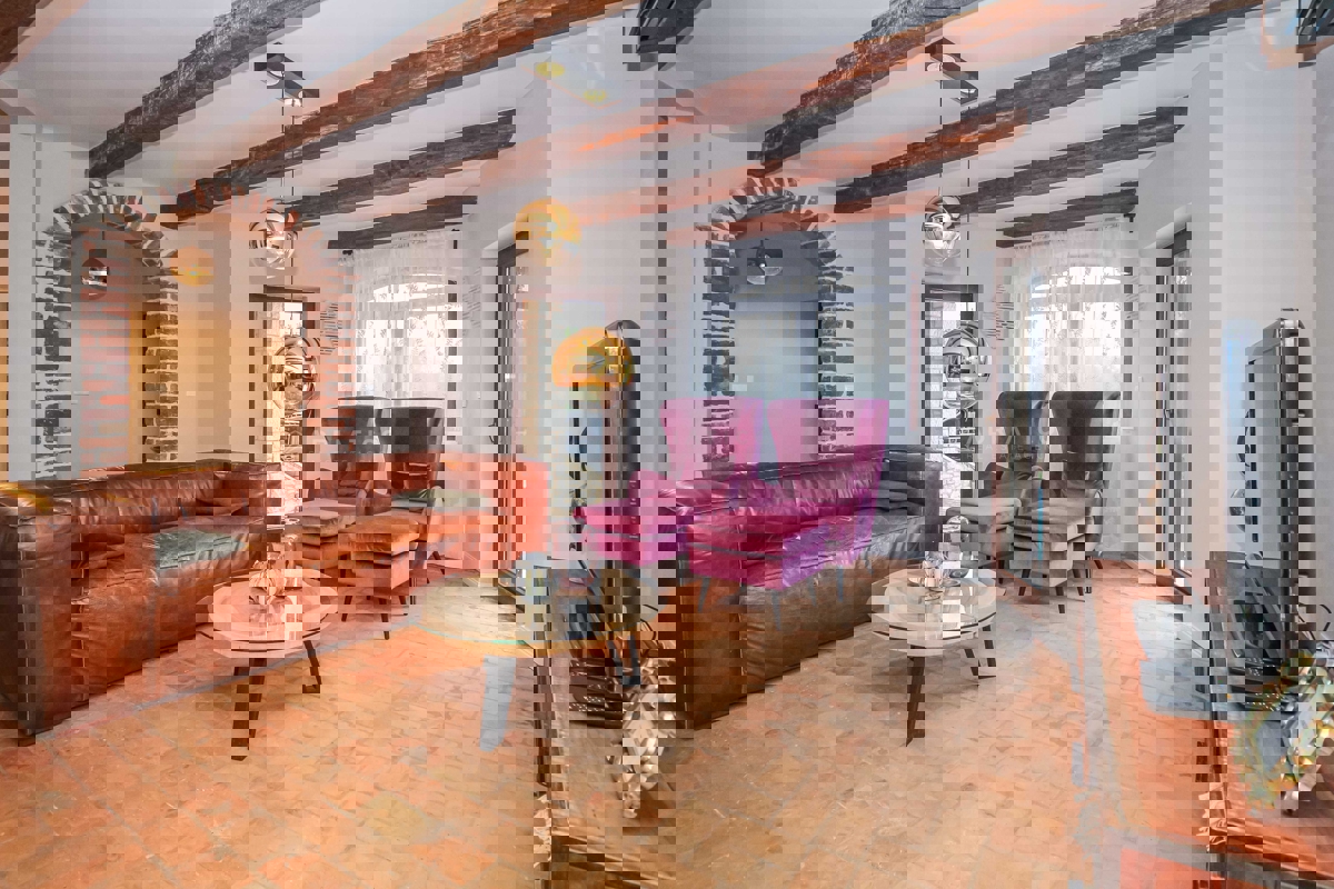OKOLICA POREČA, ISTRA Ova prekrasna kamena kuća s bazenom nalazi se na mirnoj lokaciji na rubu građevinske zone, pružajući dodatnu privatnost i mir. Kuća je potpuno ograđena te nudi siguran prostor za opuštanje i uživanje na otvorenom. U prizemlju kuće na