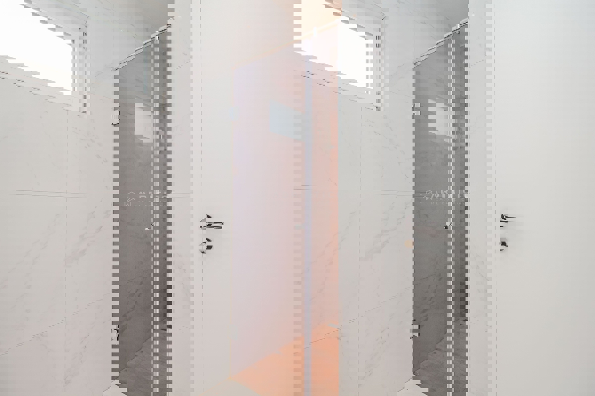 Poreč, Istra Na prodaju je prekrasna kuća u nizu smještena na izuzetnoj lokaciji, samo nekoliko minuta hoda od plaže i centra Poreča. Ova moderna nekretnina nudi predivan pogled na more. U prizemlju se nalazi prostrani dnevni boravak otvorenog plana s izl
